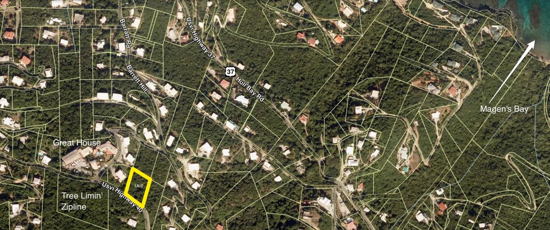 Excellent moderately sloping parcel over 1/2 acre on the cool, quiet Northside near The Great House and Blue Orchid restaurant. Beautiful views of the famous and picturesque Magens Bay, the Atlantic Ocean and down island to the British Virgin Islands. Access from the top and bottom of the property! Site plans* in Documents. Build your DREAM home with enough space left for a guest house!