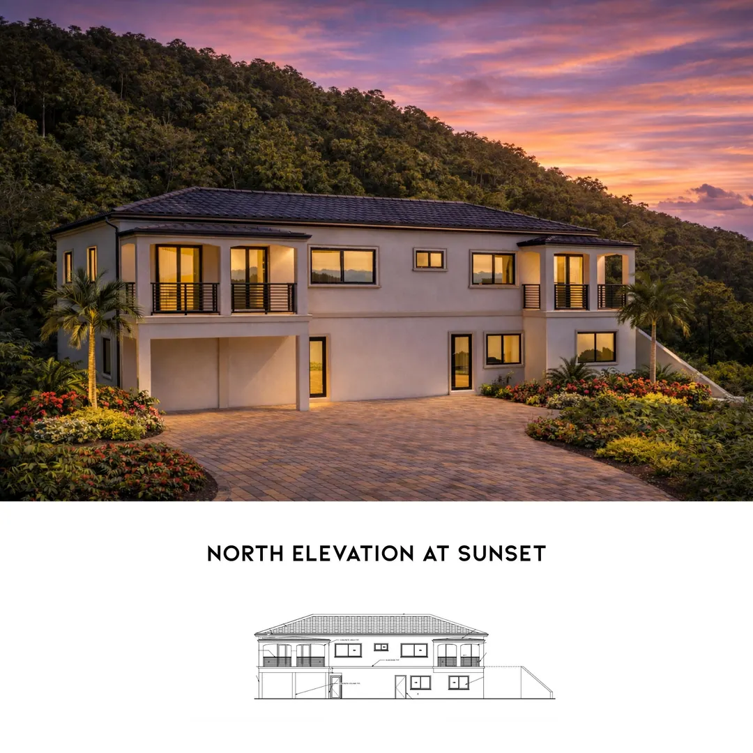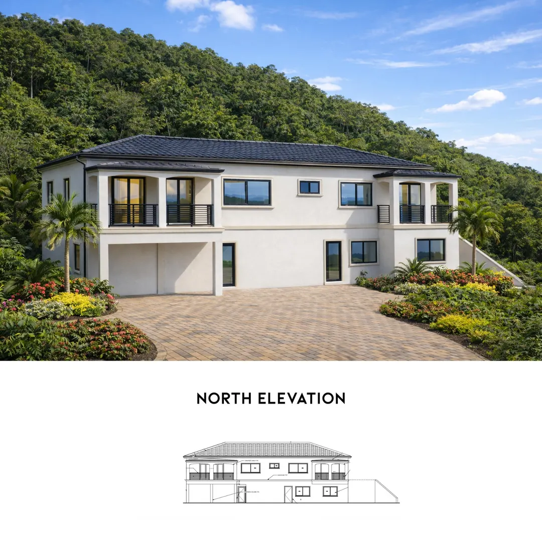 An exceptional opportunity to accelerate the building of your Caribbean home. This .65 acre parcel comes with a serious head start for a buyer courtesy of architectural plans featuring two residences, totaling 4345 sq. ft. with spaces for an office, a gym and a media room. Cistern capacity tops 42K gallons. This private lot is nestled on a modest promontory in a quiet, modern Northside community. Drone shots from the property offer spectacular Atlantic views sweeping down to Magens Bay and beyond. the property begins 40-feet back from the road and is buffered by a Right of Way. Bound posts have been marked.The southern property line lies 40-feet back from the road, separated by a Right of Way. Bound posts were marked in late December. DPNR has confirmed that documents on file with the Lt. Gov's office grant the owner of this lot the legal right to build a driveway across the Right-of-Way.