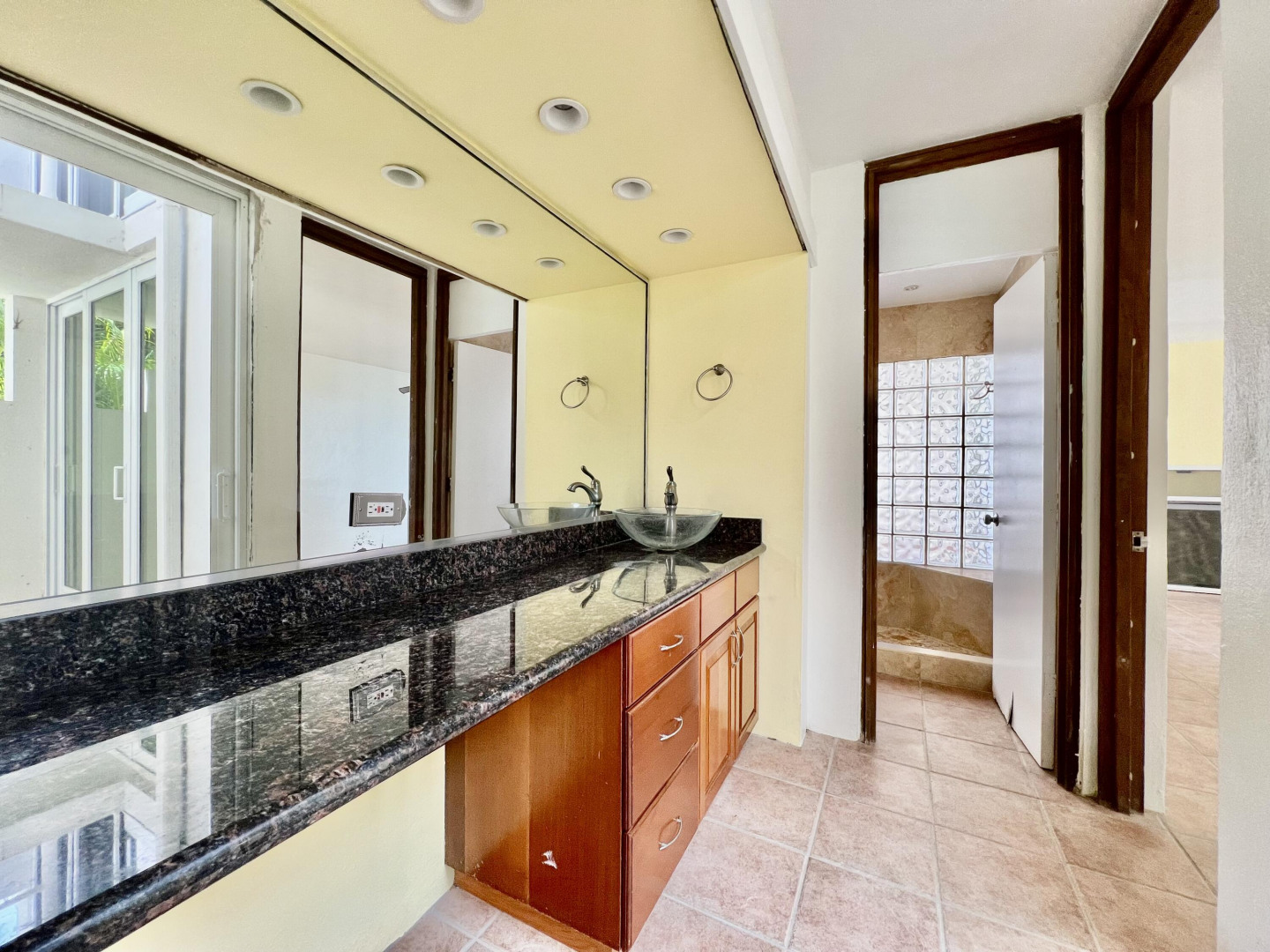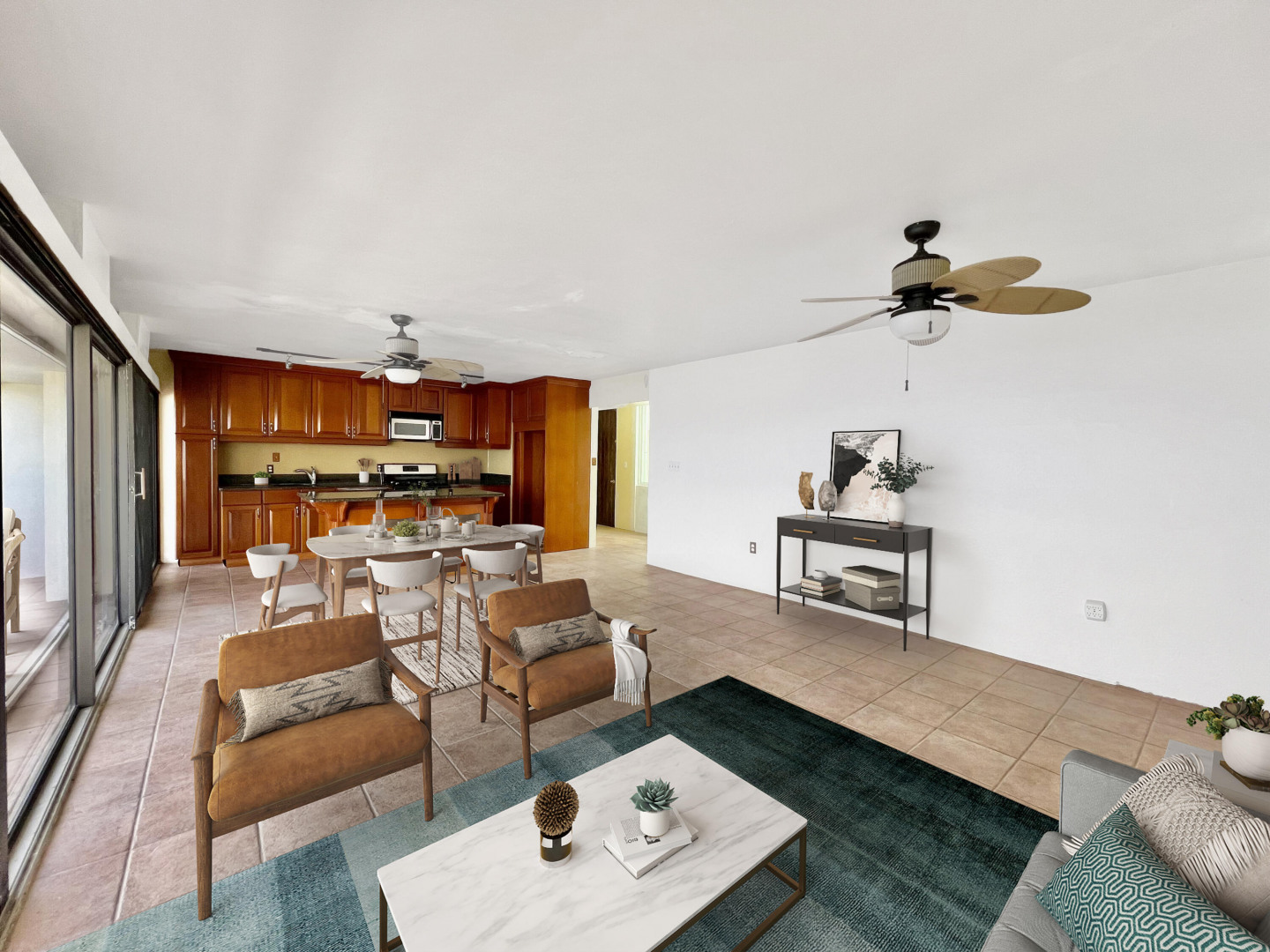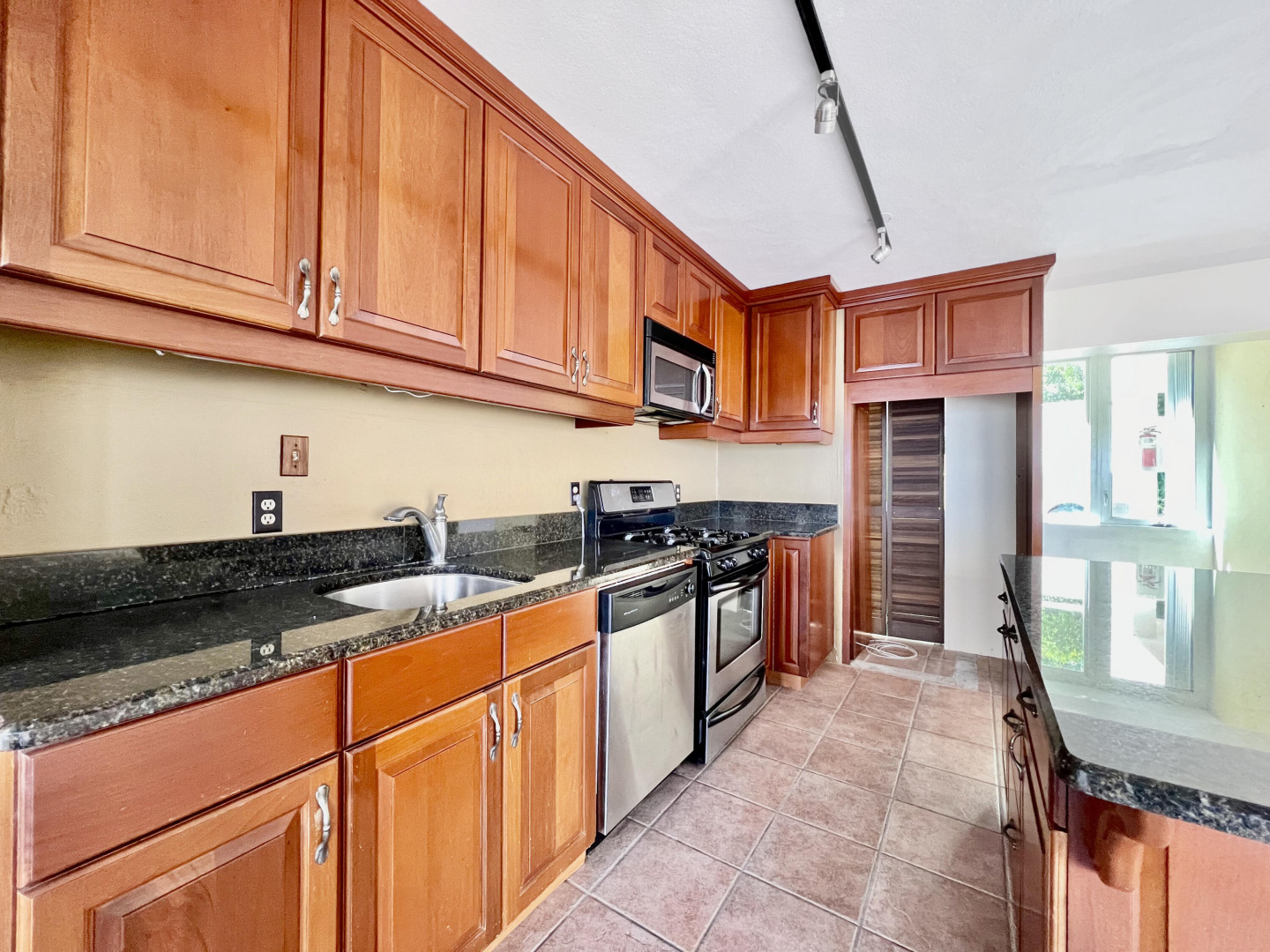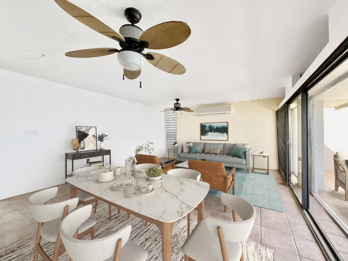 Prepare to be mesmerized when you walk into this main level condo in Mahogany Run. Open concept kitchen features solid surface countertops and stainless appliances with a large island for entertaining. Large living room space features wall to wall sliding doors to the main balcony with unobstructed views of the ocean. Large primary bedroom features wall to wall closets, with a secondary balcony. Shower and vanity have been updated, completing this primary bedroom oasis. Walking down the hallway to the second bedroom you will find a large vanity space and updated second bathroom. Second bedroom has floor to ceiling sliding glass doors that open onto an outdoor living space which has its own private entry. A third balcony has views that won't disappoint! Beautiful tile floors throughout.