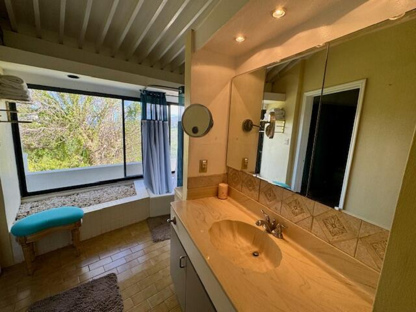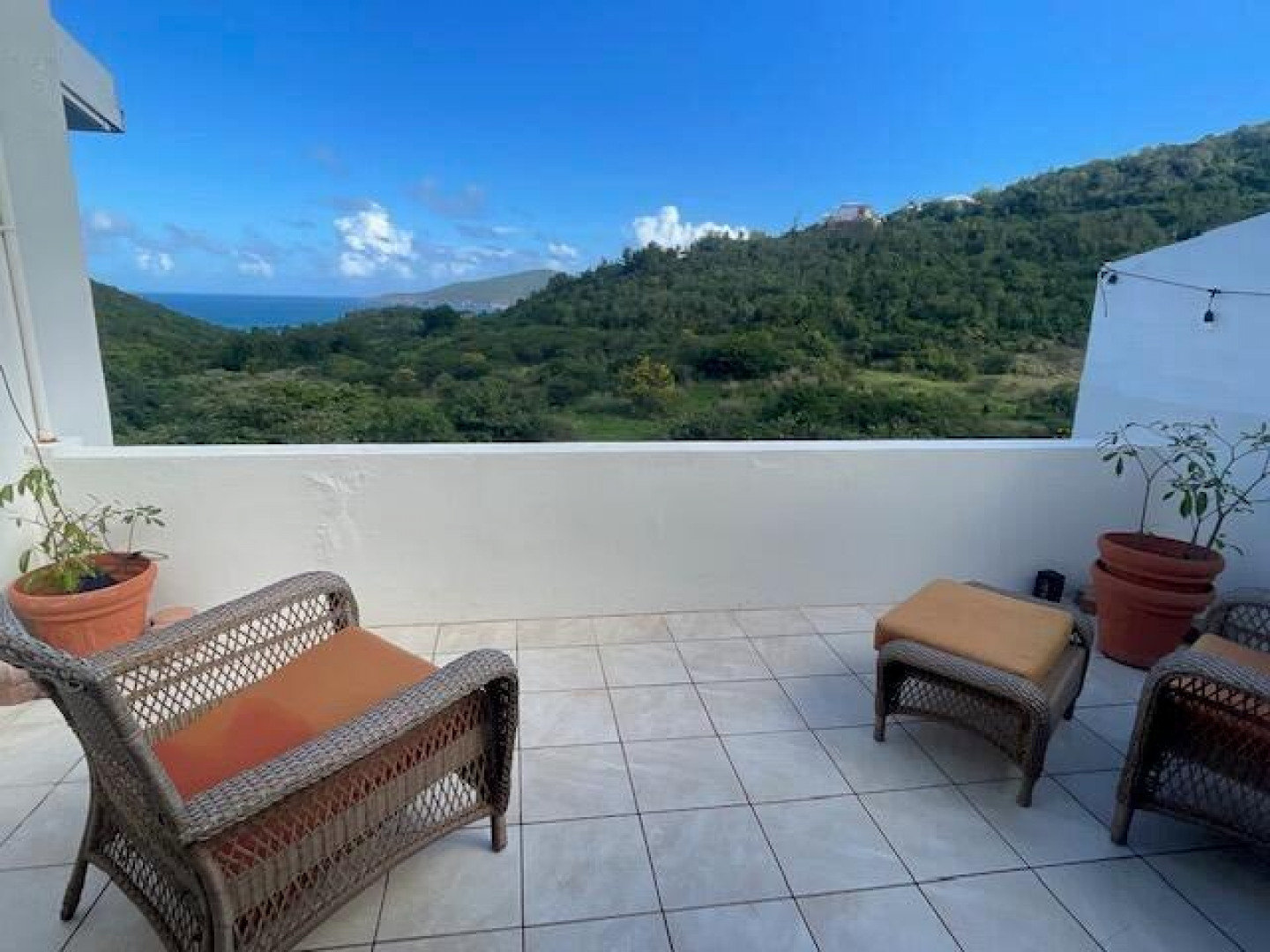 Welcome to this spacious and inviting upper-level condo, boasting 2 bedrooms and 2 bathrooms. The property is located within a secure gated community with a carport for your convenience. Vaulted ceilings add to the open and airy feel of the home, while the kitchen offers a lovely view that will take your breath away. Enjoy preparing meals while taking in the beautiful scenery. This unit is ideally situated just 5 minutes away from the world-renowned Magens Beach, known for its pristine sand and crystal-clear waters. Come home to your peaceful retreat after a day of soaking up the sun, and relax in the comfort of your own private oasis. This condo is the perfect blend of comfort and convenience, providing an ideal location to enjoy all that our beautiful island has to offer.