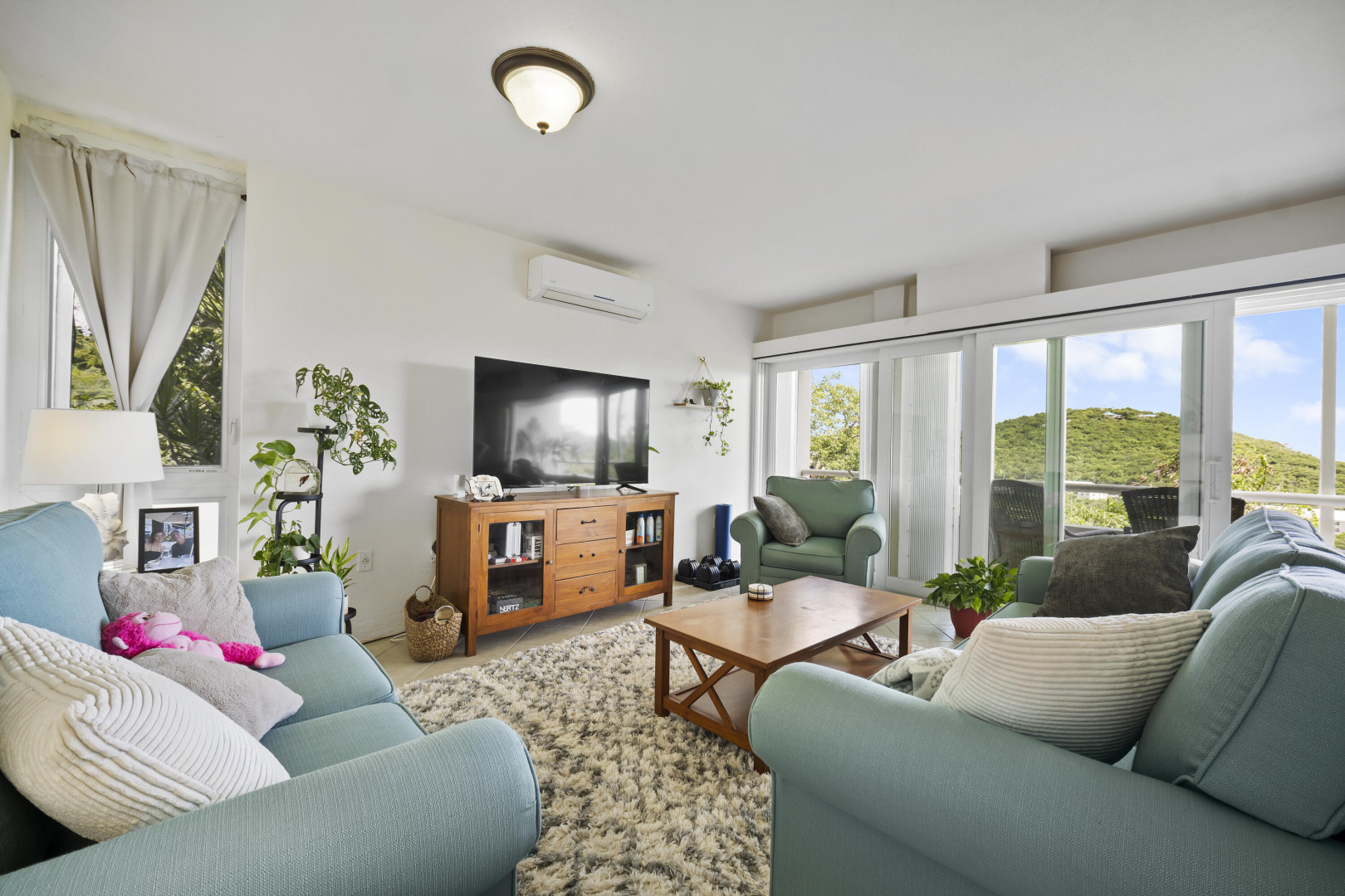 This 1-bedroom, 1-bathroom condo in Mahogany Run Tennis Village offers a relaxed private home for easy island living. Located in a gated community. The open floor plan connects the kitchen and living room, leading directly to the patio. Your bedroom has its own patio Mahogany Run is just 5 minutes from the beautiful Magens Bay.