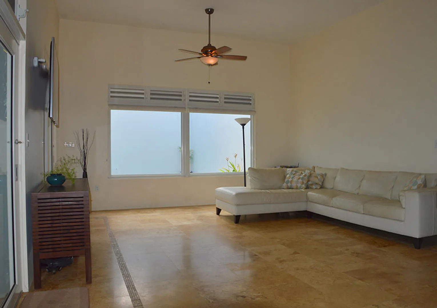 Centrally located this stunning, private, tastefully furnished, gated house offers stunning views as well as all year round cool Caribbean breezes. Gated parking, large a/c rooms (16 foot ceilings), two floors, modern kitchen, full laundry, extra large showers, ADT, professional landscaping and much, much more....A large, two level one bedroom rental is an excellent way to supplement the mortgage.