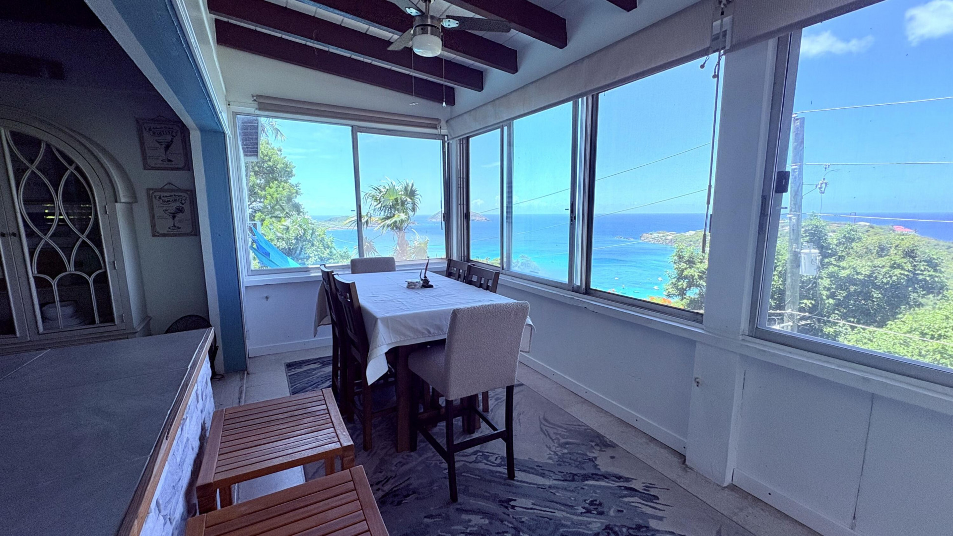Discover this affordable masonry home nestled in the peaceful Hull Bay area, offering both comfort and potential. This property features a spacious 2-bedroom, 2-bath residence, along with a quaint, detached wooden cottage hidden amongst the palms just above the main house - perfect for guests or additional rental income.Enjoy stunning views of Hull Bay and the surrounding landscape from your private retreat. Just a short walk to the beach and local favorite restaurants, this home is ideally located for both relaxation and convenience.This property presents a great investment opportunity as a thriving short-term rental or the perfect getaway.
