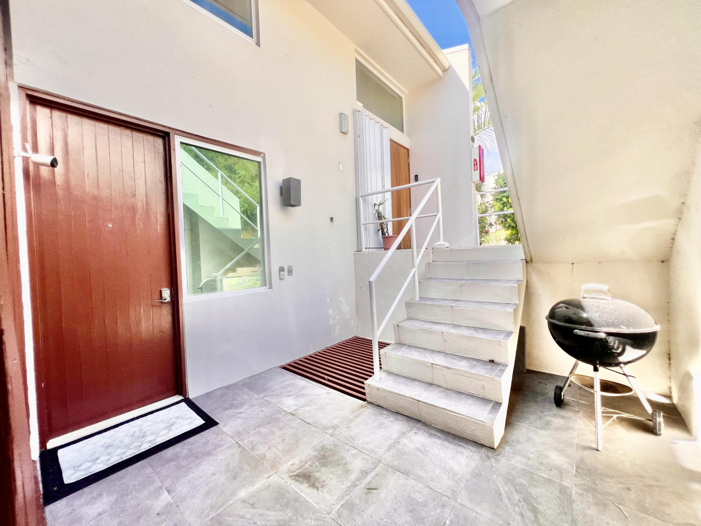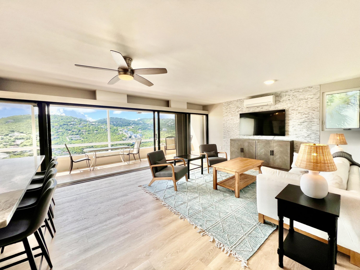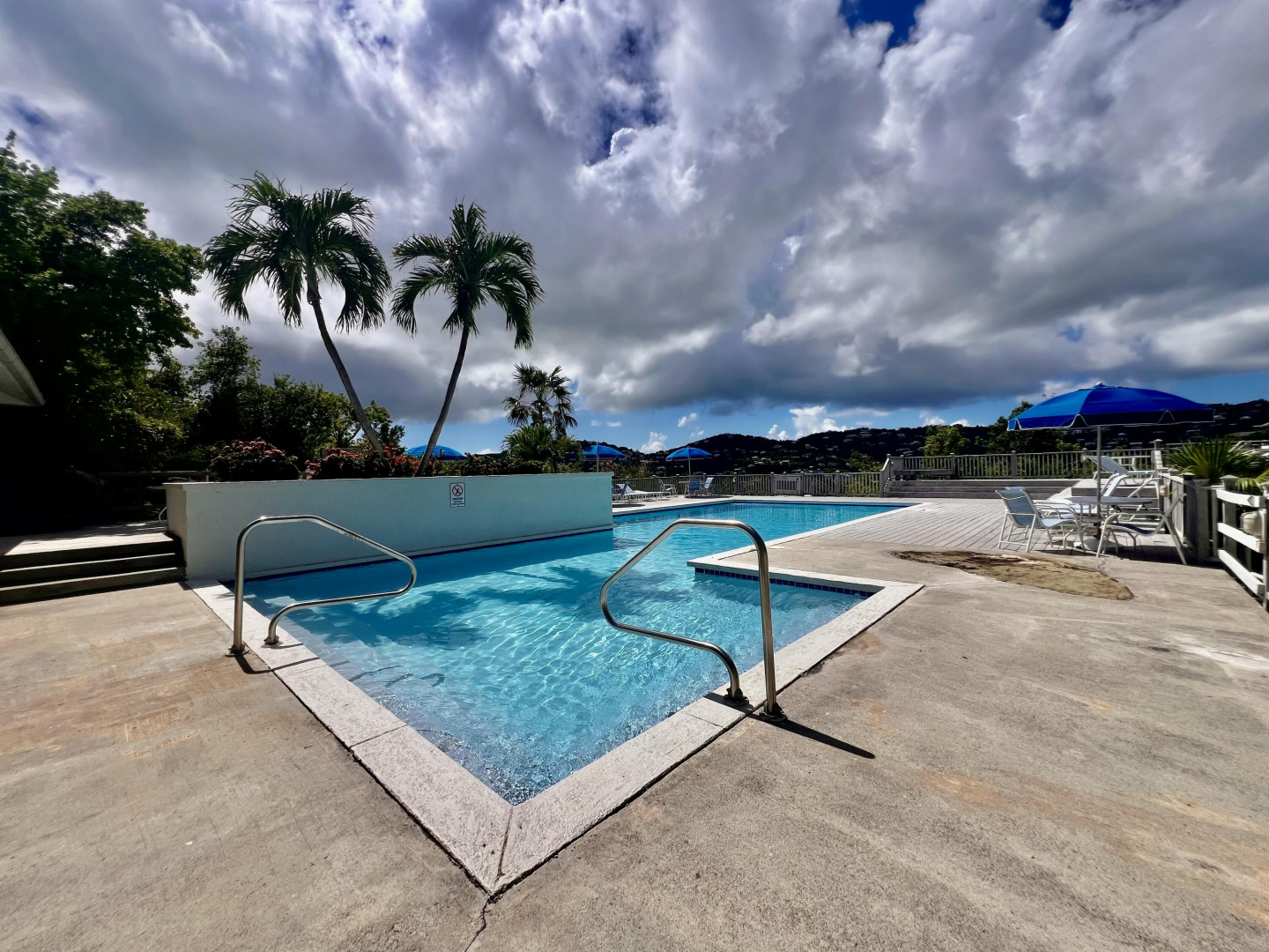 This recently renovated split level unit features two bedrooms and two bathrooms showcasing a contemporary and elegant design. The residence radiates both luxury and comfort, located just minutes from the renowned Magen's Bay Beach. Unwind and take in the sunset while enjoying the shimmering lights on the hillside. The homeowners' association fees encompass various amenities, including pest control, trash removal, UV ray filtered water, 24-hour security with a guard and gate, as well as insurance for windstorms, floods and fires. Service dogs are permitted with board approval.