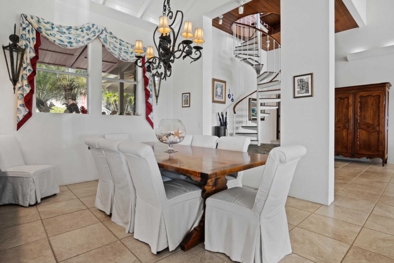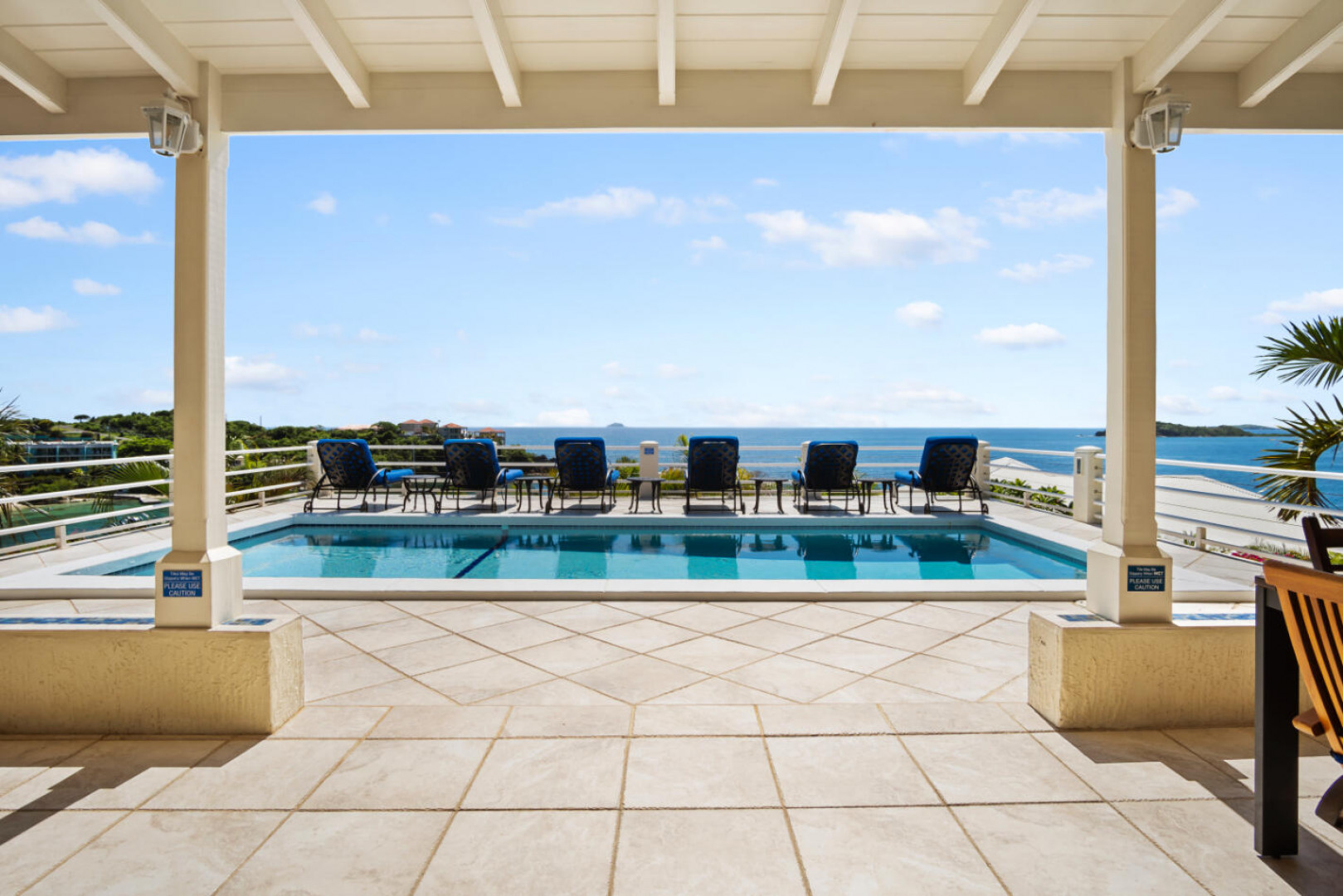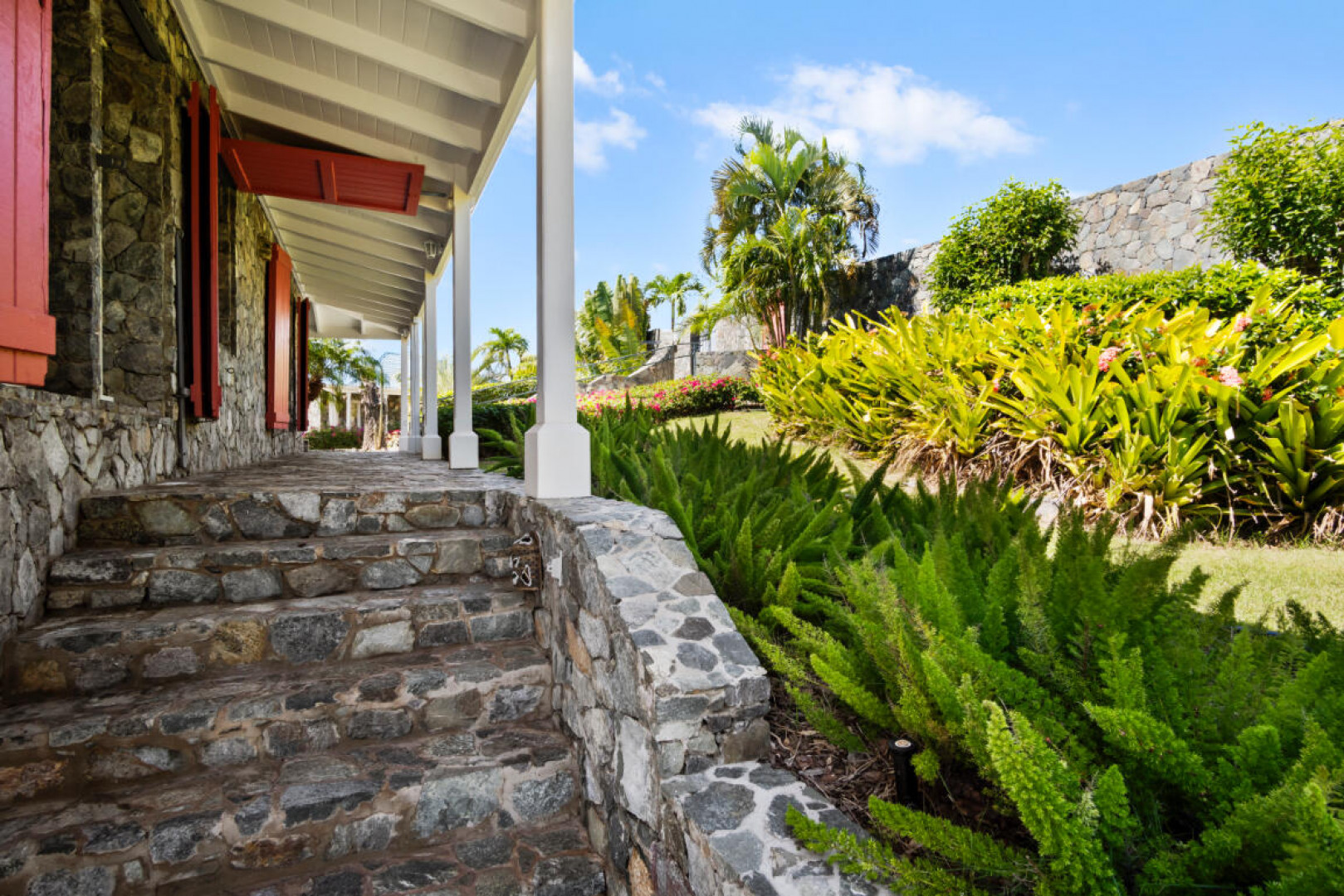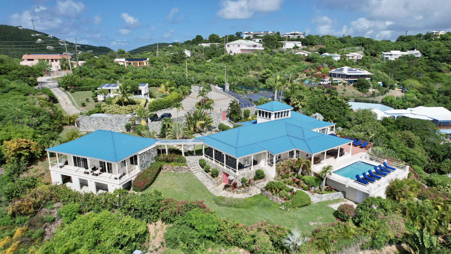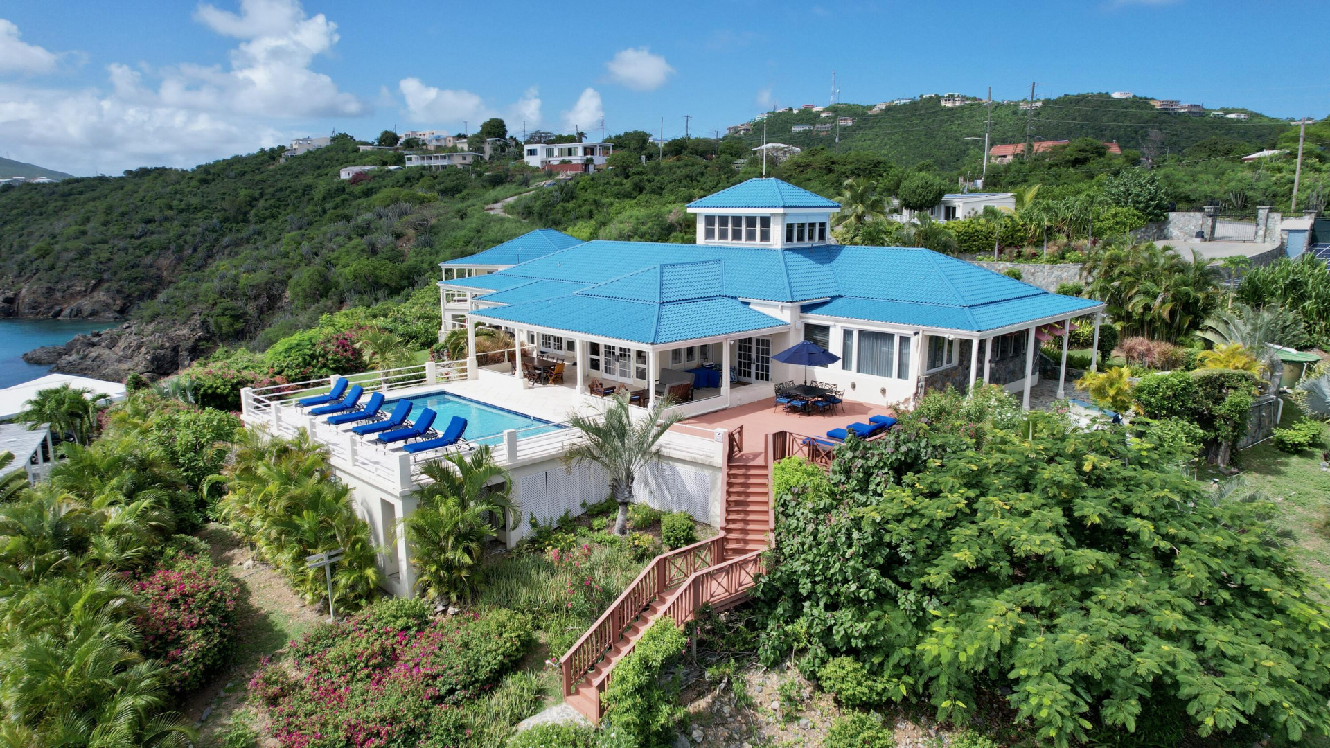 Blue Serenity, tucked along the shores of Secret Harbour, showcases nearly 2 acres of meticulously landscaped grounds. Just 96 steps from the villa, a pristine white sand beach and the turquoise expanse of the Caribbean Sea beckon. This profitable 5-bedroom, 5-bath vacation retreat is complemented by a separate self-contained 1 bedroom 1 bath cottage and a 28X13 pool. Adorned with blue bit stone and surrounded by lush landscaping, the property features a picturesque walkway leading to the beach, alongside personal lounge chairs. An automatic 46kw generator, 171 solar panels offsetting utilities, and gated premises complete this turnkey 5-star living experience.