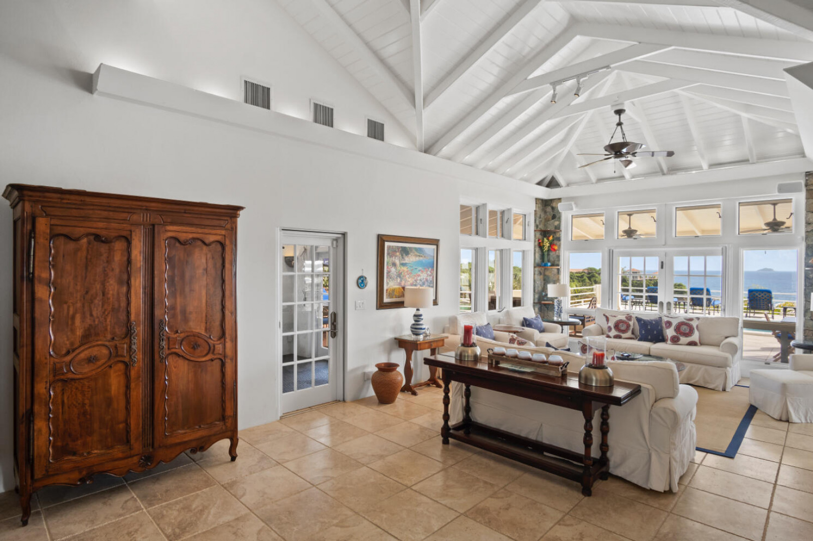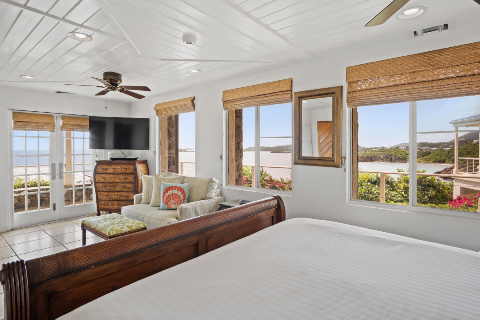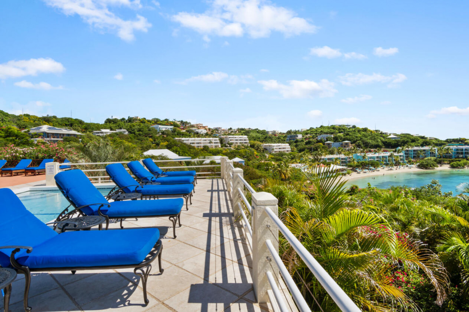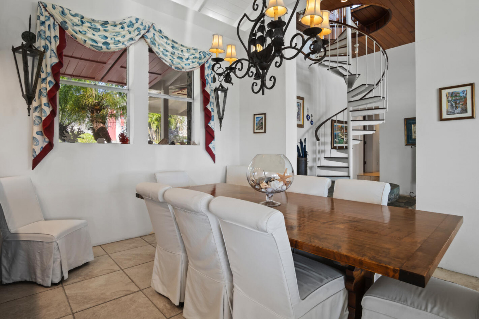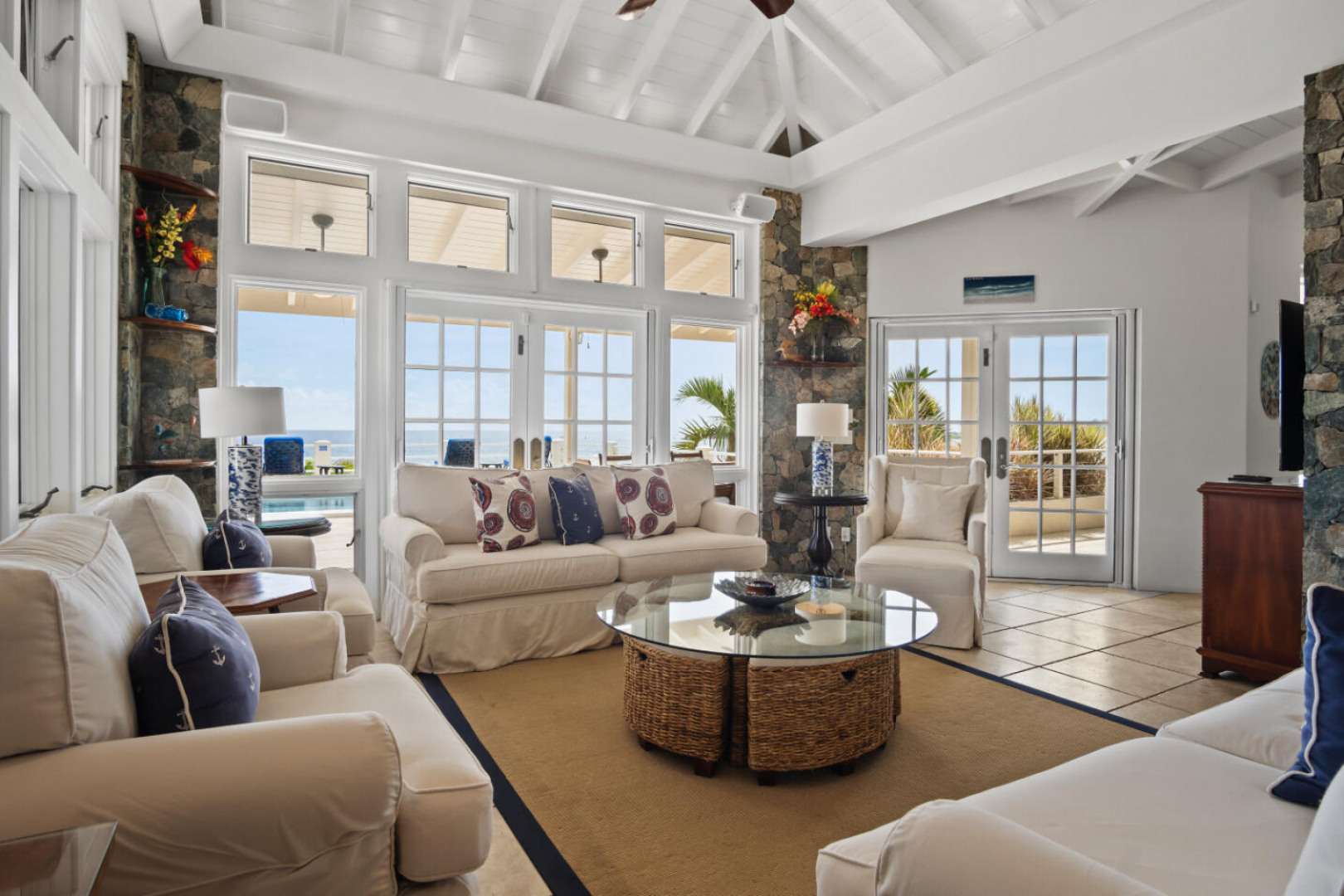 Blue Serenity, tucked along the shores of Secret Harbour, showcases nearly 2 acres of meticulously landscaped grounds. Just 96 steps from the villa, a pristine white sand beach and the turquoise expanse of the Caribbean Sea beckon. This profitable 5-bedroom, 5-bath vacation retreat is complemented by a separate self-contained 1 bedroom 1 bath cottage and a 28X13 pool. Adorned with blue bit stone and surrounded by lush landscaping, the property features a picturesque walkway leading to the beach, alongside personal lounge chairs. An automatic 46kw generator, 171 solar panels offsetting utilities, and gated premises complete this turnkey 5-star living experience.