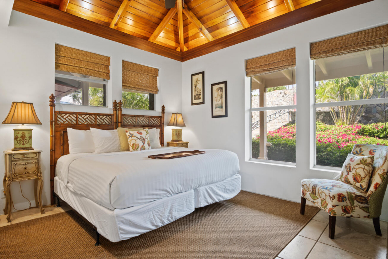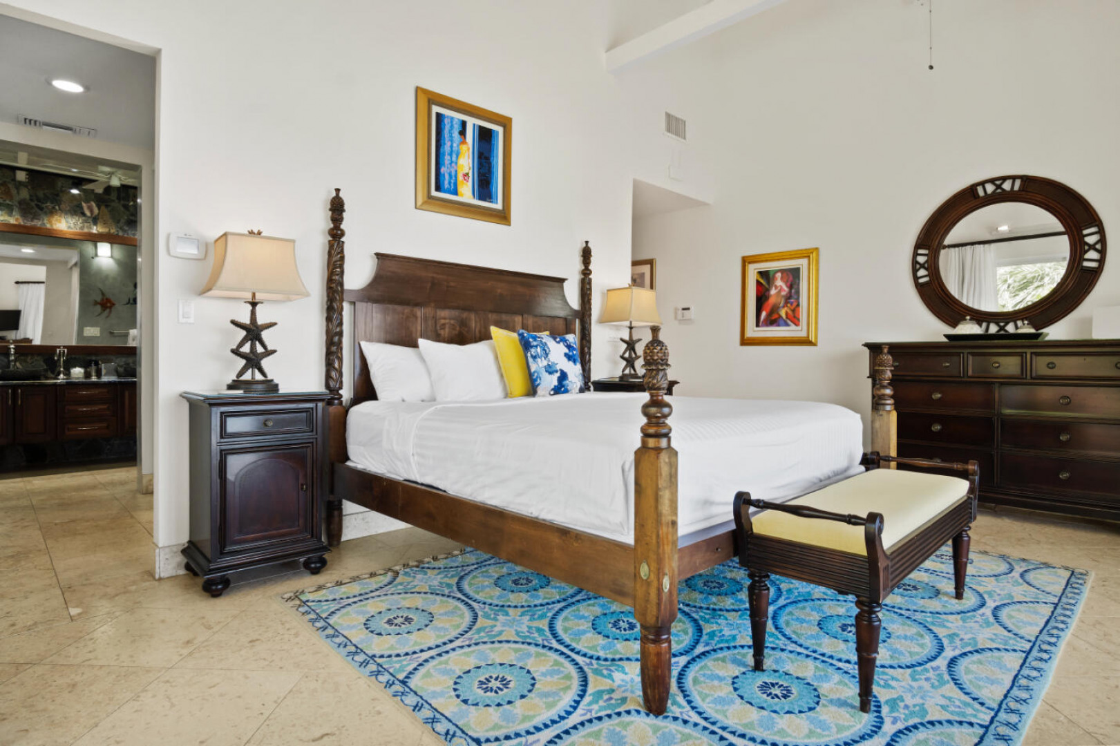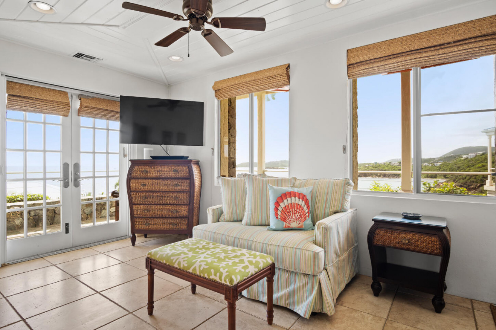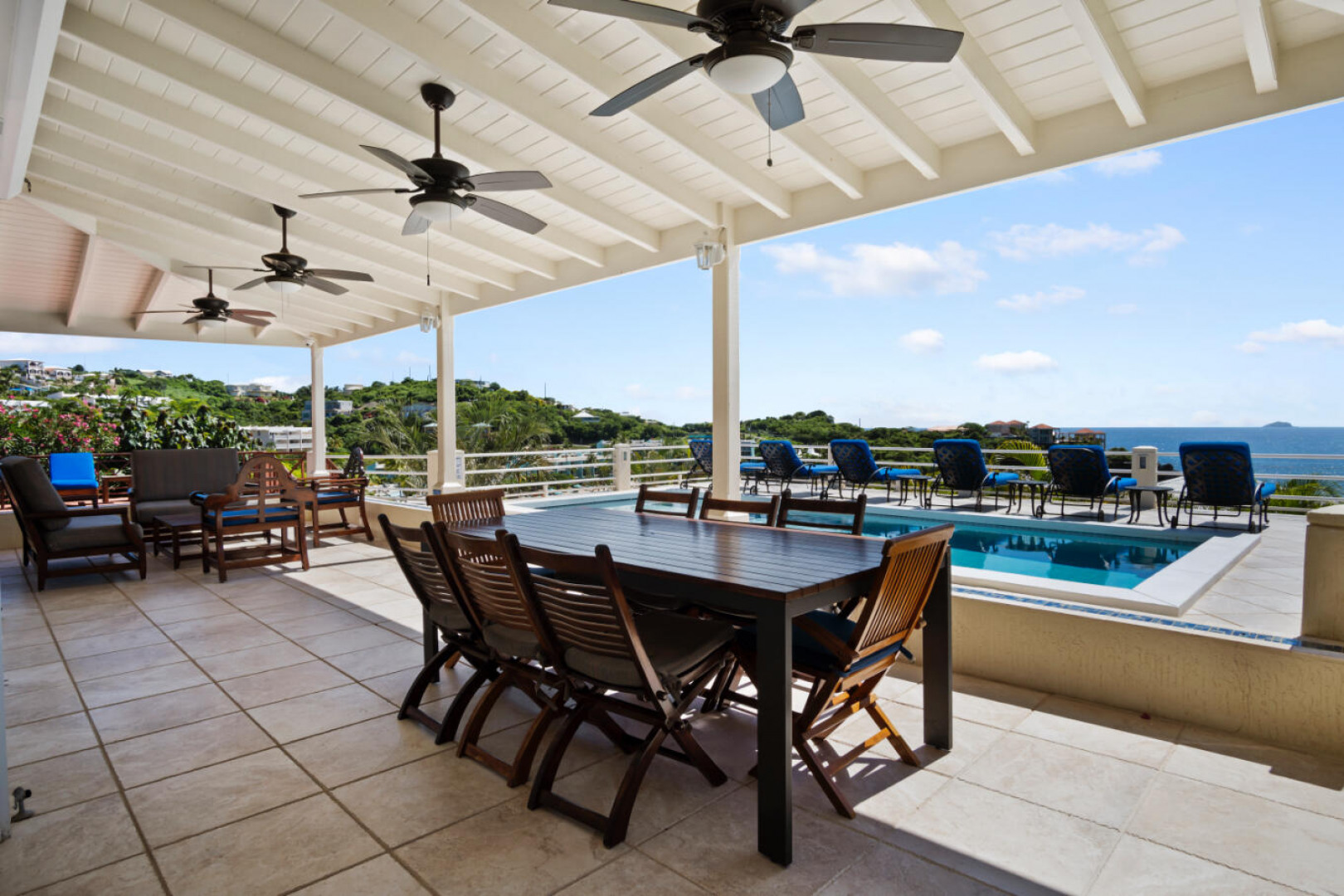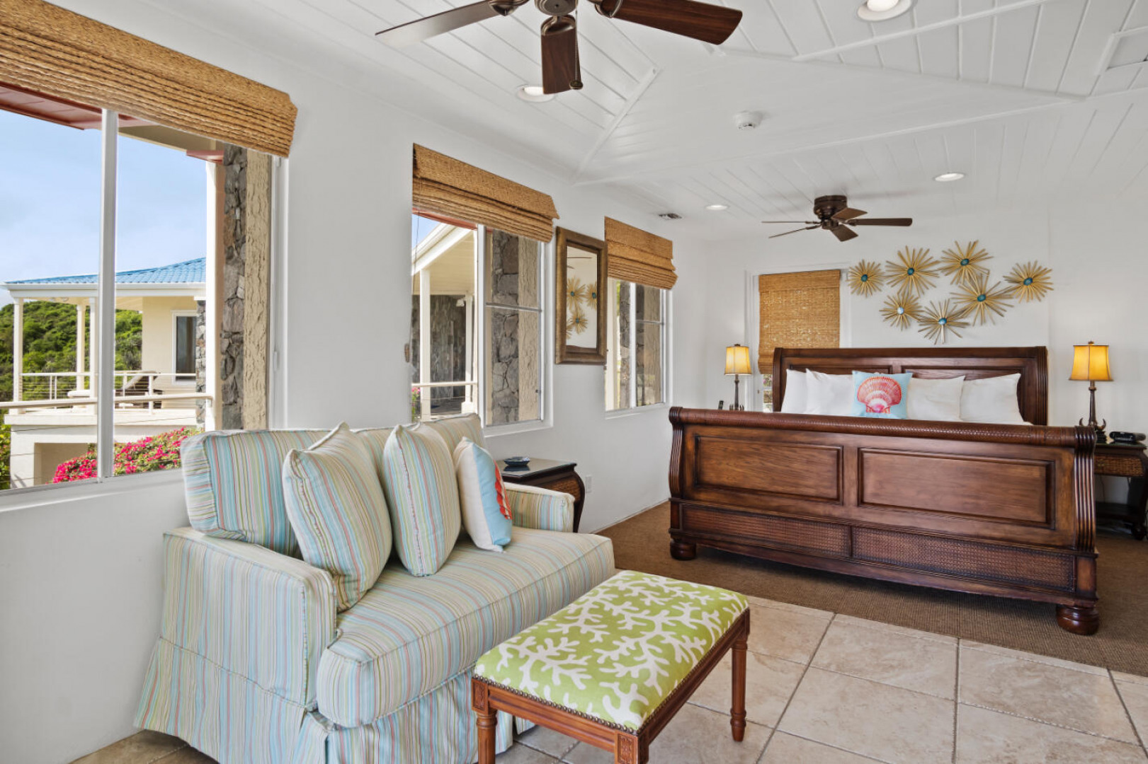 Blue Serenity, tucked along the shores of Secret Harbour, showcases nearly 2 acres of meticulously landscaped grounds. Just 96 steps from the villa, a pristine white sand beach and the turquoise expanse of the Caribbean Sea beckon. This profitable 5-bedroom, 5-bath vacation retreat is complemented by a separate self-contained 1 bedroom 1 bath cottage and a 28X13 pool. Adorned with blue bit stone and surrounded by lush landscaping, the property features a picturesque walkway leading to the beach, alongside personal lounge chairs. An automatic 46kw generator, 171 solar panels offsetting utilities, and gated premises complete this turnkey 5-star living experience.