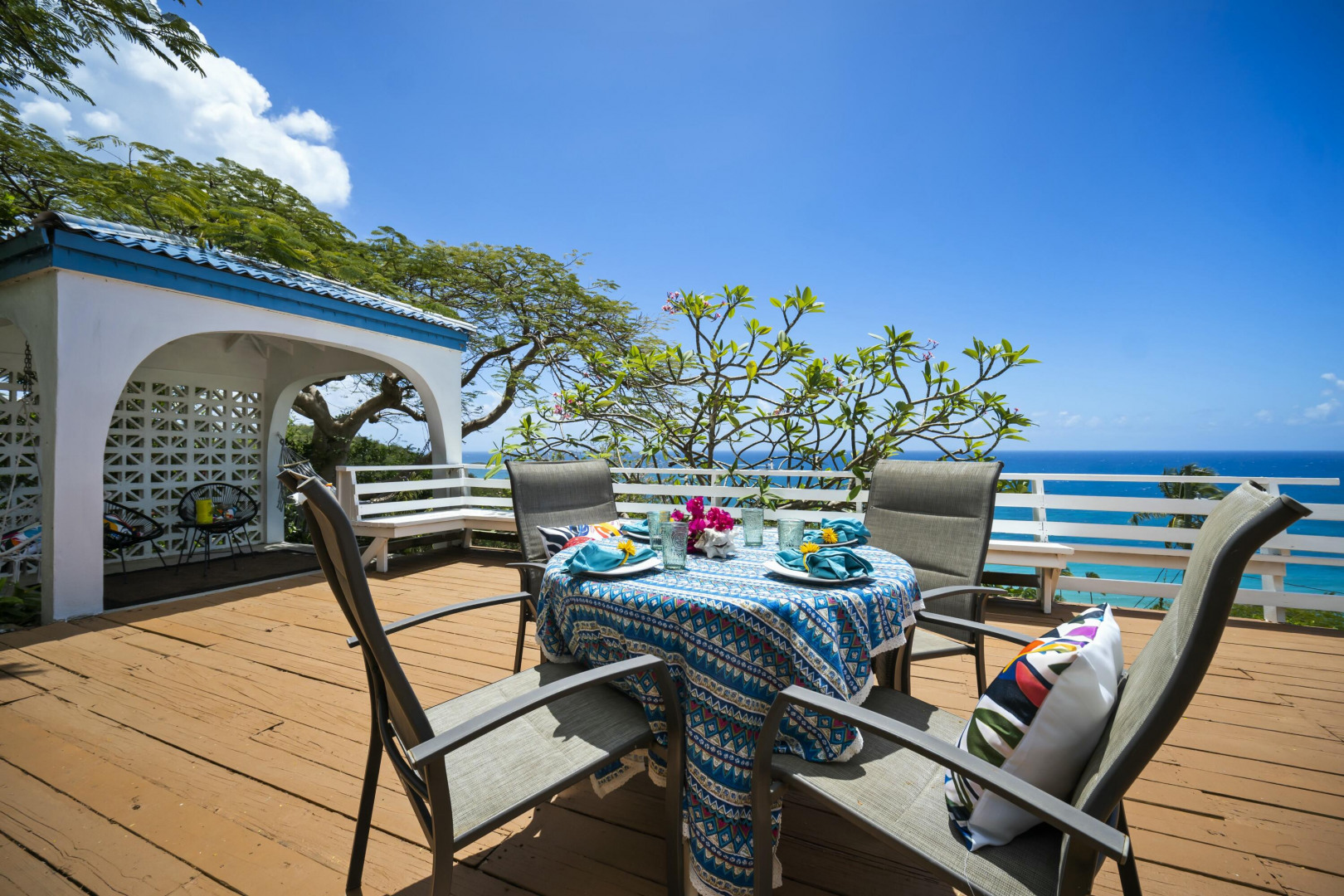 Location! Beautiful compound with 2 separate homes plus studio, with private entrances, parking & decks overlooking stunning 180-degree ocean, beach, sunset views & stars. Villa has cathedral ceilings, 3 bed/3 ensuite bath, terrace, gazebo & fenced landscaped yard with gate to walk to Morning Star Beach & Westin Resort. 2 bed/2 bath house with open kitchen, dining and living areas. Sunny studio with separate dining area. Ideal home with great rental income, short-term rentals or corporate homes (permitted). Well built & maintained by owners. Refurbished decks, cisterns, lighting & plumbing. Power & water outage resilient 15.3Kw solar panels, 4 Tesla Powerwalls (est svg $800-1,000/mo), 40kW generator & cisterns & municipal water back-up, UV filtered water system.Near beach, schools, Havensite, restaurants, grocery stores, shops and entertainment. Comes with plans to add a pool & deck (inquire to review). **Recently price adjusted**