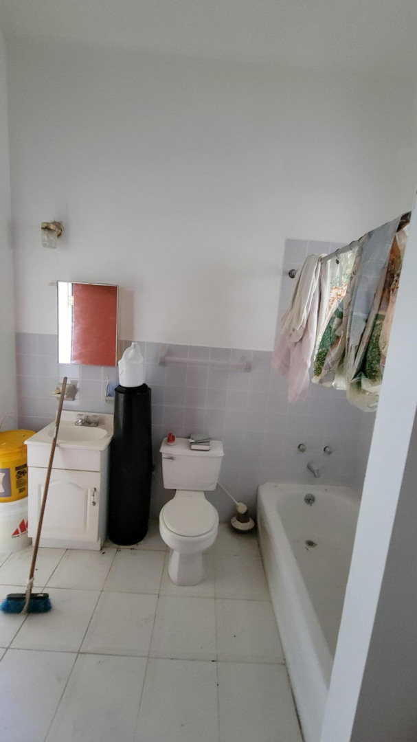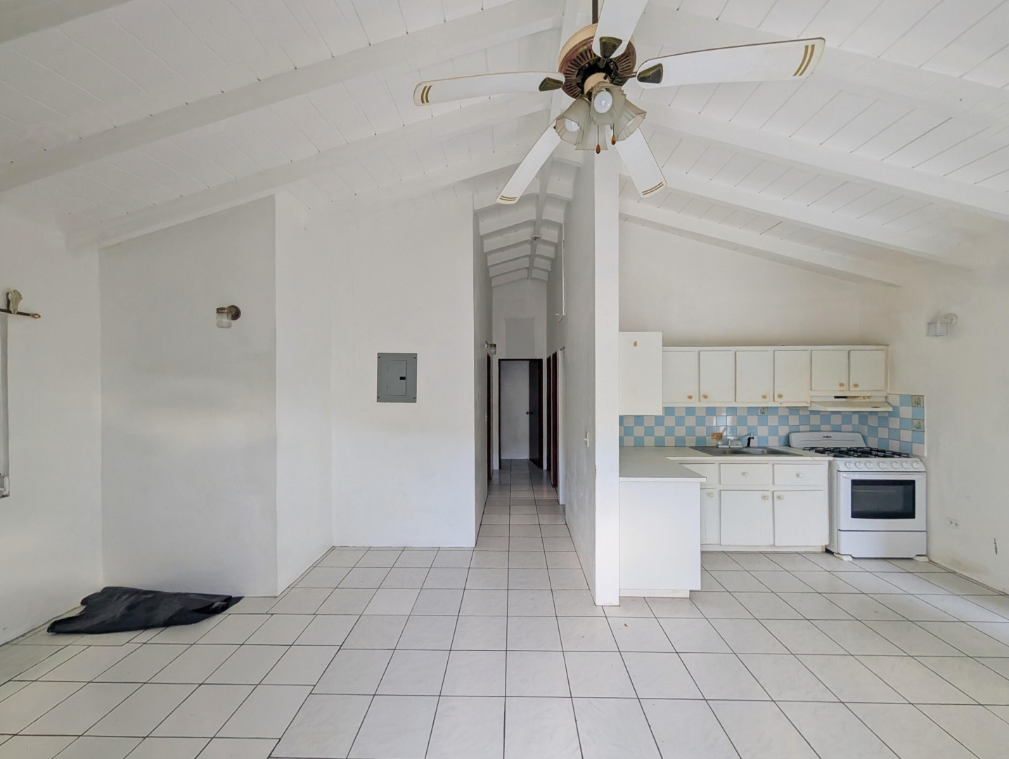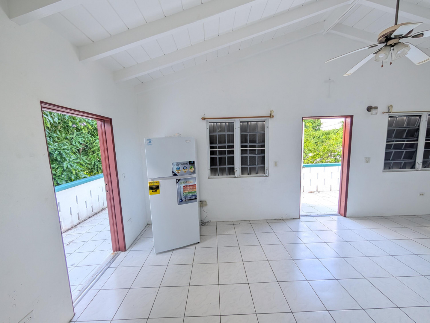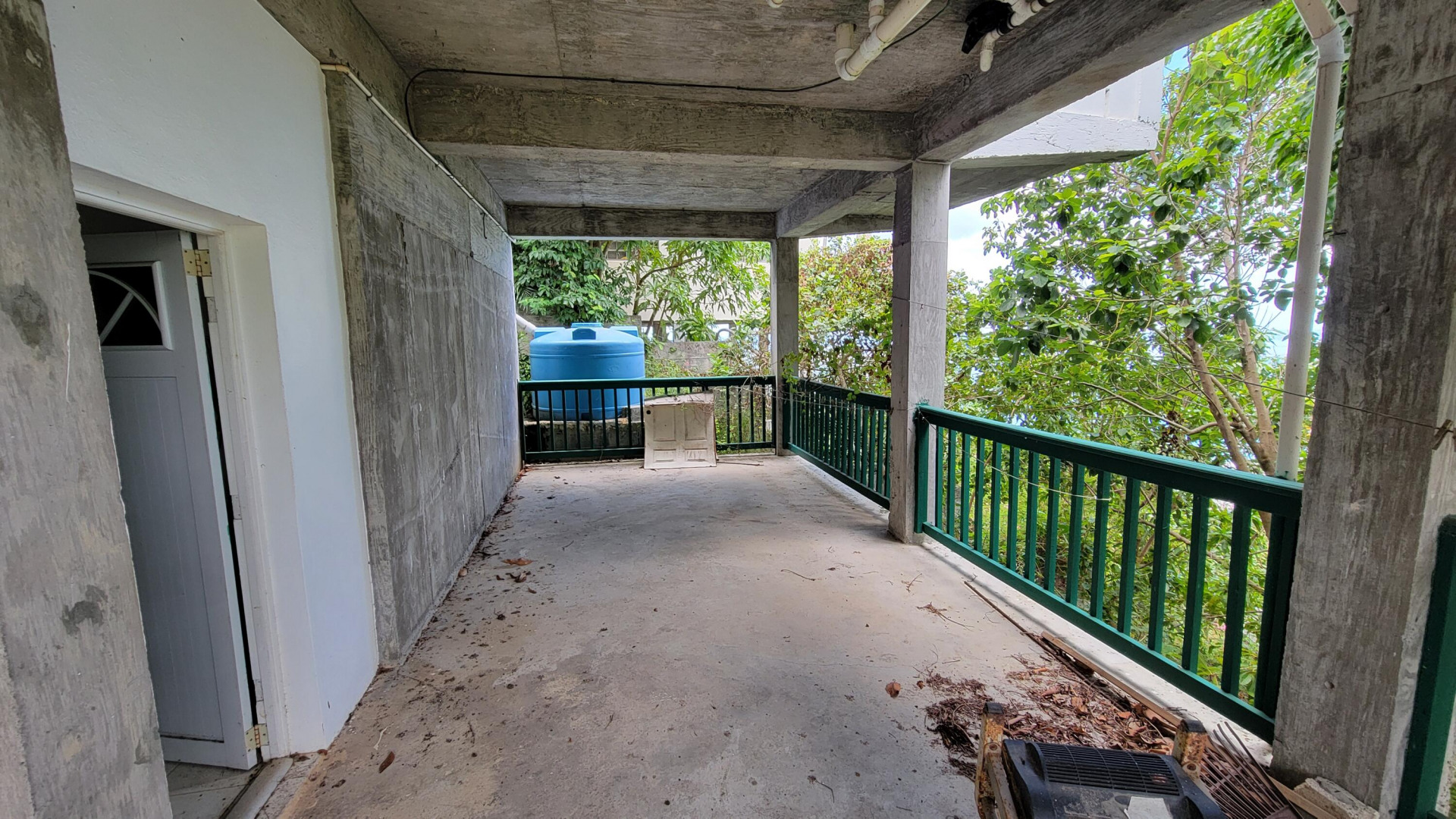 Cute starter home with nice views of Charlotte Amalie harbor. 3 bed 1 bath house with concrete steps to lower level with laundry and another full bathroom and a large covered porch. Perfect to add a studio apartment. Several fruit trees on property. Metal roof, concrete construction and accordion shutters all around. Bedrooms are small, but house is really well built.