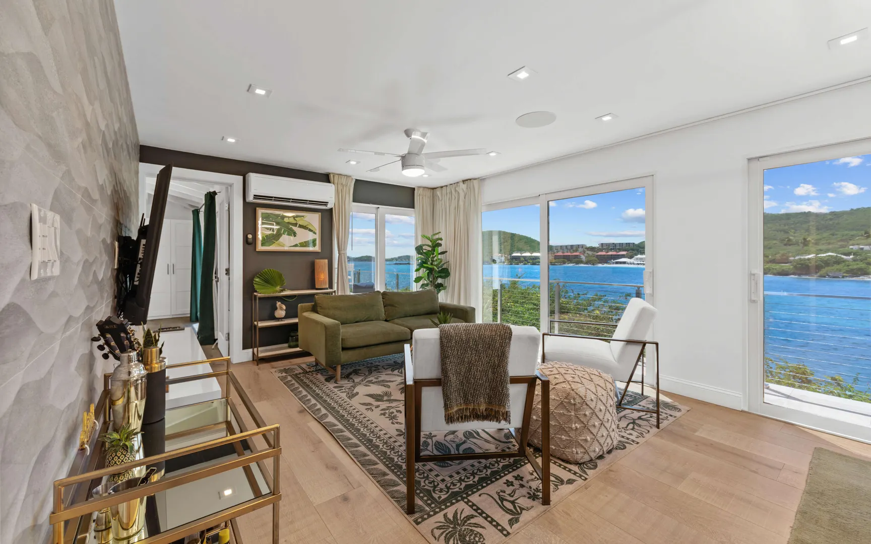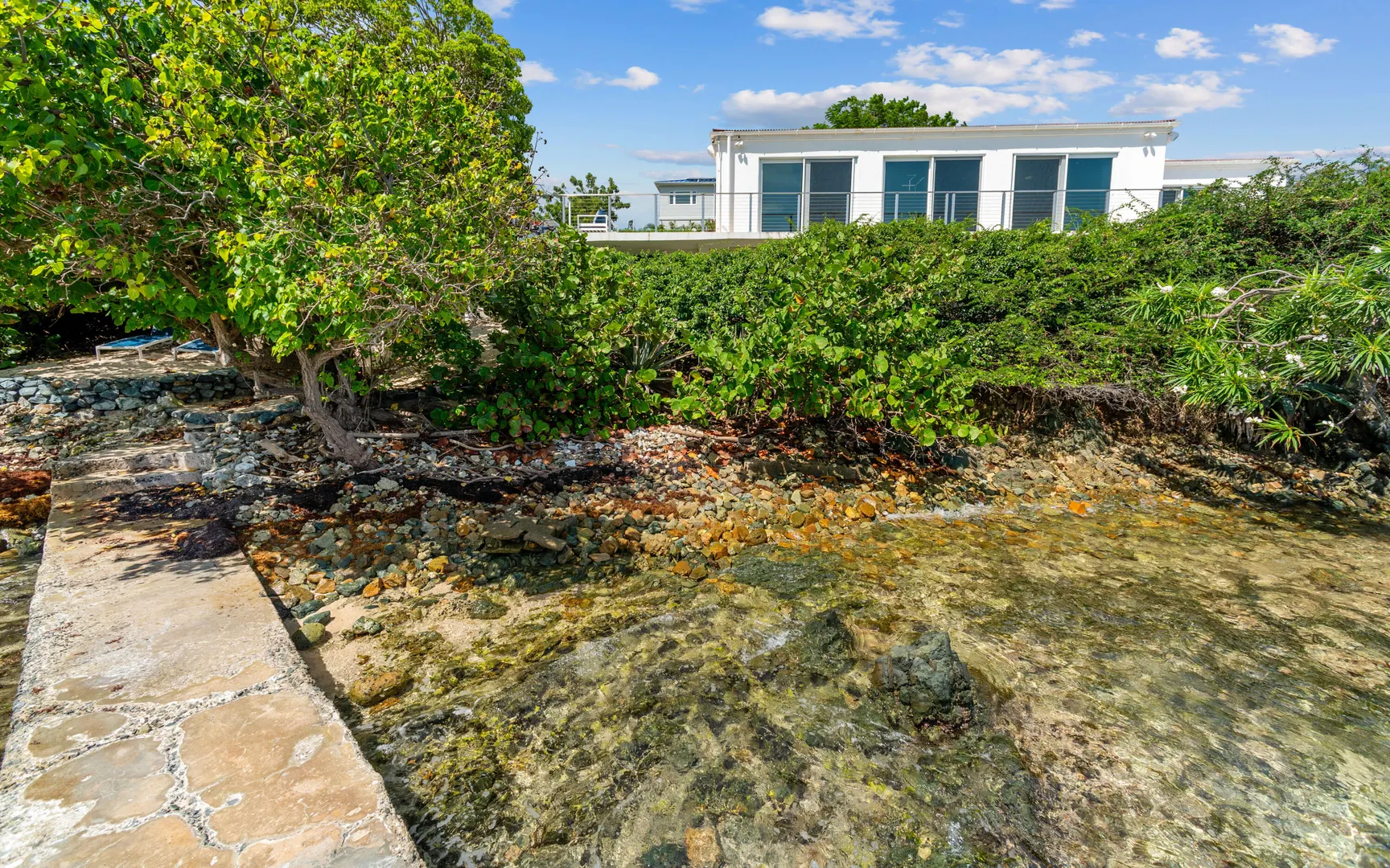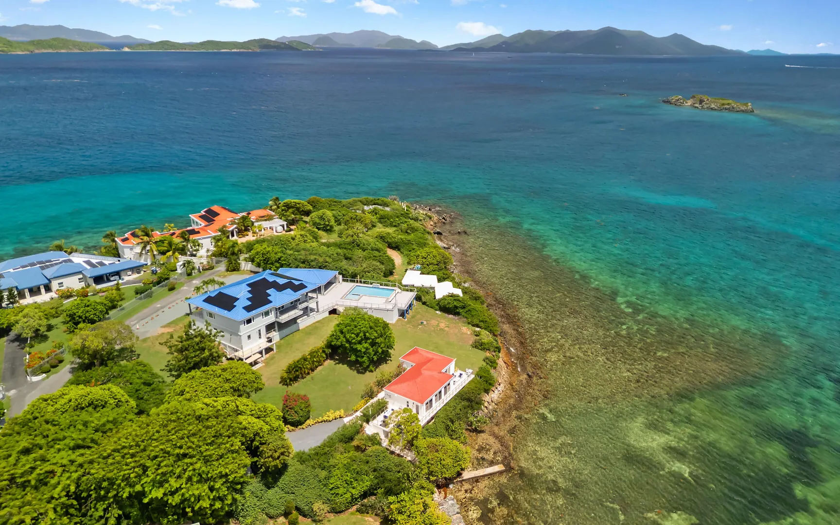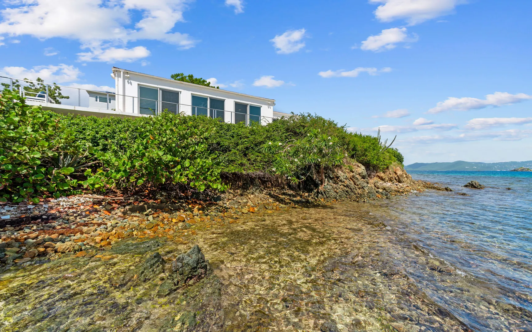 Welcome to Sunswept Cove, an iconic Caribbean retreat where luxury, history, and waterfront living converge. Once part of Fleetwood Mac's St. Thomas estate, this iconic three-bedroom sanctuary, known as the Fleetwood Mac Cottage, has been meticulously transformed into a sophisticated waterfront escape of timeless luxury and contemporary design.Located on a private 0.51-acre lot at prestigious Pelican Point, the property boasts 140 feet of direct water frontage with panoramic views spanning Pelican Beach, Sapphire Beach, St. John, and the surrounding Cays. Just steps from Pelican Beach and minutes to Sapphire Beach, this gated property offers seclusion while being moments from Red Hook's dining, shopping, and ferry to St. John and the BVI.Completely renovated from top to bottom, the interior features floor-to-ceiling glass doors that open wide to the sea, filling the home with light and coastal breezes. Each of the three bedrooms offers a king bed, modern finishes, and access to a terrace. The primary suite includes a spa-inspired bath with dual vanities, rainfall shower, and private laundry. The sleek gourmet kitchen is fitted with top-tier appliances including induction cooktop, oven, microwave, air fryer, dishwasher, and multiple coffee systems, perfect for easy entertaining.
