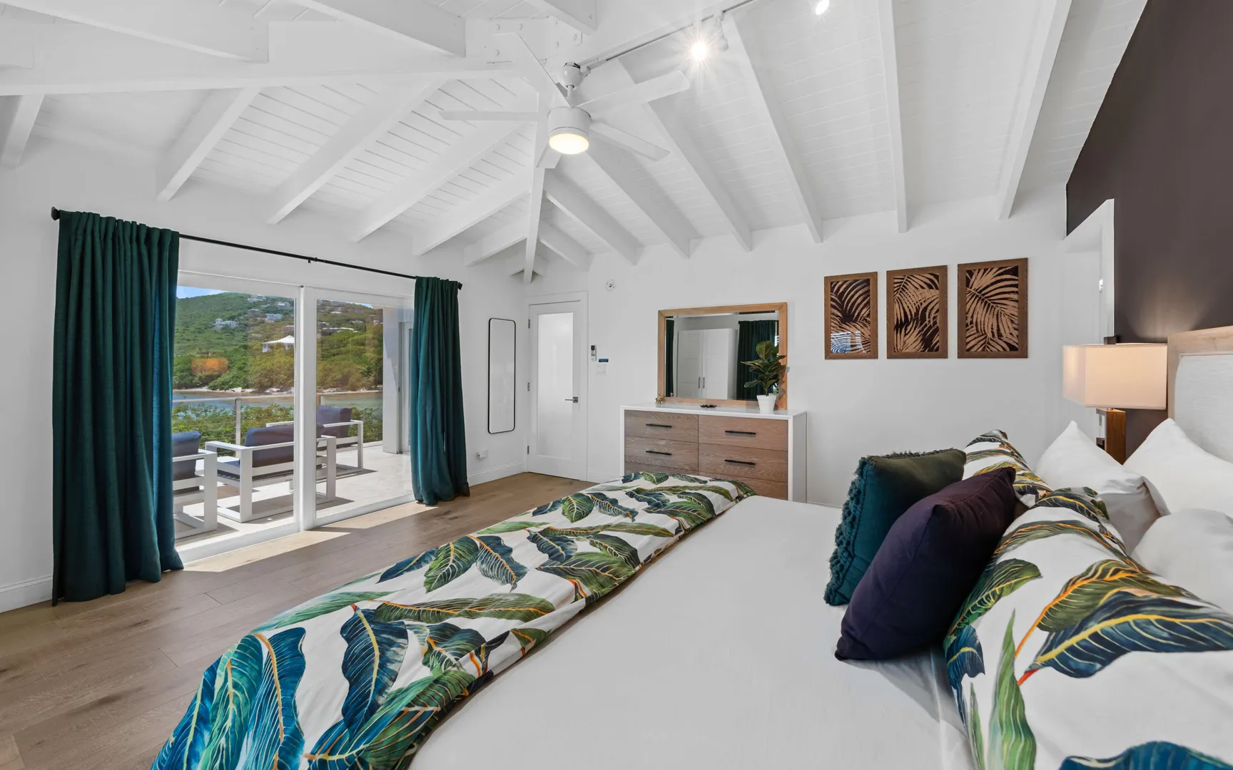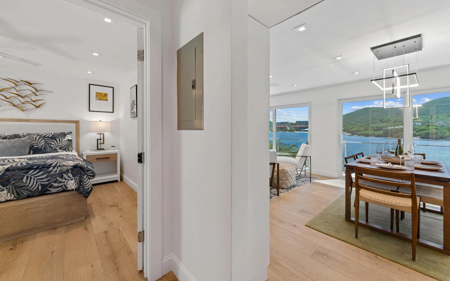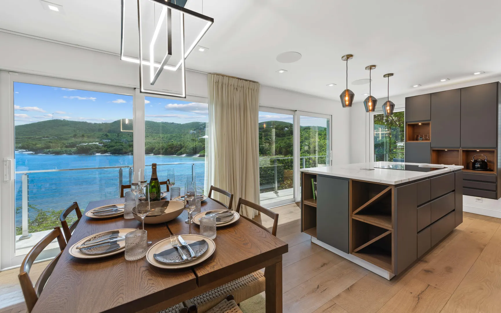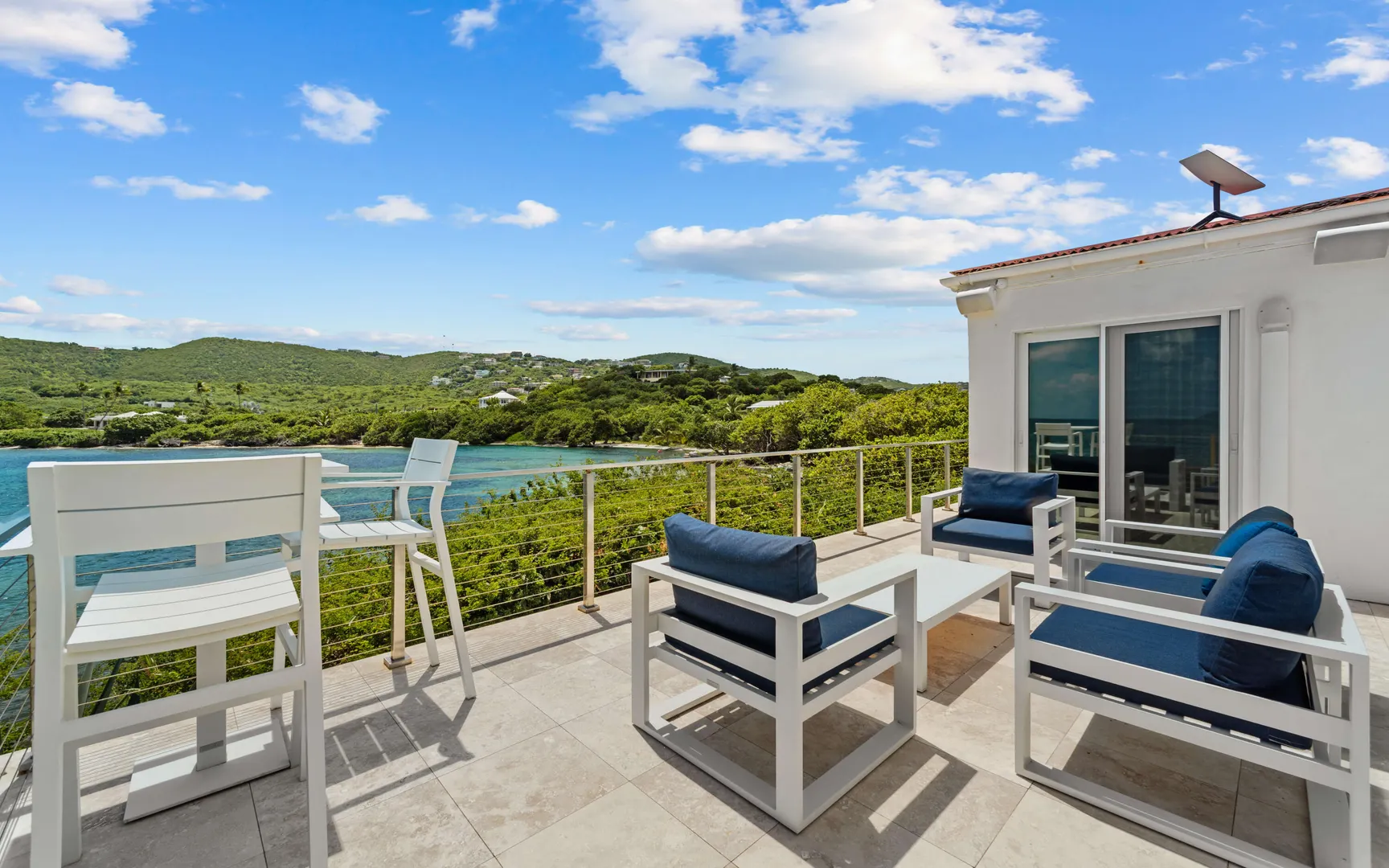 Welcome to Sunswept Cove, an iconic Caribbean retreat where luxury, history, and waterfront living converge. Once part of Fleetwood Mac's St. Thomas estate, this iconic three-bedroom sanctuary, known as the Fleetwood Mac Cottage, has been meticulously transformed into a sophisticated waterfront escape of timeless luxury and contemporary design.Located on a private 0.51-acre lot at prestigious Pelican Point, the property boasts 140 feet of direct water frontage with panoramic views spanning Pelican Beach, Sapphire Beach, St. John, and the surrounding Cays. Just steps from Pelican Beach and minutes to Sapphire Beach, this gated property offers seclusion while being moments from Red Hook's dining, shopping, and ferry to St. John and the BVI.Completely renovated from top to bottom, the interior features floor-to-ceiling glass doors that open wide to the sea, filling the home with light and coastal breezes. Each of the three bedrooms offers a king bed, modern finishes, and access to a terrace. The primary suite includes a spa-inspired bath with dual vanities, rainfall shower, and private laundry. The sleek gourmet kitchen is fitted with top-tier appliances including induction cooktop, oven, microwave, air fryer, dishwasher, and multiple coffee systems, perfect for easy entertaining.
