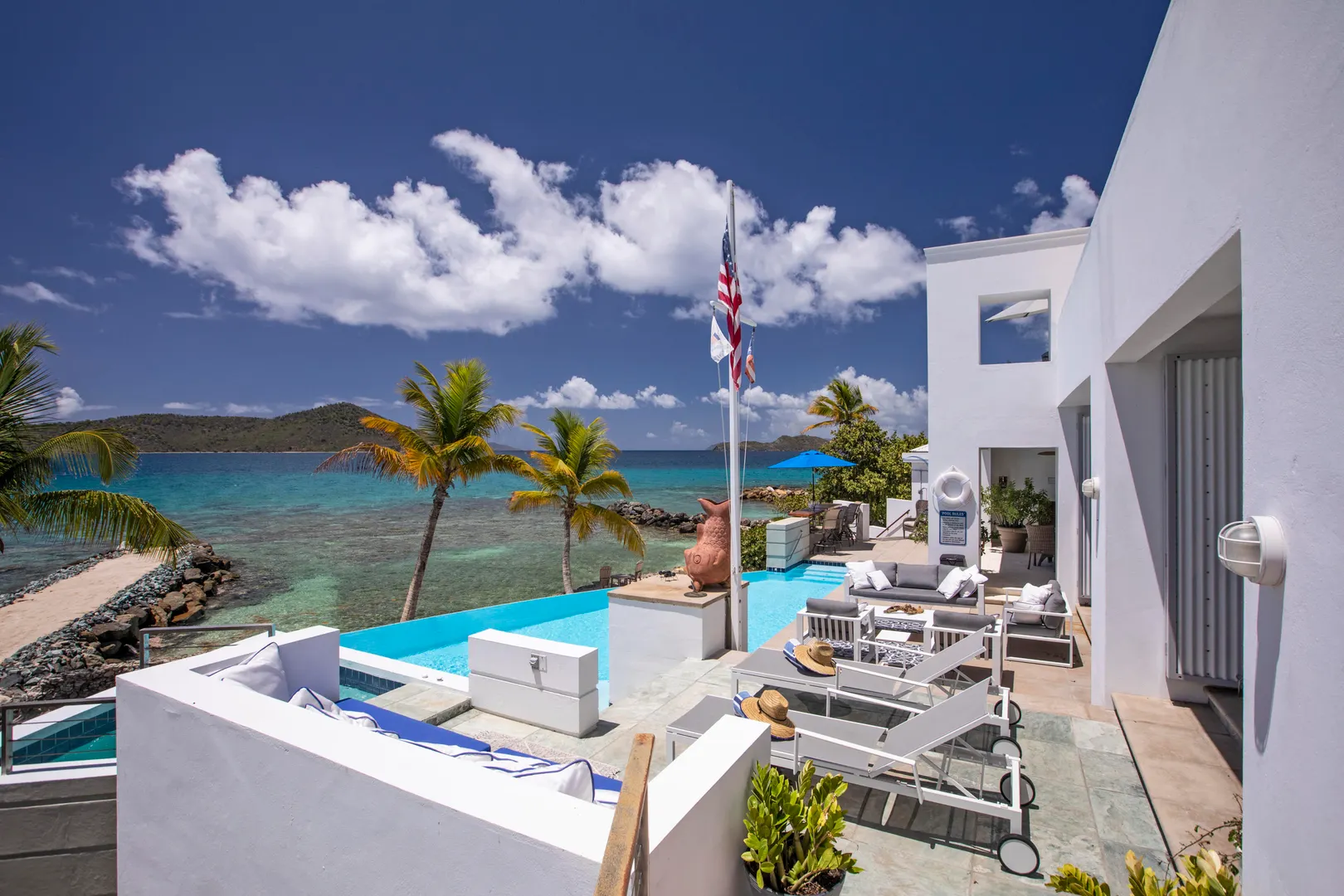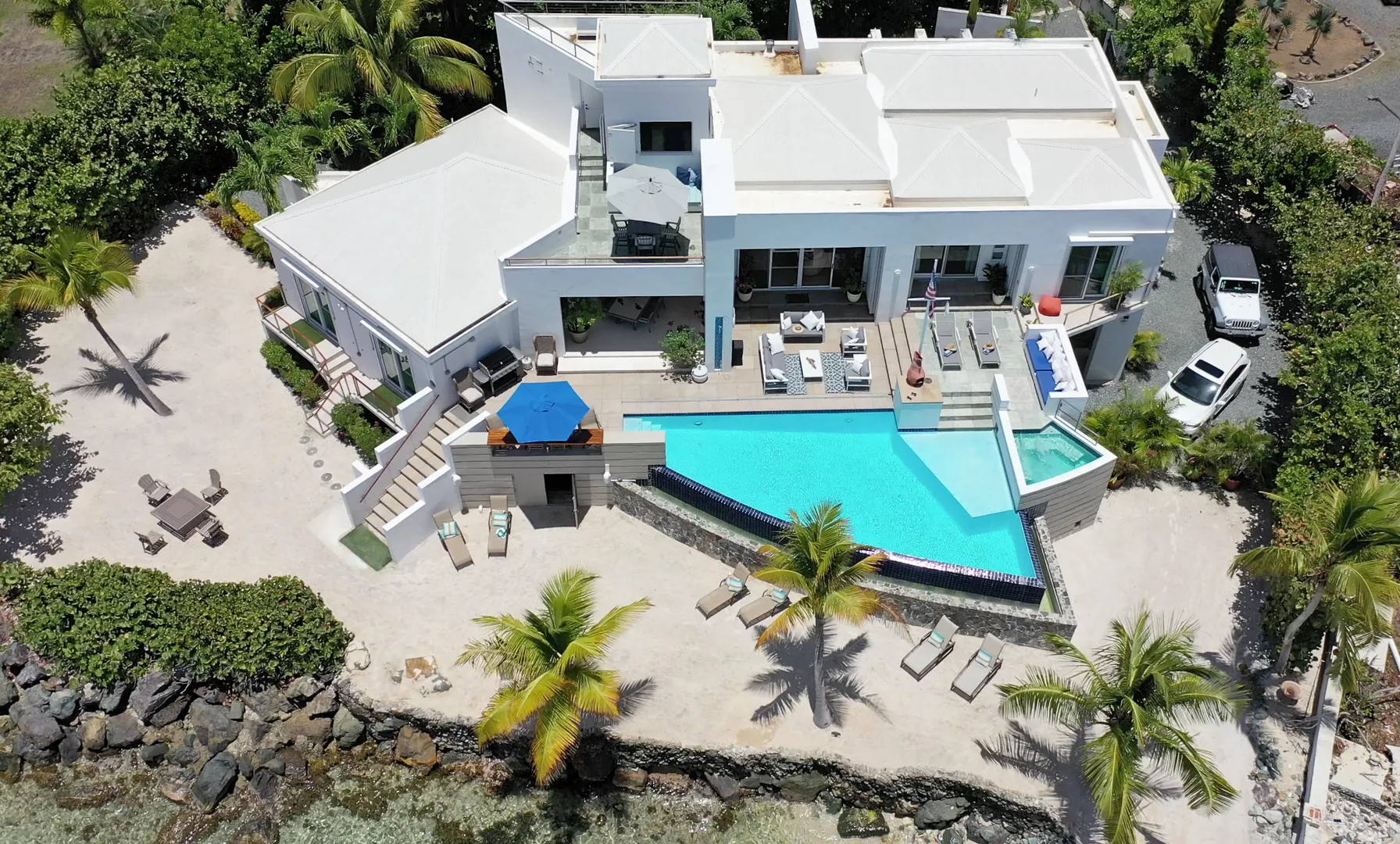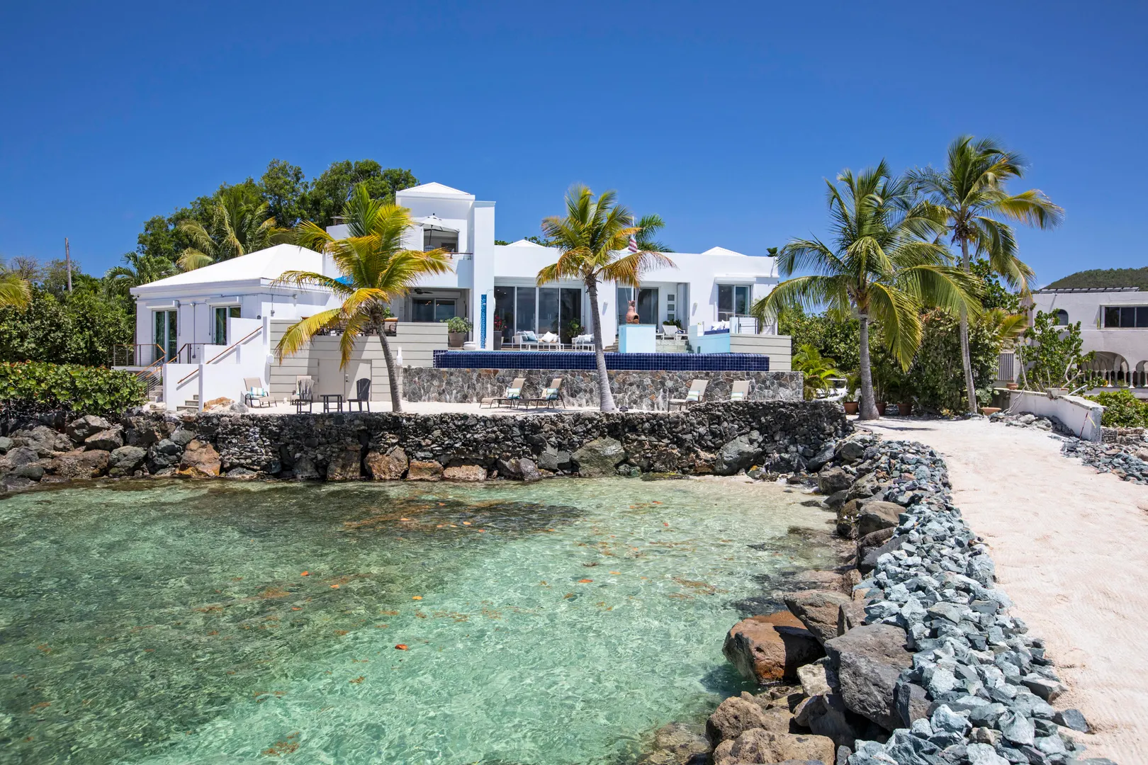 One Beach Road. Let your worries drift away in this modern beachfront paradise. Launch your kayaks or go for a snorkel from the beach, then watch the boats go by from your infinity-edge pool. This luxurious four-bedroom 4 1/2 bath Villa with a separate studio apartment has been recently remodeled. This Villa checks every box; beach with a jetty, pool, hot tub, meditation room, observation deck, propane firebox, garage, workshop, two laundry rooms, a generator, shutters, alarm system with cameras. This turn-key beachfront retreat is currently being used as a vacation rental and is perfect for entertaining or weddings. Be sure to check out the additional .78 acre flat lot across the street that's for sale as a separate purchase MLS#20-1323