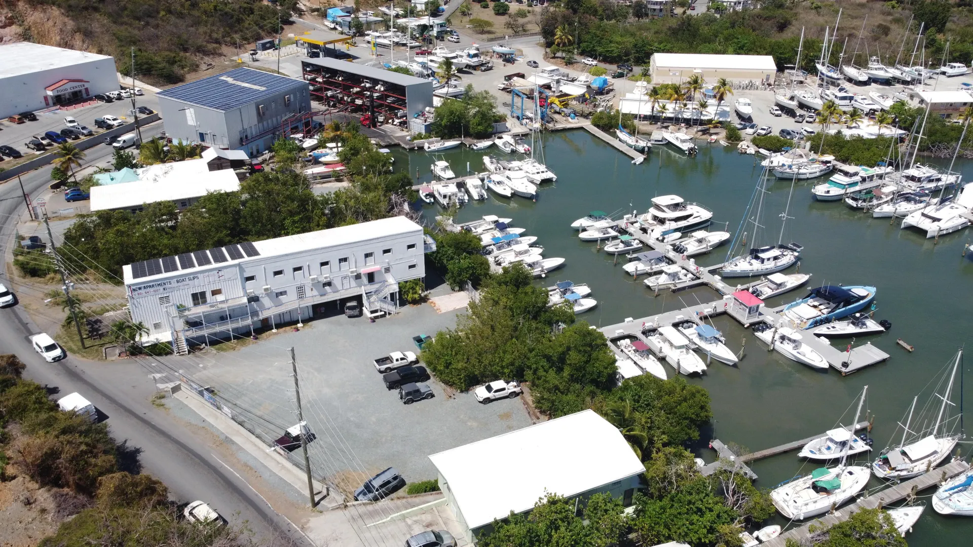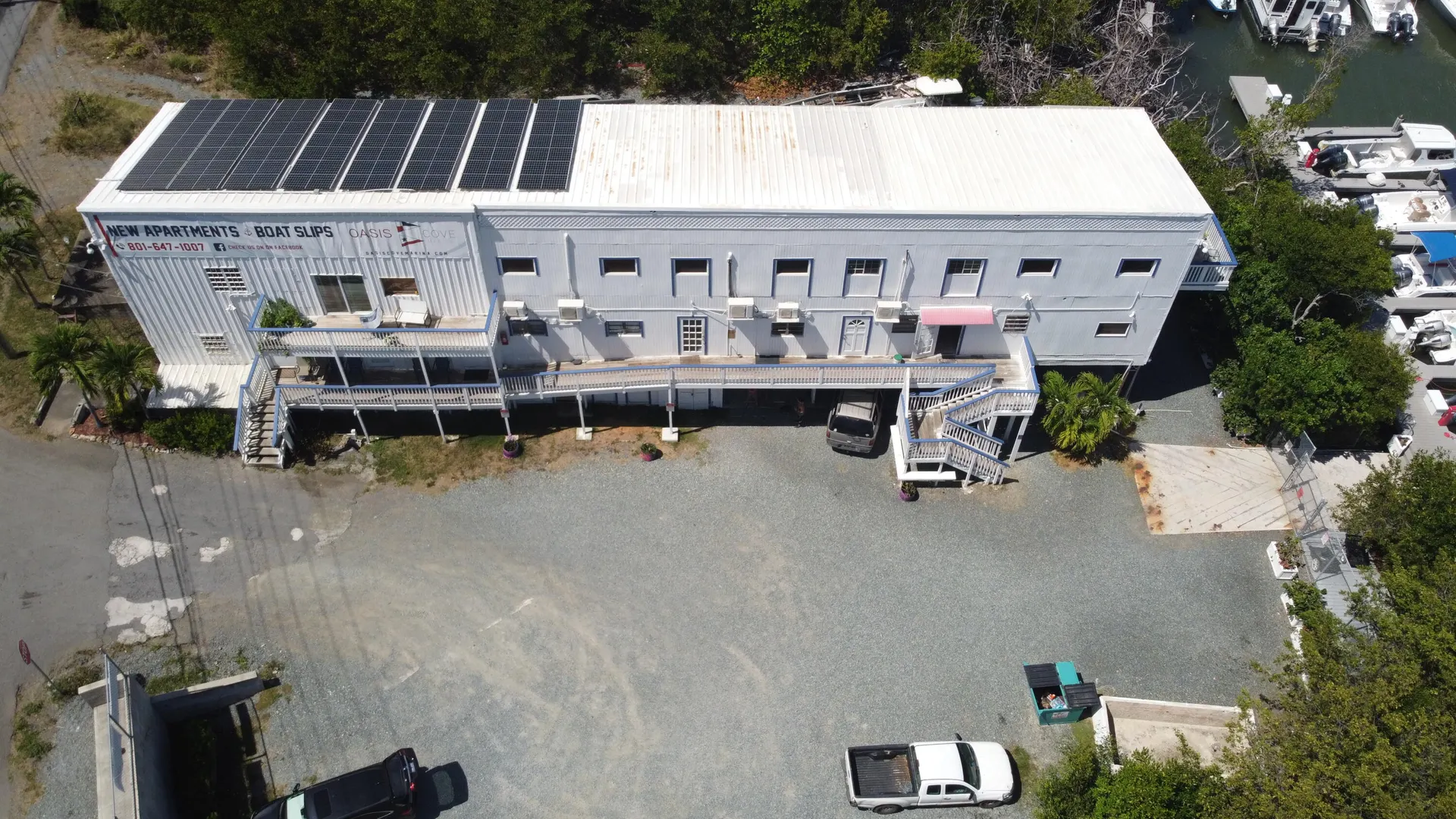 Marina For Sale! 30 Wet slips and 30 parking spaces. There are 12 apartment units, 2 storage rental spaces and plenty of room for expansion.