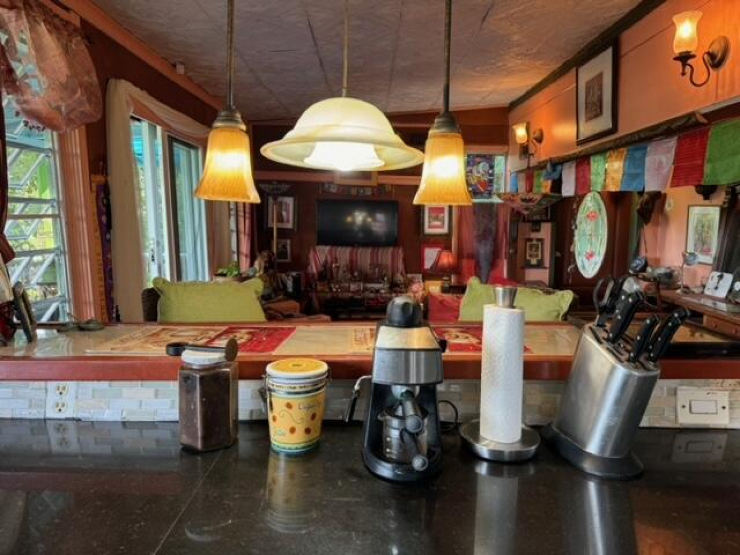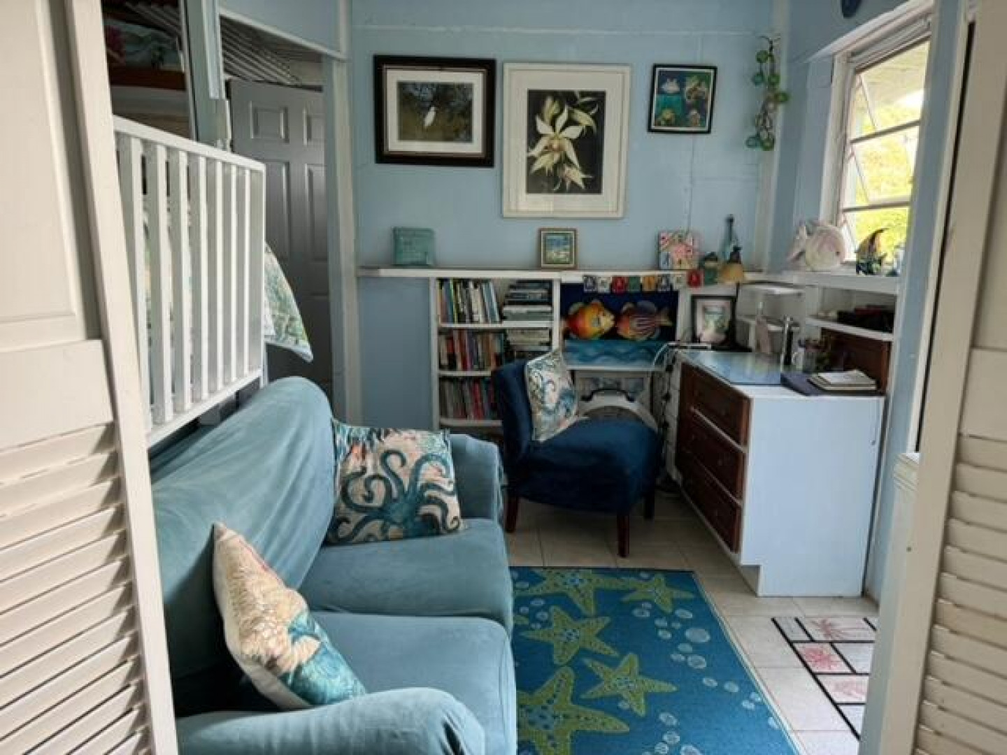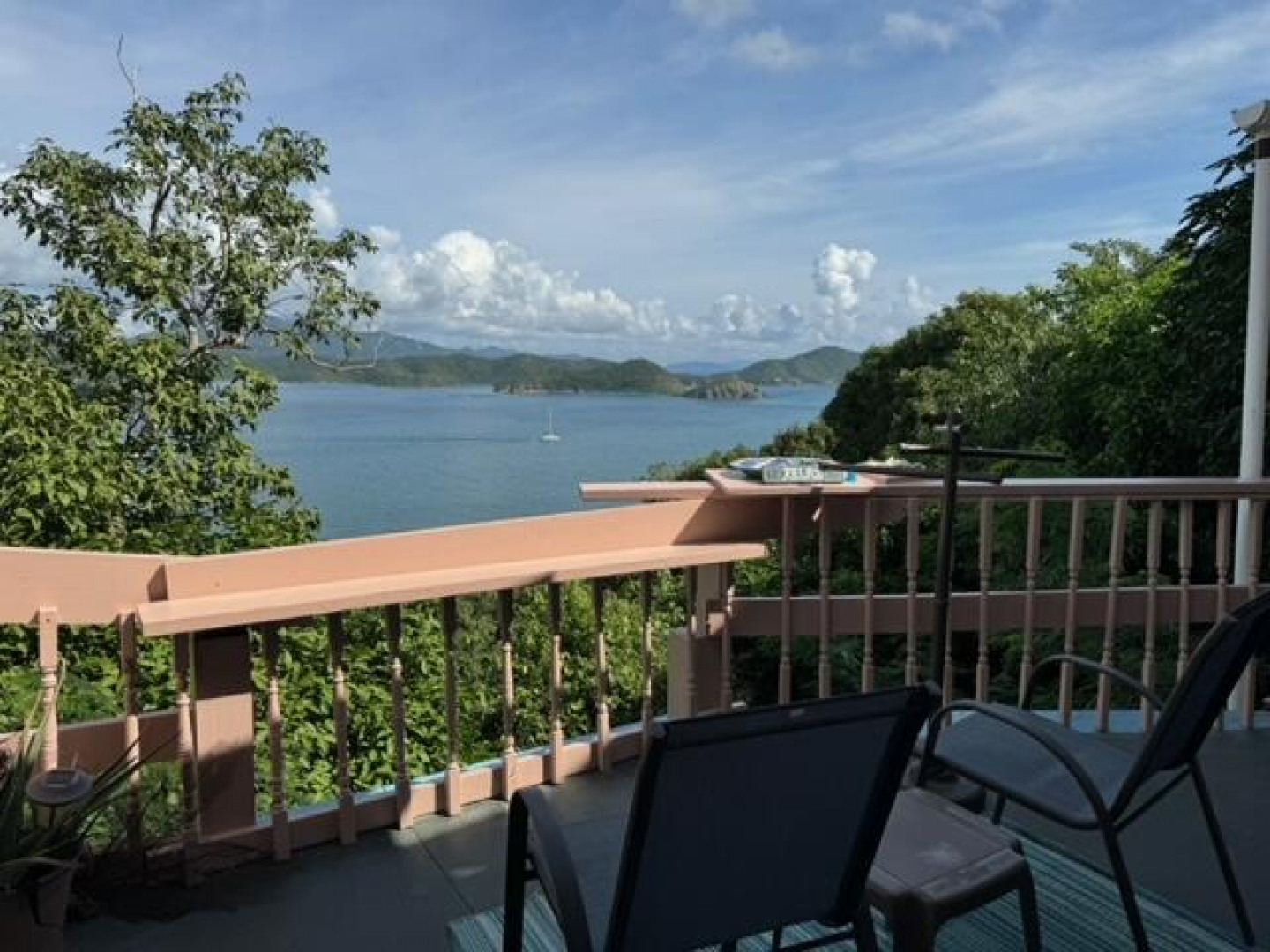 Bonny's Abode is a fun, eclectic, cozy cottage made w) love with beautiful panoramic views of Hurricane Hole, the entrance to Coral Harbor, Fortsberg, East End and the BVI beyond. Plenty of room to build another house at the top of the parcel with even higher panoramic views! The main area is where the kitchen, counter top bar and living area are, just outside is a covered porch leading to a deck, bedroom, bathroom, upper deck and primary bedroom. Beautiful rock formations and fruit trees like mango, genip, lime grow on the property. Downstairs studio apartment allows for additional guests or rental. The upper portion of property is accessed from Andy's Way & offers ample room to build another house on the property. Seller is motivated!Handyman special! Sold as is.