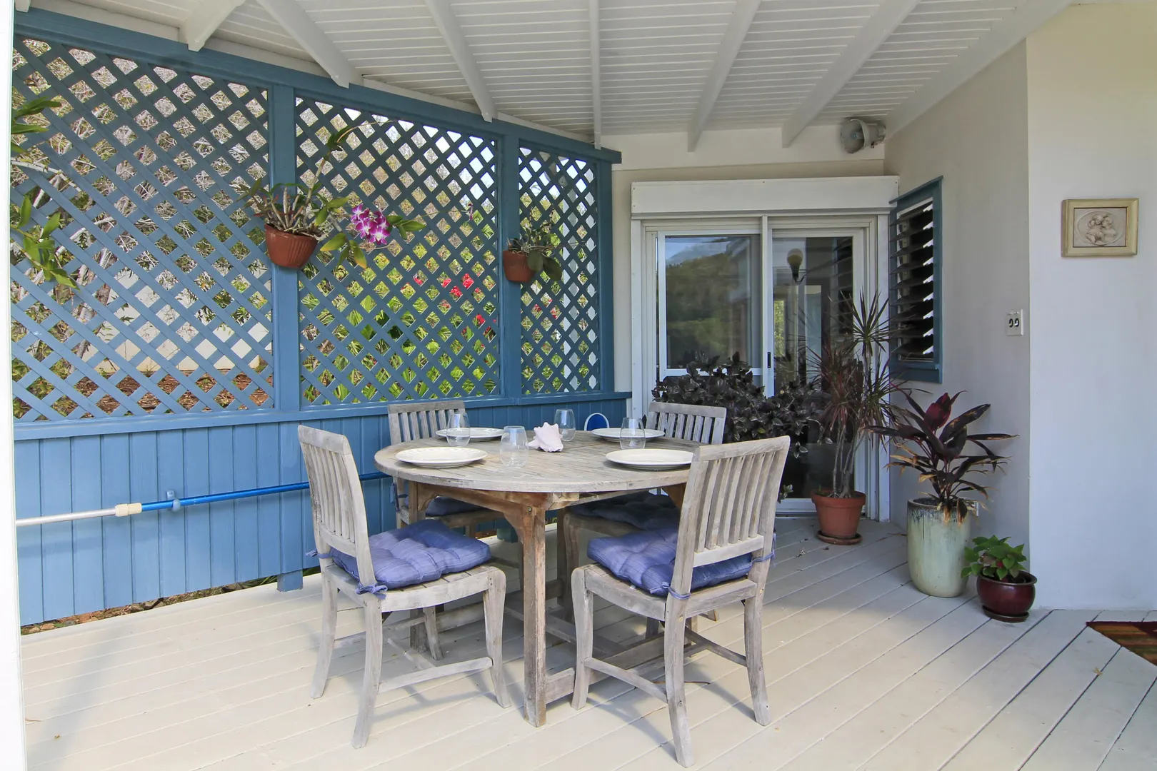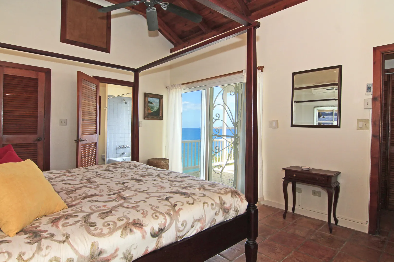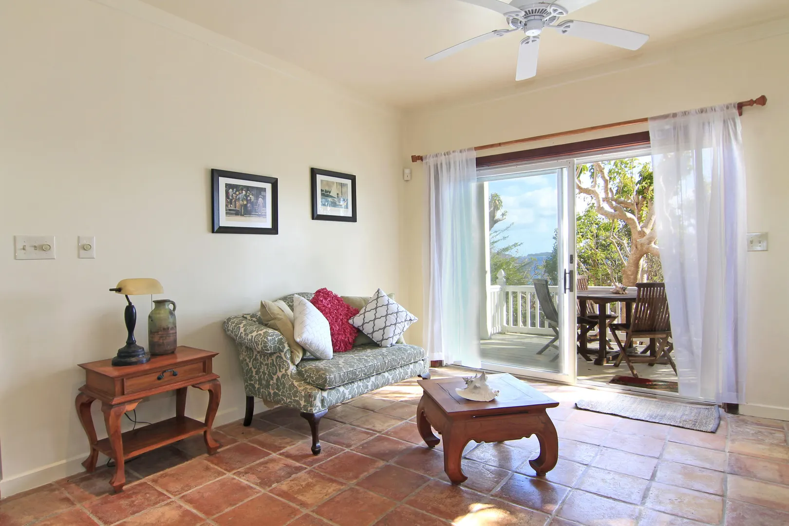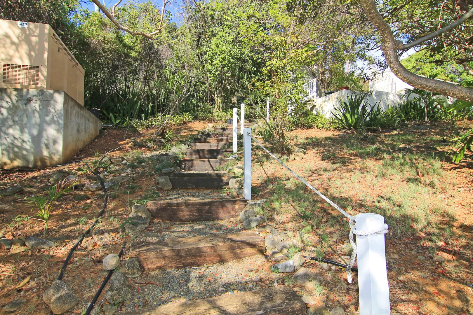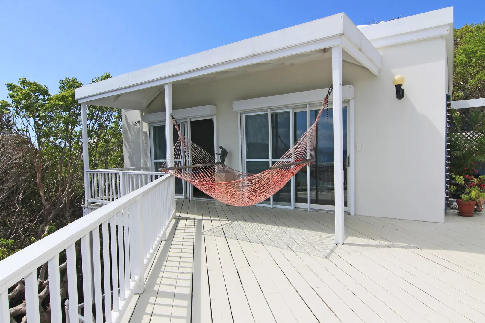 Camelot Villa-Private waterfront (beachcombers) lot with coral beach.Doug White designed home. Camelot has a fabulous gated entry onto a large deck (and pool), which separates the 2 bdrm (guest) pavilion from main house and master suite.Views of the nearby small Cays, British Virgins, St John, and boats that ply the waters of Pillsbury Sound.Large deck to enjoy sun,shade & breeze+ 1 bdrm apt down