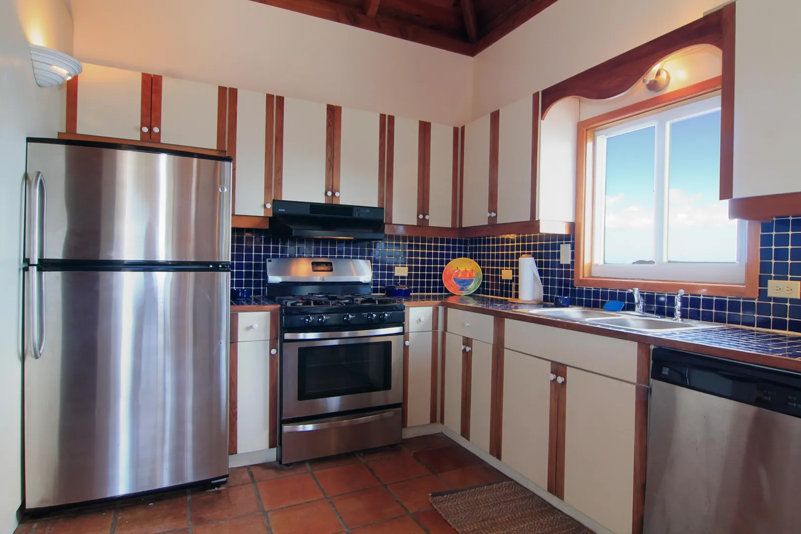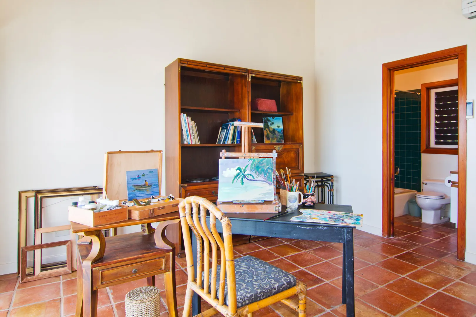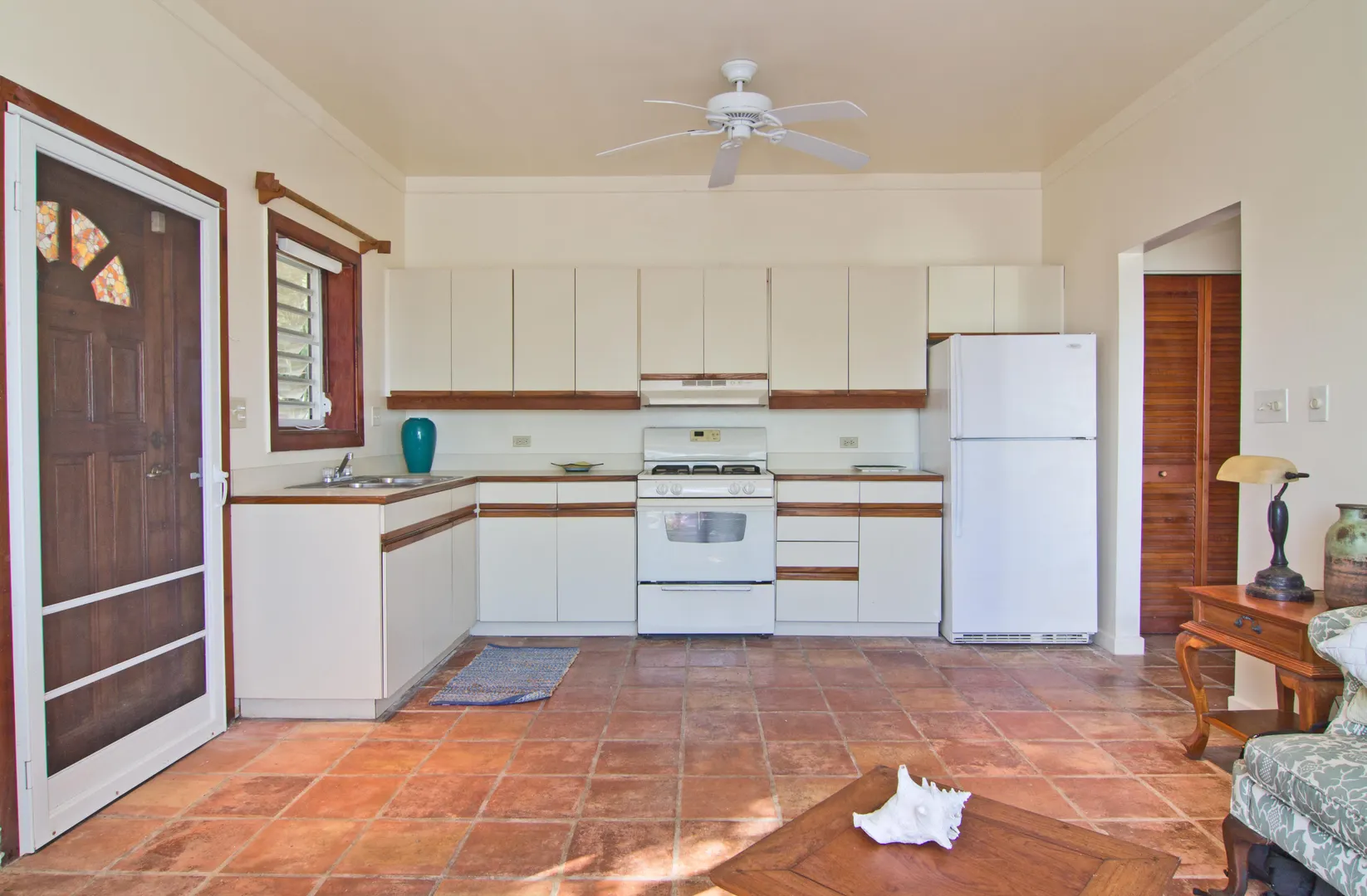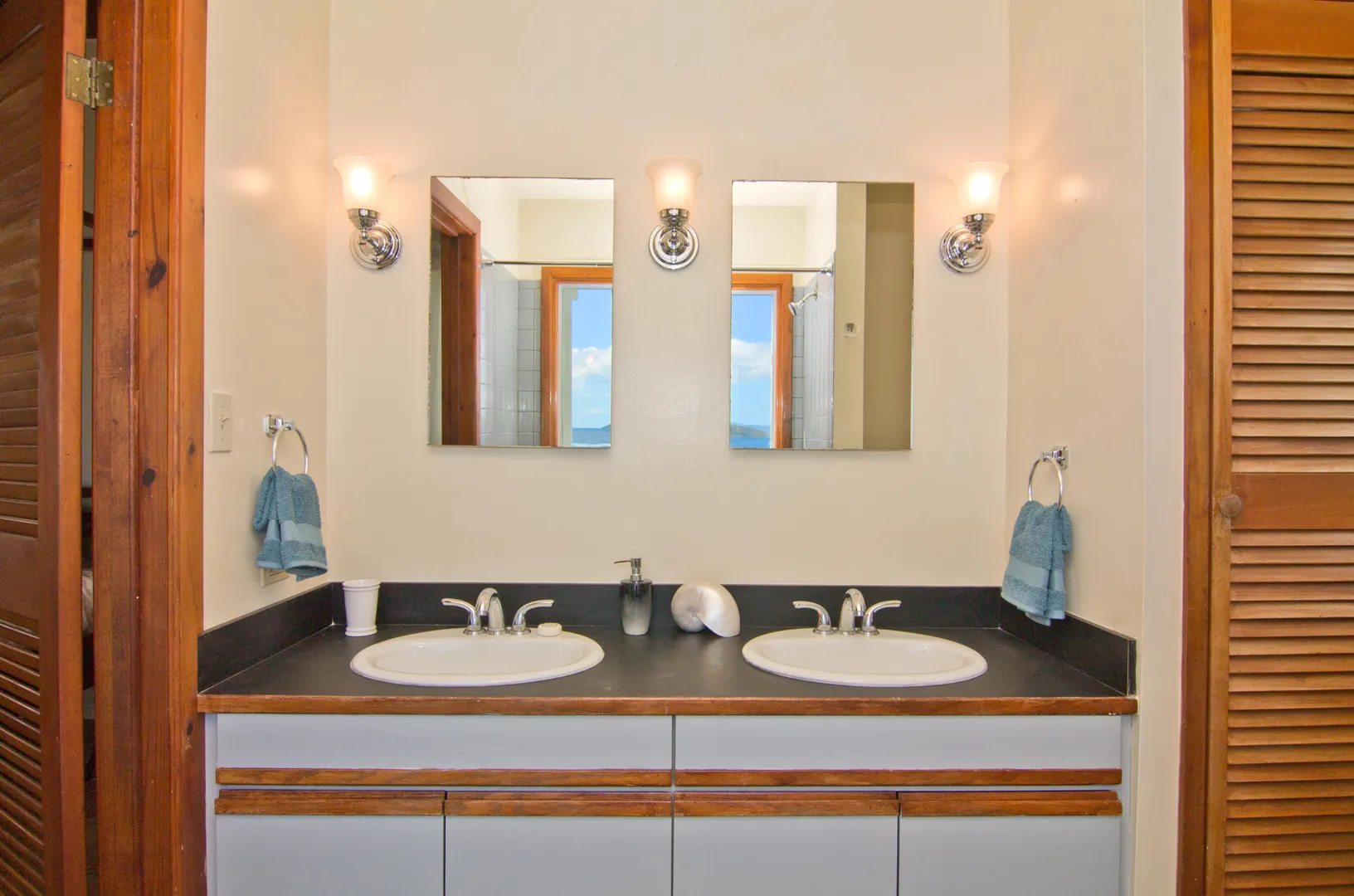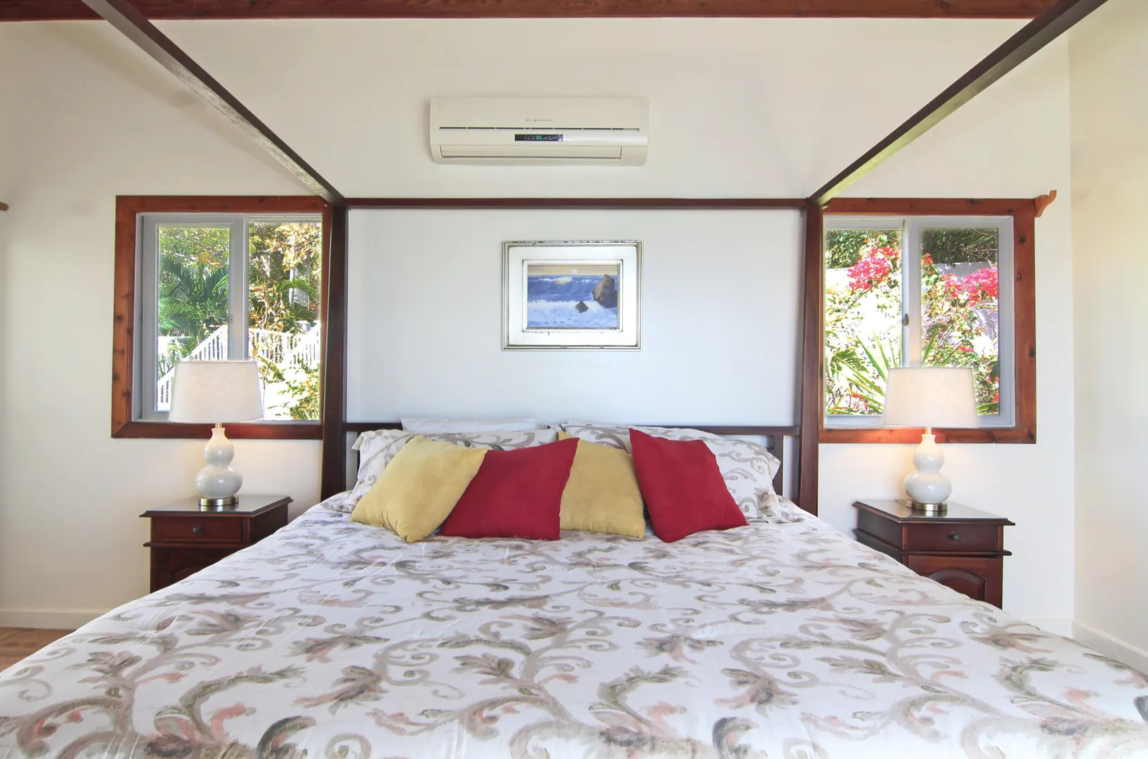 Camelot Villa-Private waterfront (beachcombers) lot with coral beach.Doug White designed home. Camelot has a fabulous gated entry onto a large deck (and pool), which separates the 2 bdrm (guest) pavilion from main house and master suite.Views of the nearby small Cays, British Virgins, St John, and boats that ply the waters of Pillsbury Sound.Large deck to enjoy sun,shade & breeze+ 1 bdrm apt down