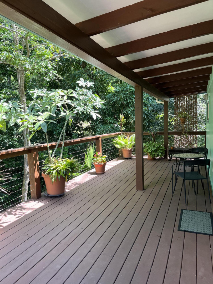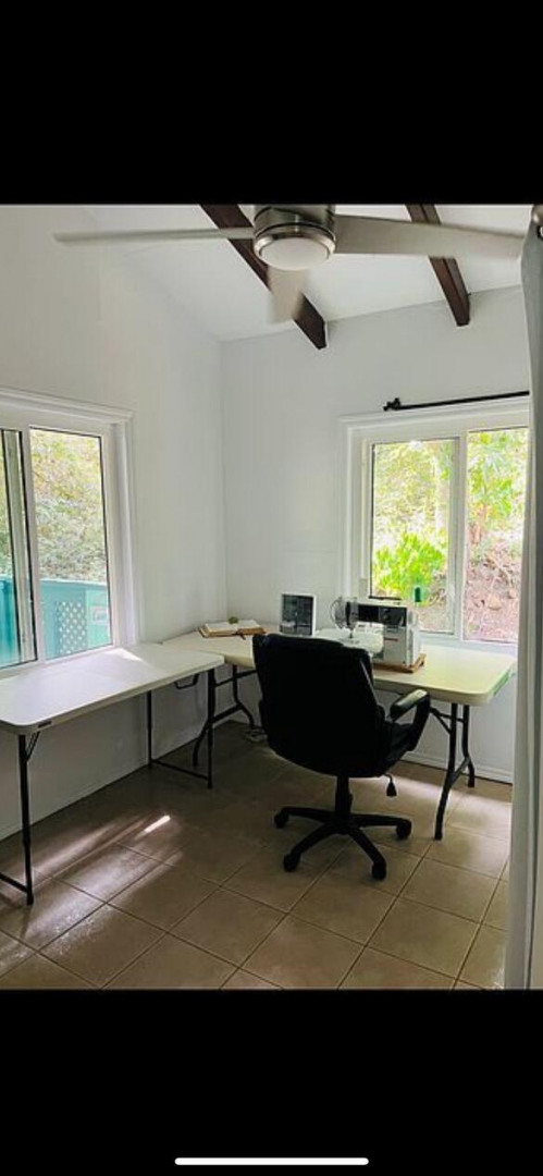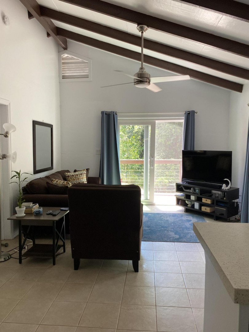 $25,000 Price drop! This sweet island cottage, just a few minutes walk to Gifft Hill school, is nestled at end of road in the valley of Gift Hill. This Charming Caribean style home, with partial wrap around decking and lush gardens, is your perfect starter home.Enjoy the fruit trees and ample space for vegetable garden and more. This home is in immaculate condition, featuring new kitchen counters and cabinets, new flooring and a lovely living room with vaulted ceiling and large sliding doors to the outdoor covered decking. The bedroom has a new AC unit with large windows overlooking the lush exterior.The second bedroom, currently used as an art room/office could also be the perfect guest bedroom with private deck outside.