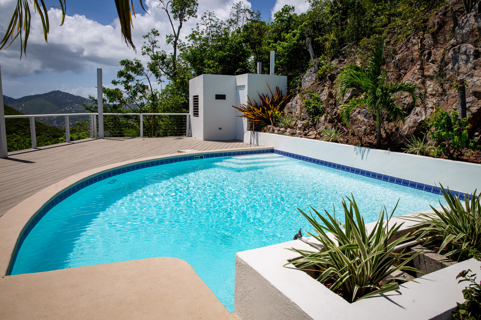 Sea Forever, This fully remodeled transitional designed home sits on over an acre of land at the top of Hawk Hill. Once you enter through the private gate of this south side three bedrooms two bath retreat, you may enjoy the views from Charlotte Amalie Harbor to Bolongo Bay while relaxing on one of the many porches or by the pool. Everything in this home is brand new; wood plank tiles, Impact windows, White shaker cabinets with quartz Countertops, Kitchen Aide appliances, pantry, a dream laundry room with front-loading washer and dryer. No need to compromise on this home, You can have it all.