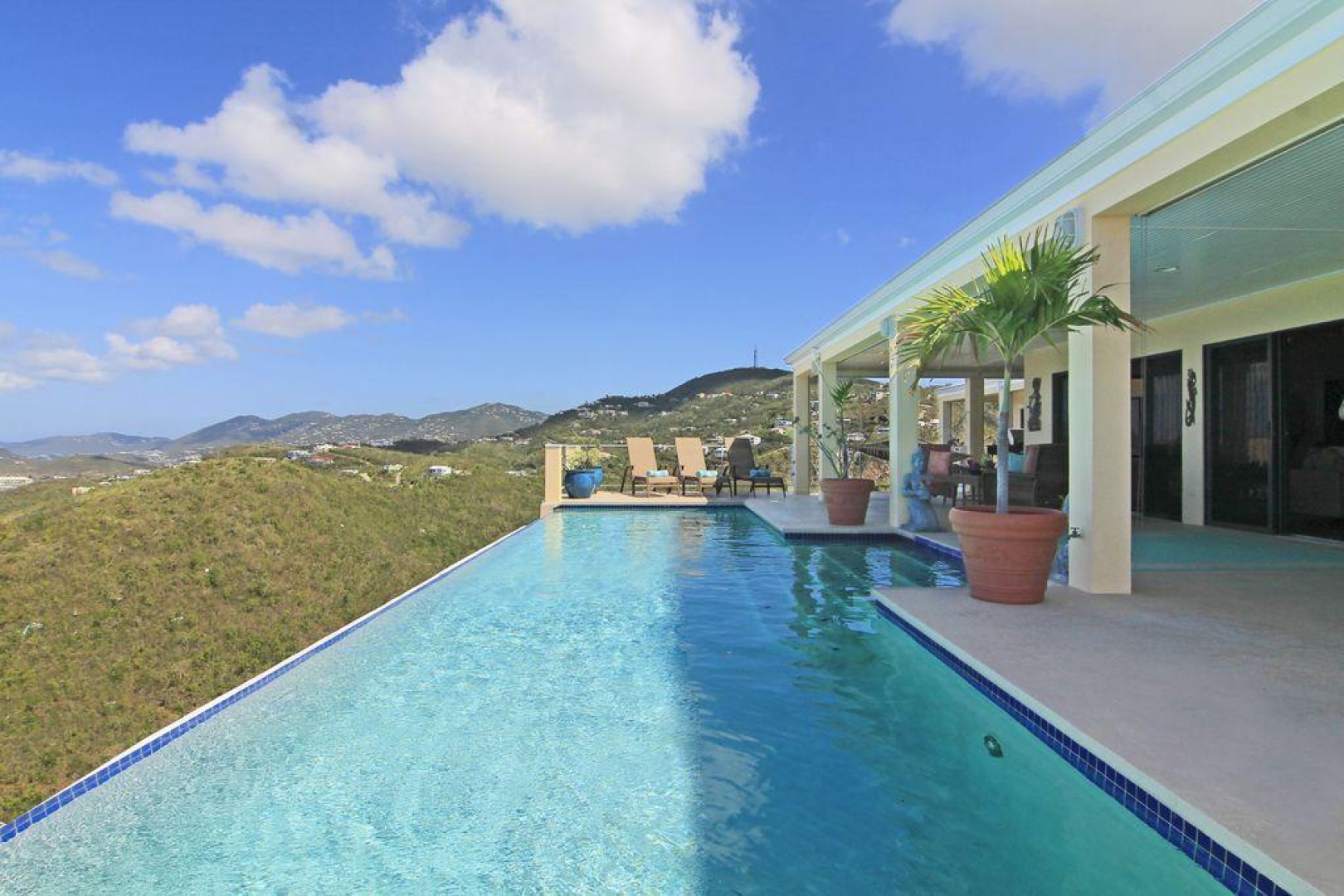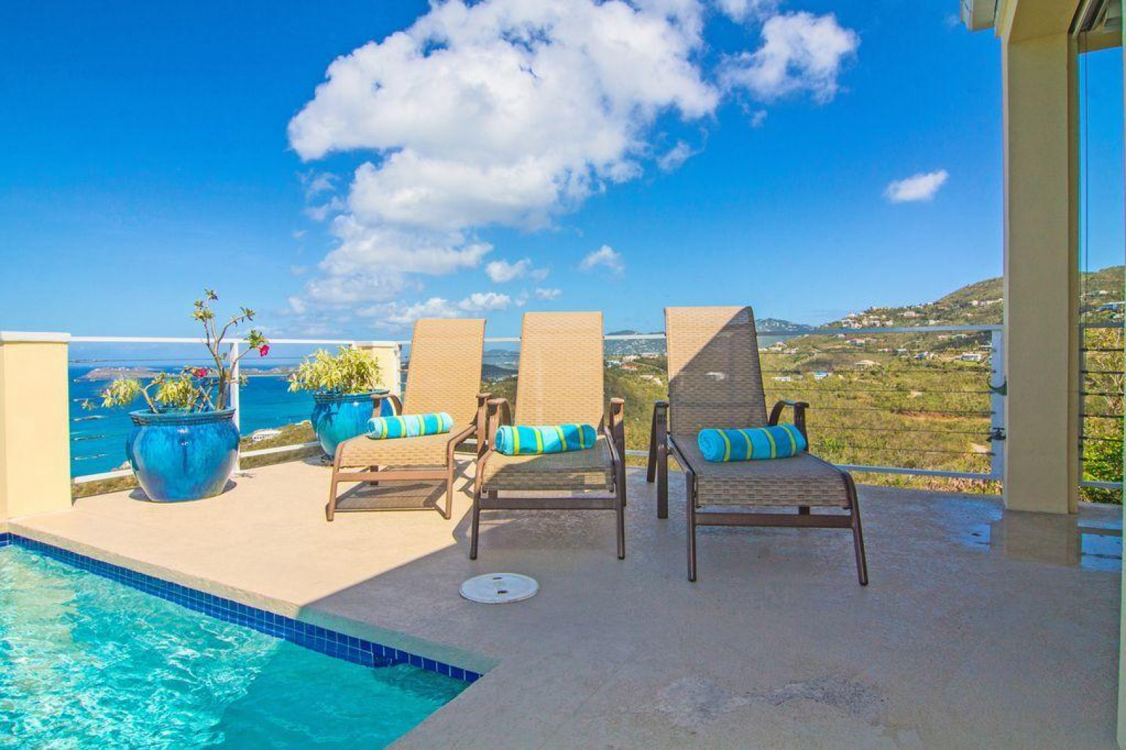 Watch the parade of the Cruise Ships from your deck at sunrise and sunset. Panoramic views. Main level-3 bedrooms, 3.5 baths, Cathedral ceilings. A two bedroom, two bath on second level. 10X40 infinity edge pool, 2 car garage w/ extensive storage, 30 KW generator, solar panels and 3 Tesla Batteries. Professional landscaping, beautifully furnished, sunset views are stunning! Main level of house is currently a vacation villa. This is a turn-key property.Please see Documents for surve..