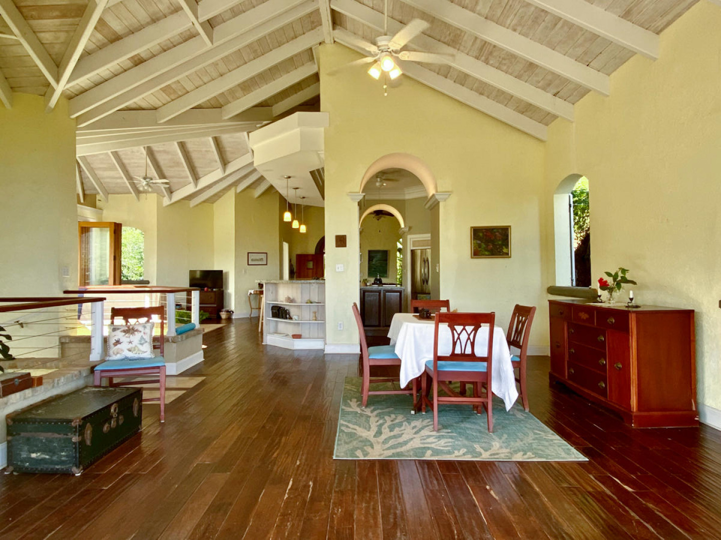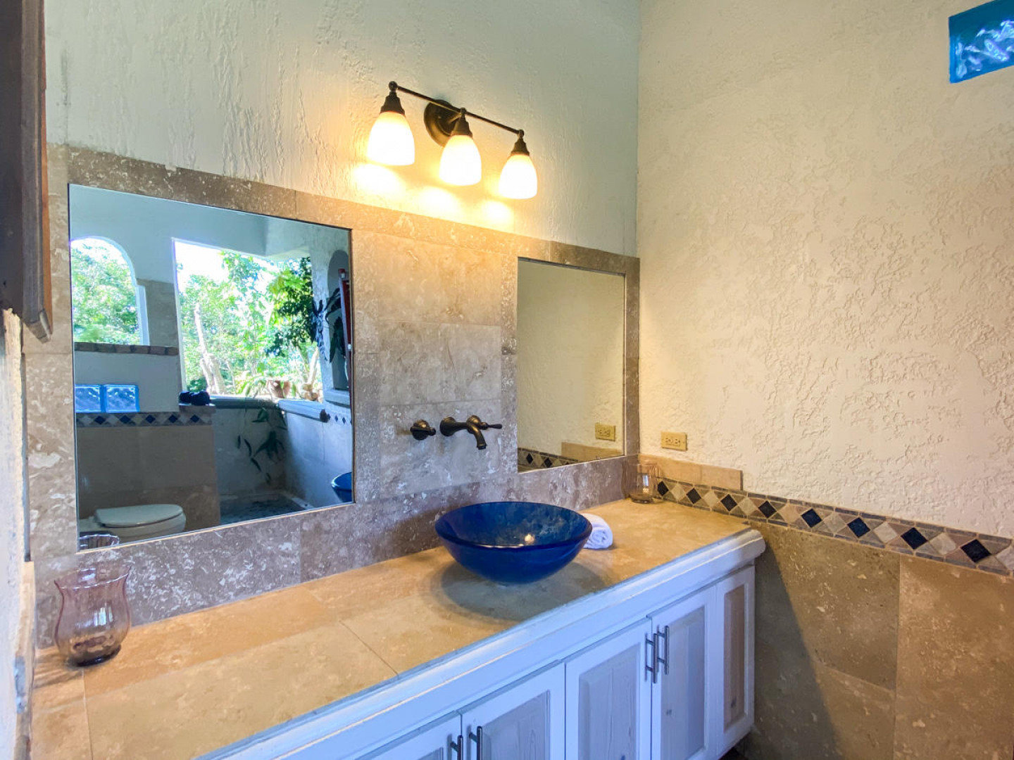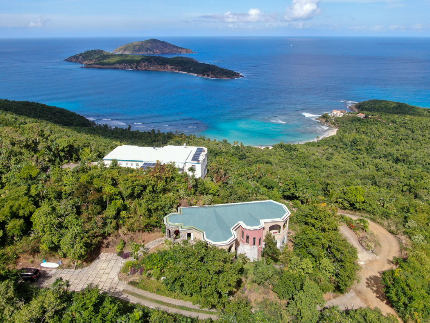 The Stone House is a dramatic 2 bedroom, 2 and half bath just a short walk from Neltjeberg Bay. This home features sweeping views of St. John and the British Virgin Islands. Hard wood teak flooring, folding glass doors, travertine tile and meticulous stone work are just a few of interior features. Sale includes plans for an additional 750 sq. ft. master suite and a one bedroom, one and a half bath caretaker cottage on the gradual remaining land. This custom built home is situated in the perfect spot to enjoy the tranquility island life has to offer.