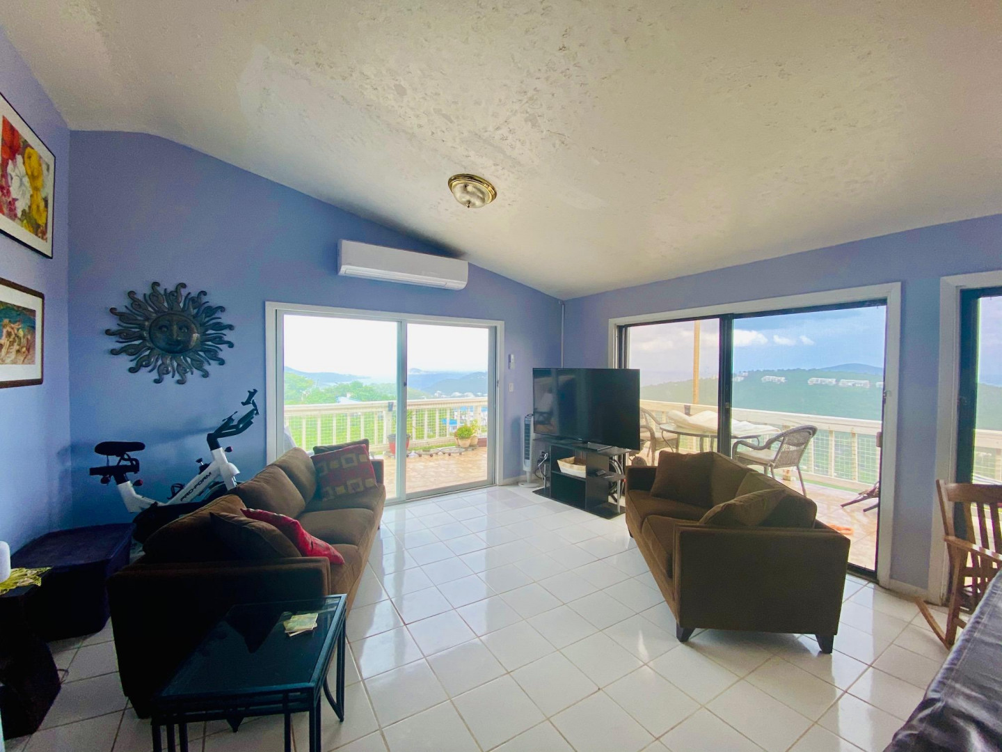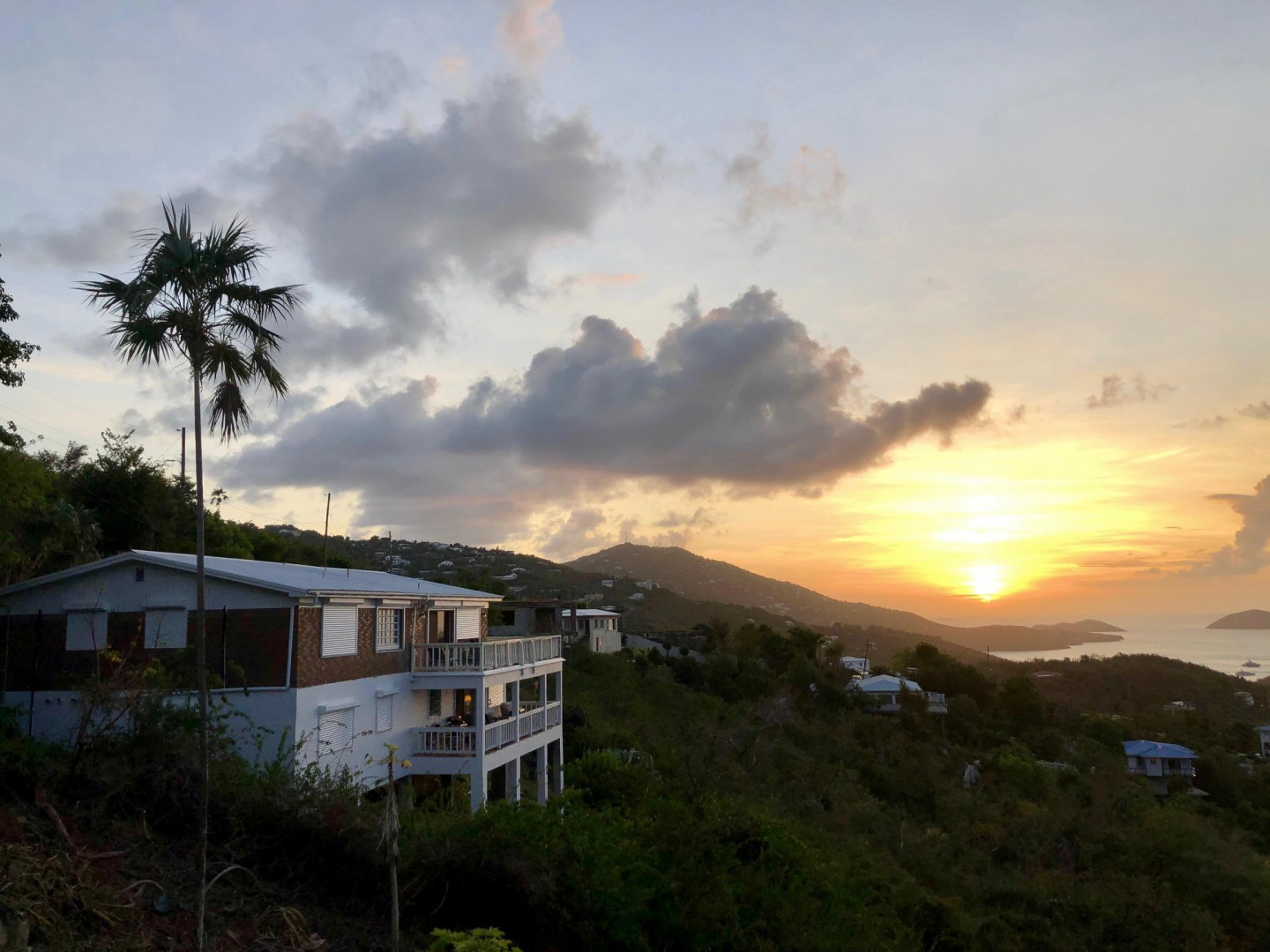 EXPANSIVE VIEWS!! Magens Bay to BVI - The homes is breezy, the bedrooms are large, the closets are large, the bathrooms are spacious, lots of windows inviting the views from each and every room in. The home sits on almost a full acre of land. Private pull through driveway that fits lots of cars. Beautiful outdoor space in nature to enjoy. The balcony wraps around the house. The apartment below, is beyond spacious, offering an opportunity to turn it from a 1 to a 2 bedroom apt. The apt. has a LARGE balcony that offers the same bright views as the upper main house. The rental has always been occupied. This home is so wonderful! Located on a quite dead end road, with very few neighbors. Centrally located on island. Brand new roll down hurricane shutters through out the house.