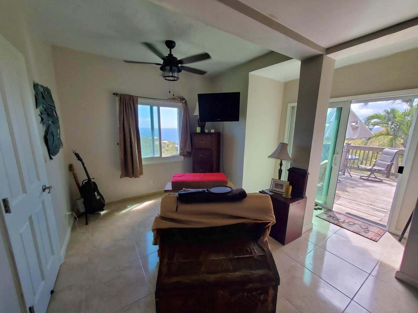 A work in progress. Wonderful views and HUGE porches facing the Caribbean Sea in this nice area close to town and only 15 minutes to Red Hook. 2 unit home on almost an acre. The main house 2 bed 2 bath has been completely remodeled and is move in ready. The spiral staircase has been removed and closed over so the middle level is separate but has lots of space with an additional 2 bedrooms and 2 bathrooms that still needs some work. There is a large laundry/storage area on this middle level that can be accessed by all three floors. The lower small 1 bedroom apartment has been remodeled. A GREAT house to live in and receive rental income! LOTS of porch space (over 1000sf) to enjoy the beautiful weather. New roof and all new appliances.