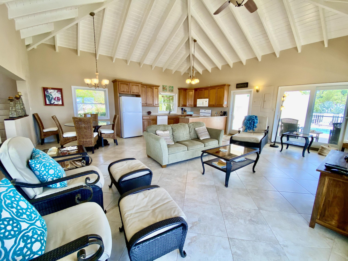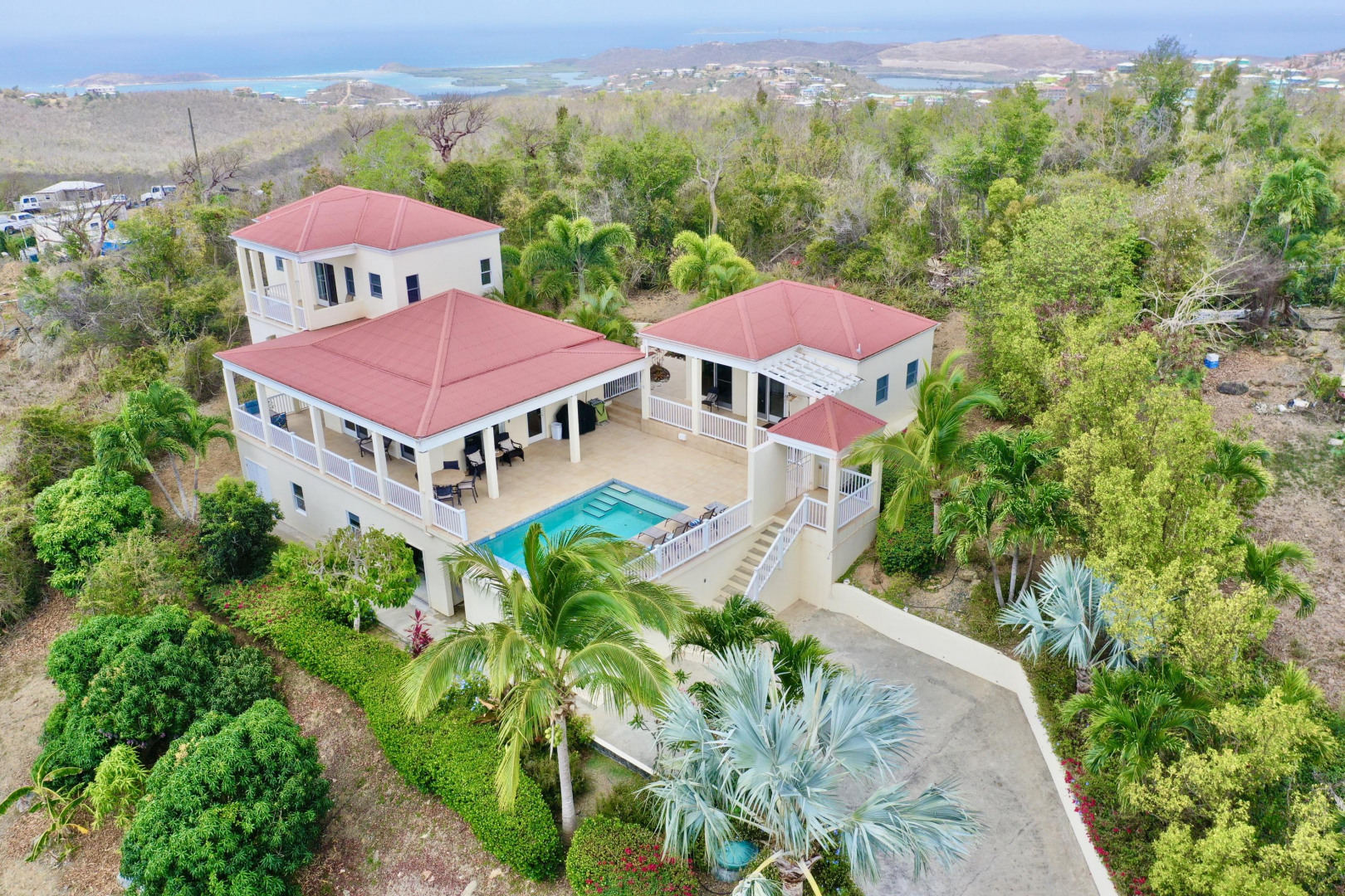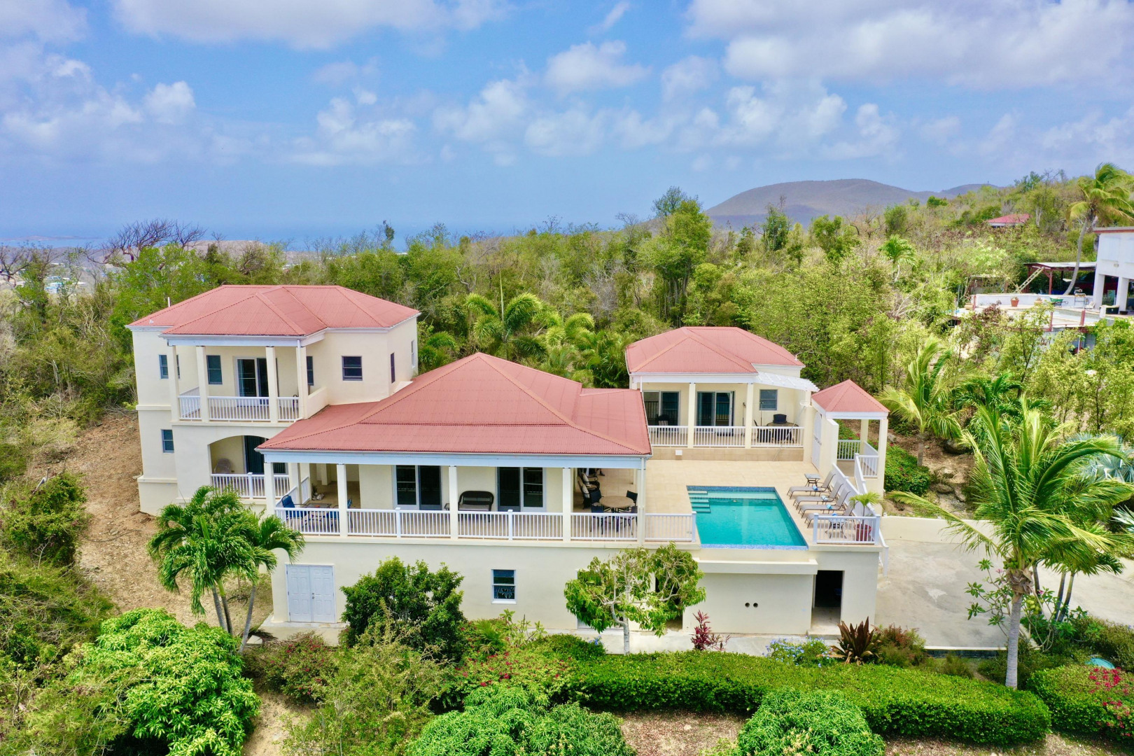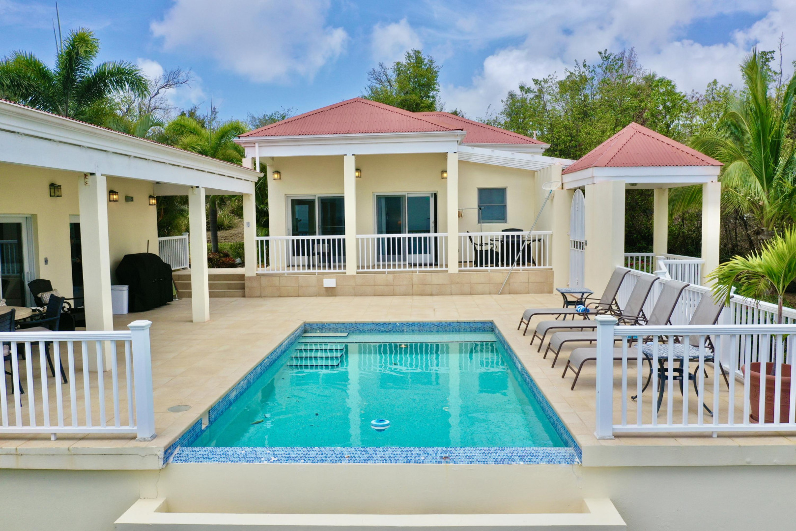 Solid 3 bedroom home that withstood 2 Cat 5 hurricanes with no problems. 2 bedrooms in the main house and another bedroom by the pool. Home has been used as a vacation villa for years. Situated at the top of Emerald Hill this house has the down island BVI view. Pool deck has a lot of room for entertaining. Just minutes to Smith Bay beach, Red Hook, ferry to St. John, shopping, restaurants and more.