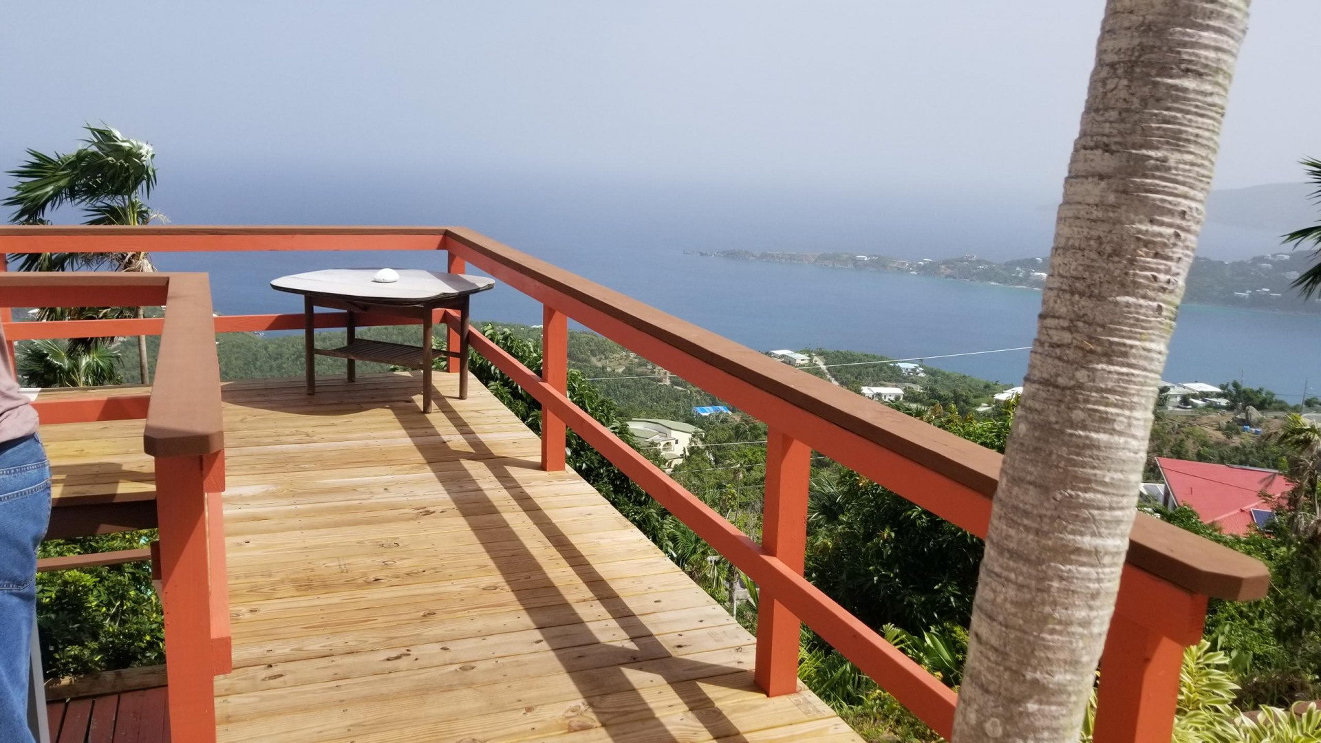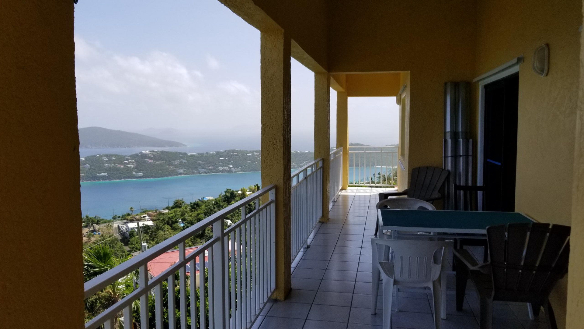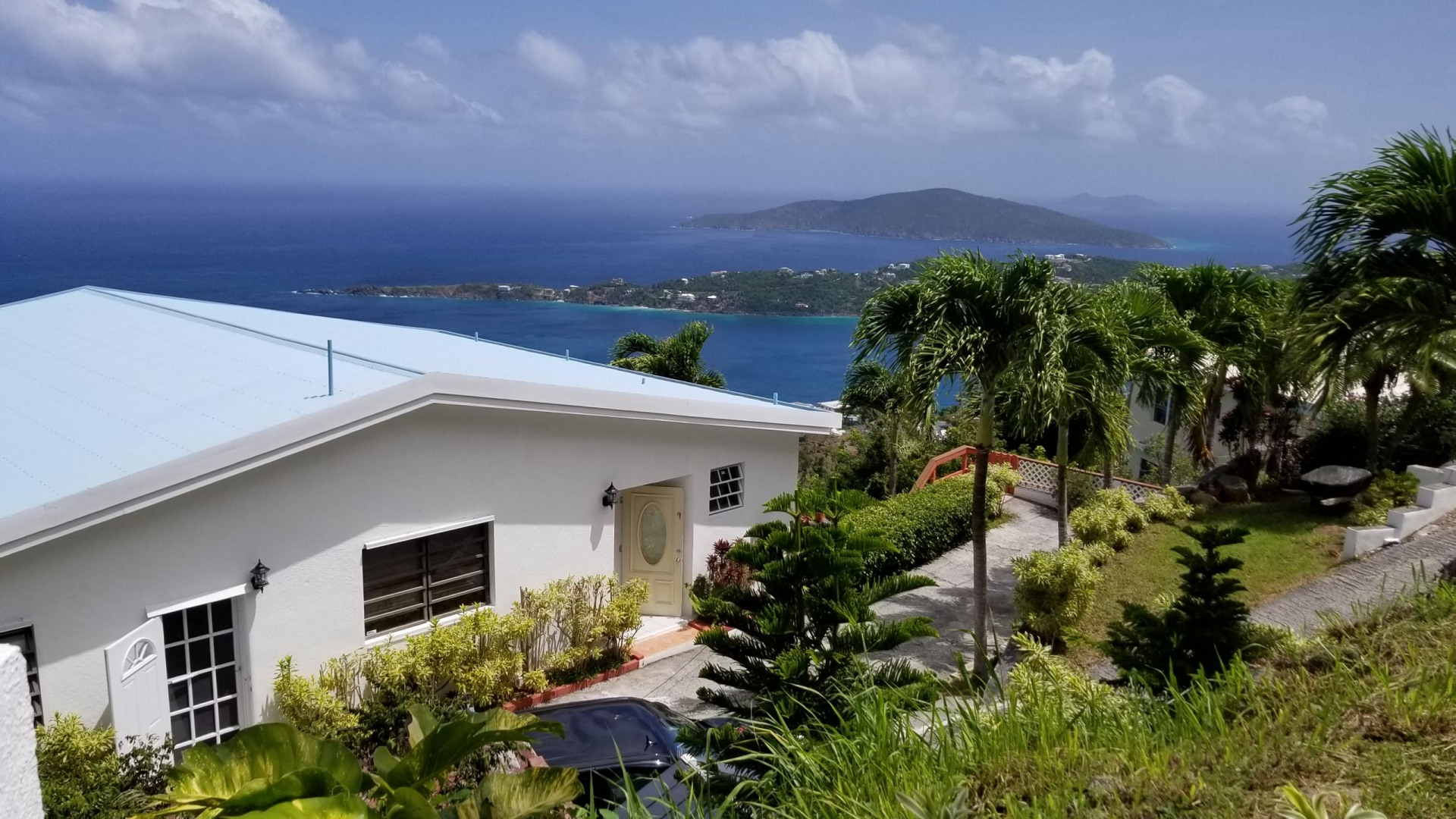 First time on the market for this lovingly cared for multi family home with great rental history overlooking fantastic views from Hull Bay Beach all the way to Magen's Bay Beach and more! only 1 deck was damaged in the hurricanes; the house is in near perfect condition. Main level with 3 bedrooms, 2 bath, middle level with 2 bedrooms, 1 bath, and accessory unit/storage downstairs. Great parking, circular driveway, large masonry home with lush landscaping, fruit trees and flowering bushes. A must see to be appreciated.