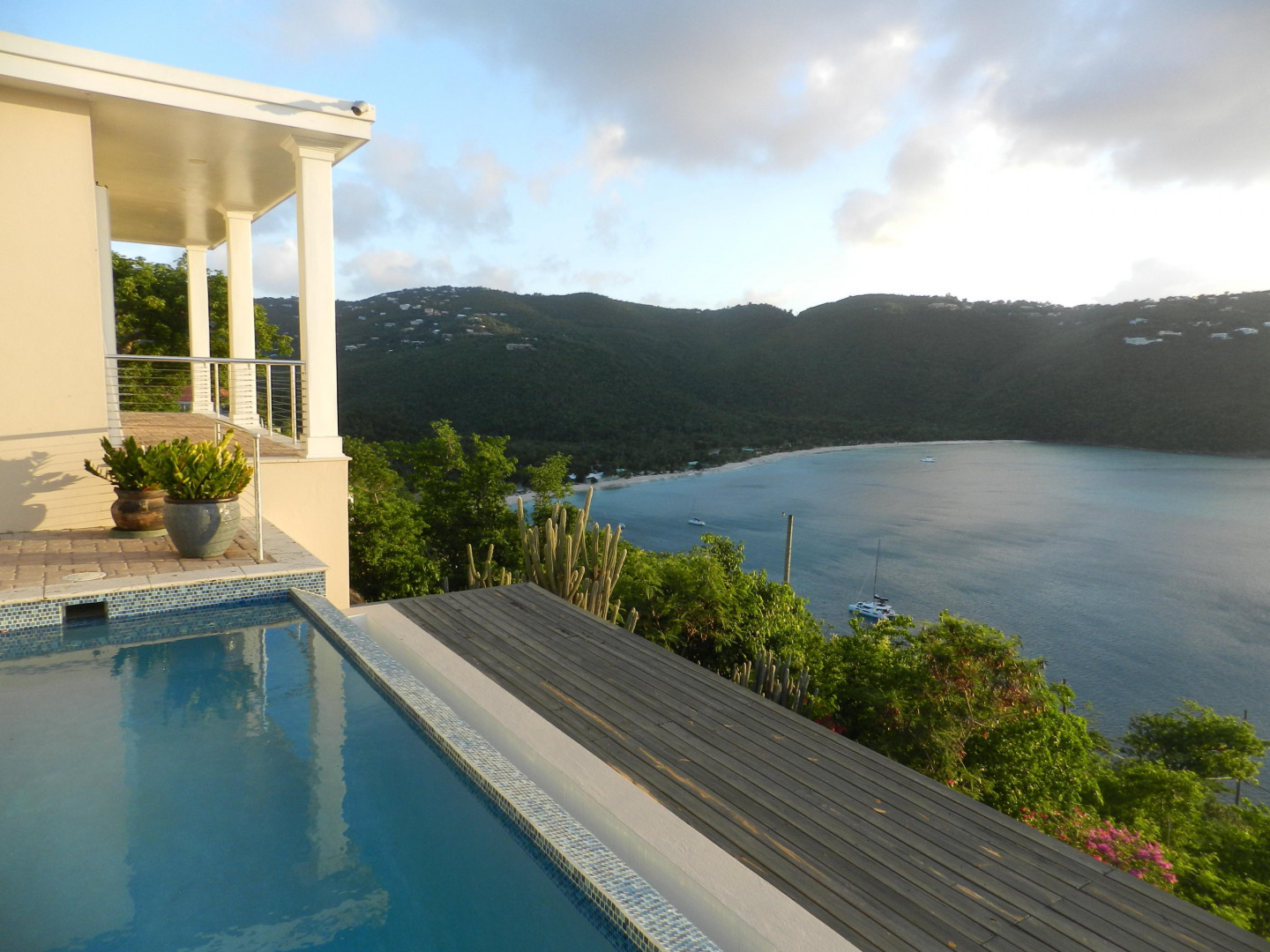 ISLAND ESCAPE VILLA, in quiet, Gated Dove Way, Peterborg, enjoys rare crest lot location with double view of Magens Bay and Down island. This coveted site features sunrises and sunsets. Extra attached parcel included to ensure privacy. Finely Constructed this 6-BR villa, enjoys walk in level, and stunning views from every room. Spacious, bright glass fronted great room, opens to modern generous open kitchen, with professional appliances. Unusually large master BR suite is privately separated from living level, with office room, foyer, and walk in Closet. 4 upstairs Bedrooms enjoy sweeping views. Expansive decks surround the pool, overlooking the tranquil Magens Bay Beach. Huge parking area, large generator, compliment the obvious entertainment potential of this exceptional offering.