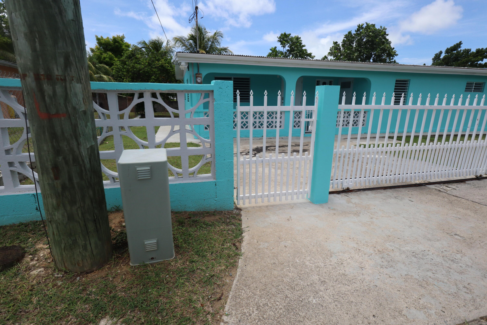 Beautifully renovated 4 bed, 2 bath home in a central location, close to shopping, schools, and everyday conveniences. Features include granite countertops, split A/Cs, and a covered porch. Gated driveway with automatic gate, storage and laundry room, plus underground fiber-optic internet. Spacious fenced yard with tropical curb appeal and move-in ready for island living!