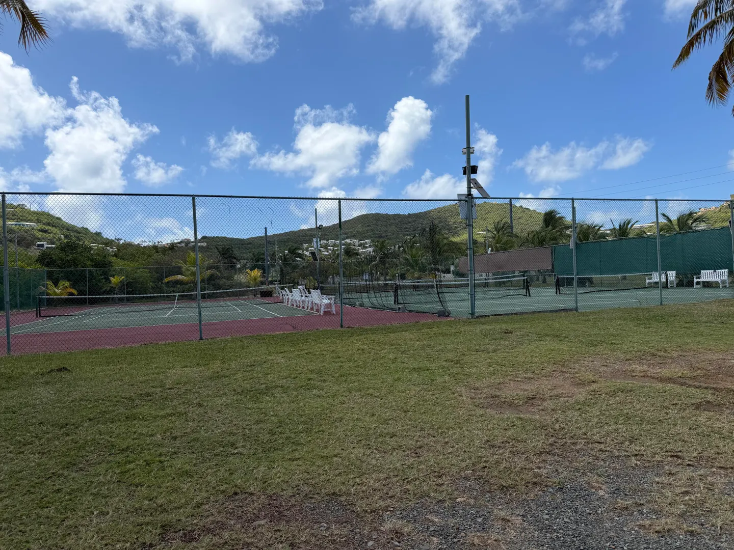 Welcome to Chez Nous! Meticulously maintained 2-bed, 2-bath expertly converted condo tucked into the east end hillside of a gated community. Enjoy 24-hour security, on-site office, and resort-style amenities including a 9-hole golf course, tennis & pickleball courts--all with the beach right across the street. Inside you'll find a custom kitchen with built-ins, propane cooktop, dishwasher, W/D, ceiling fans, split and window A/C units, whole-condo surge protector, and an 8100 kW generator. Extra outdoor grilling space located off the patio with the 12x17 canopy! Offered fully furnished and equipped--just bring your suitcase!