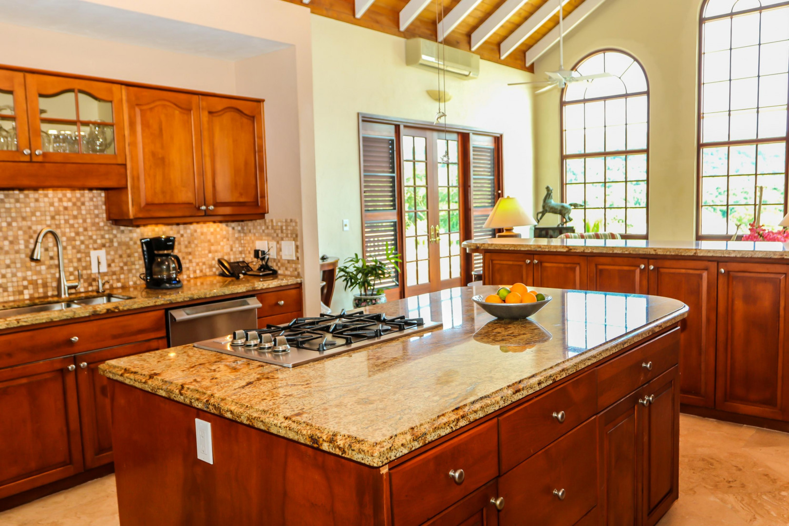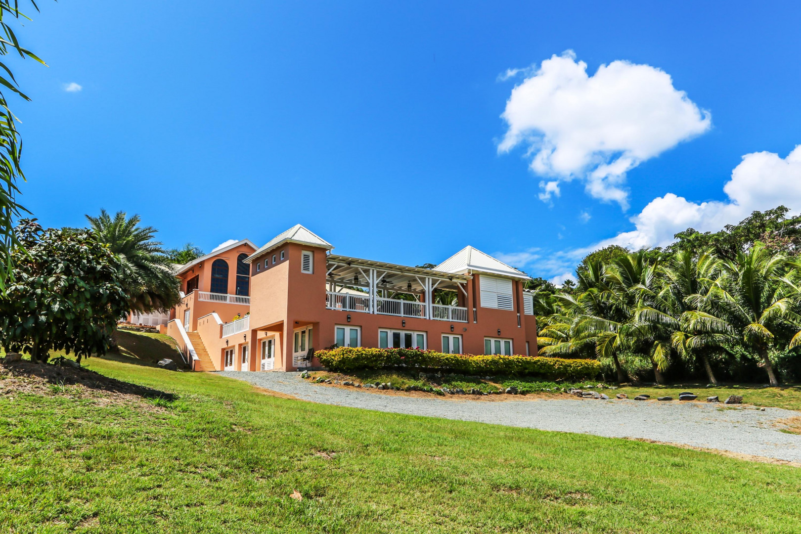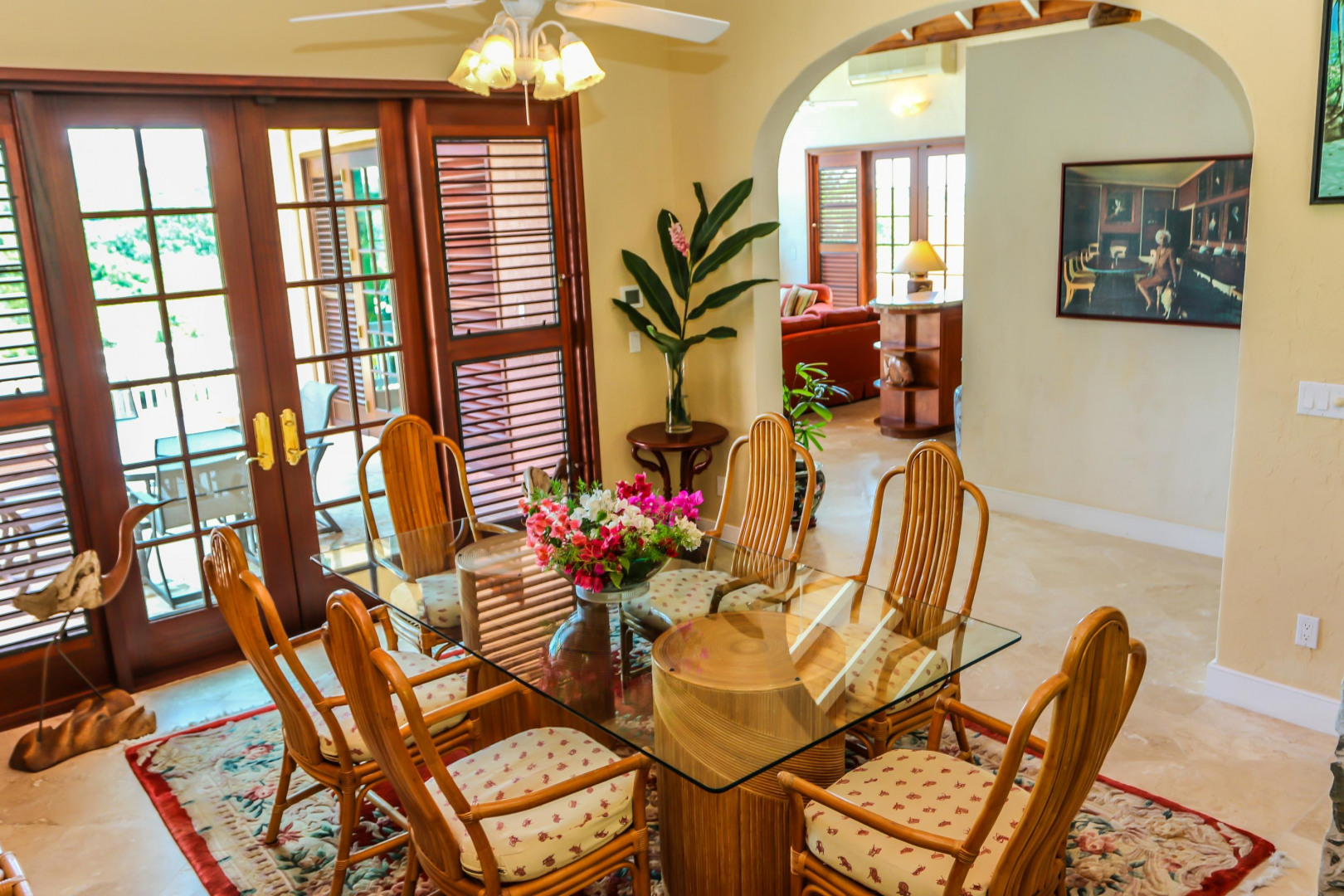 Las Palmas located in gated Carambola on 2.36 tropically landscaped acres is a pristine home encompassing 3 bedrooms ensuite, office, gym & large apartment. Travertine tiles throughout, beautiful outdoor summer kitchen & media area, 36ft pool and spa. Great room has 19 ft cathedral ceilings with gorgeous Mahogany windows, solar powered, well, generator, all next to Robert Trent Jones golf course!Las Palmas is an exquisite home; some of the highlights are: • 2011 installed all new custom mahogany window doors and louvers. The glass is 7/16" thick for hurricane resistance • All 3 bedrooms have custom closet built- ins made locally by Andre McBean of local Mahogany • 2013 travertine tile installed on the diagonal throughout the main house • Gourmet kitchen made by Quality Cabinets of Cherry with granite counter tops, sub-zero refrigerator and freezer and all stainless steel appliances • Outdoor area is as approximately 4,000 sq. feet, and done in coral stone tile; the deck, summer kitchen, media area, pool and apartment were completed in 2010 • At the pool deck there is a full summer kitchen with grill, sinks and cooler and a TV retractable screen painted by artist Marie Graci. • Full bath with shower at pool level • Apartment at lowest level is approximately 800 sq. ft. one bedroom apartment with open concept kitchen, 3 fans, A/C, washer/dryer and is also connected to Solar/backup system • 2010 Solar system phase I was completed • 2014 Solar Phase II was completed producing 15 KW approximately 2000 KW per month, a net metering system, it has battery backup with a generator to recharge the batteries if needed. • 2015 new septic system installed • The water system contains 2 cisterns. One cistern collects rain water and holds approximately 30,000 gallons. The smaller cistern holds 15,000 gallons. The water in the smaller cistern holds water that comes from a well on the property after it has gone through a reverse osmosis system. It is an automatic system that creates RO water on an as needed basis. • The house uses a recirculation system that avoids wasting water while waiting for hot water. • There is abundant spaces at the lower level of the home, providing a gym, storage, a workshop and a garage. • Standing seam metal roof • Alarm system • Lower level has a separate gated entry for apartment privacy and or service providers • Community pool, tennis courts and Robert Trent Jones Championship golf course all in close proximity • The property is beautifully landscaped with drip irrigation and there are numerous native fruit trees including bananas, lime, coconut, sour sop, pineapple, avocado and papaya