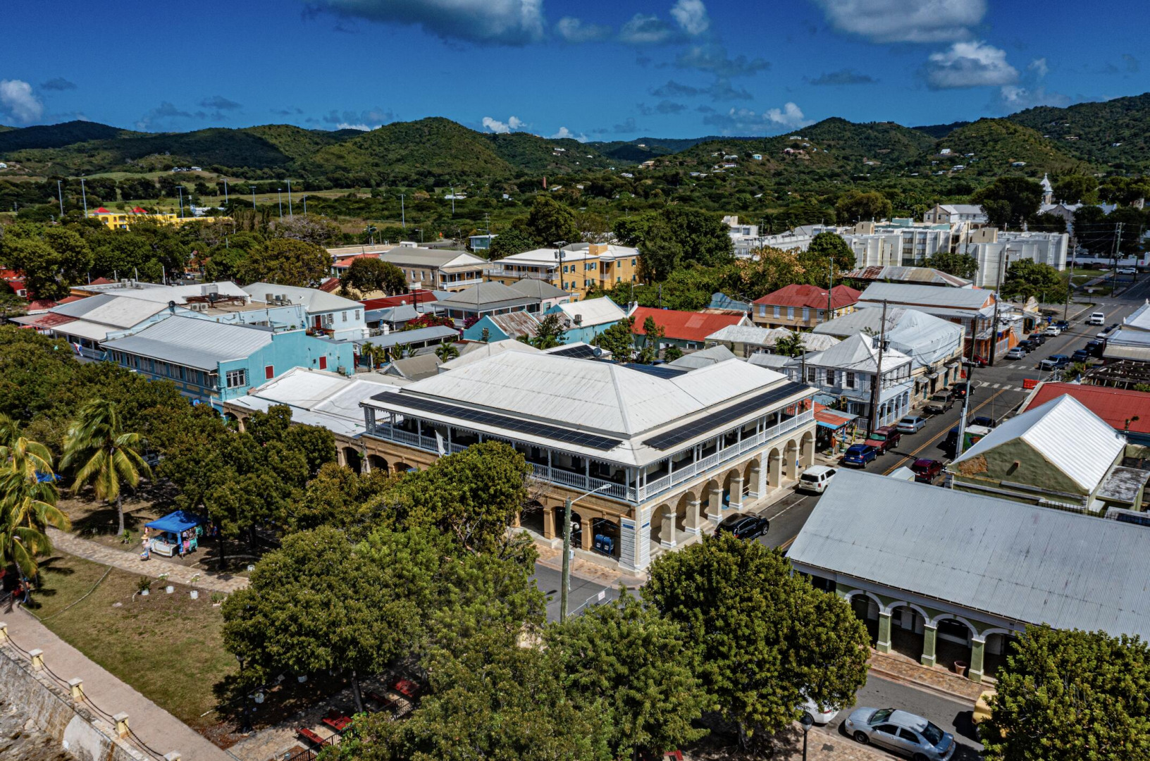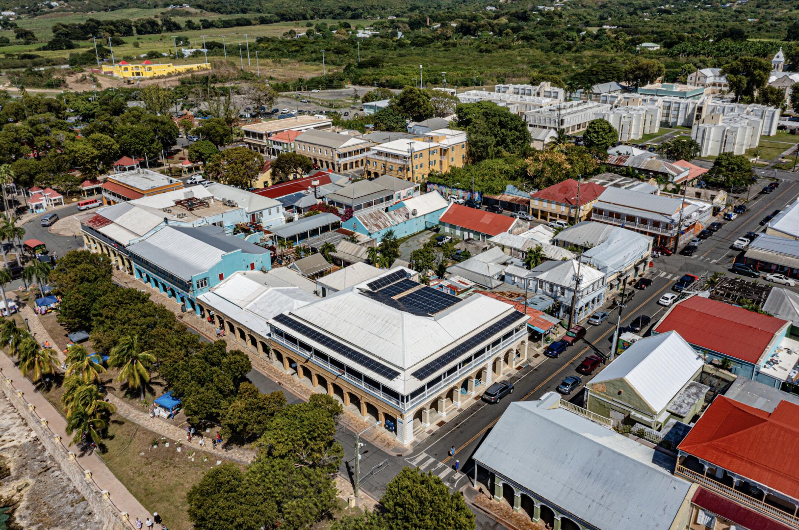 Located on the waterfront in historic Frederiksted, this versatile property offers prime commercial potential and comes with solar and a large generator. Fully renovated, the upper level features modern office spaces and an apartment, all complemented by a charming wraparound gallery with stunning views of the Caribbean Sea. Below, an updated space currently operates as a laboratory, with an adjacent expansive and high-ceilinged area ideal for retail, restaurant, or hospitality use. Positioned along the vibrant Strand Street, this property presents endless possibilities, from boutique hotel conversion to a dynamic mixed-use space, all within walking distance to beaches, restaurants, and the iconic Frederiksted Pier. The US Virgin Islands offers advantageous tax benefits to US companies.This exceptional commercial property in the heart of historic Frederiksted presents a rare opportunity to own a versatile, energy-efficient space in a prime waterfront location. Designed to accommodate a variety of business ventures, this building offers high-end office spaces, a modern laboratory, and expansive open commercial areas with endless possibilities.