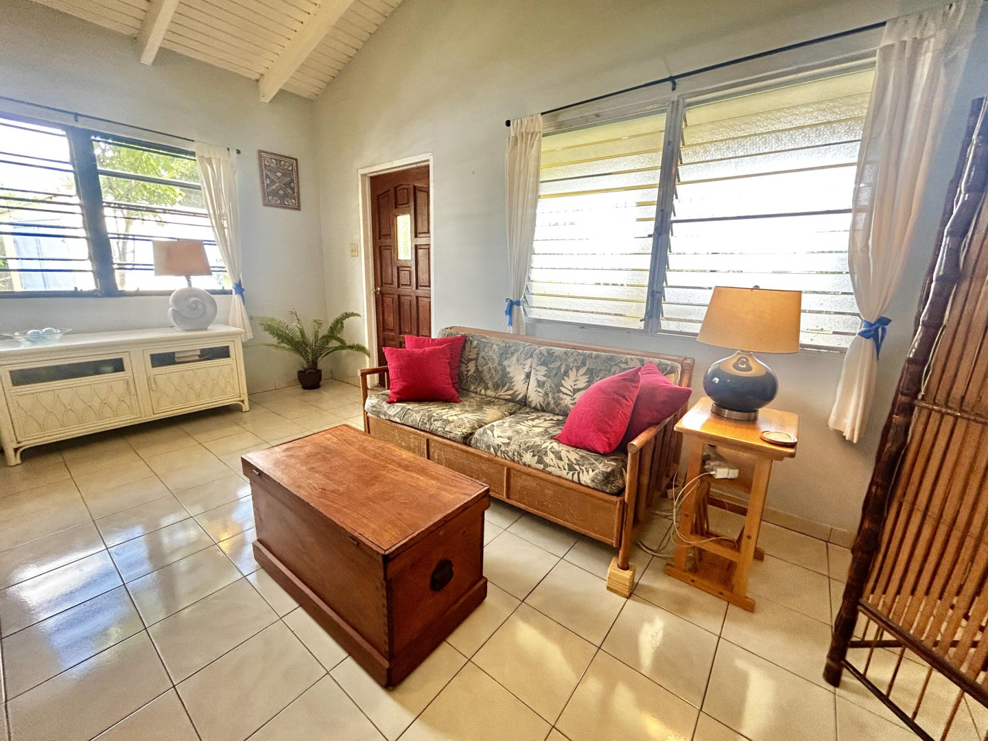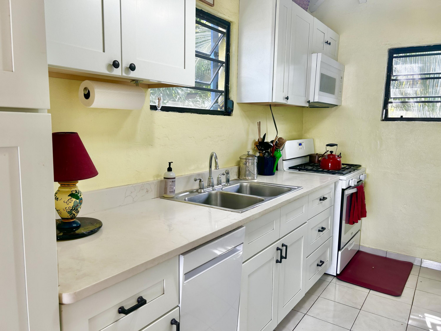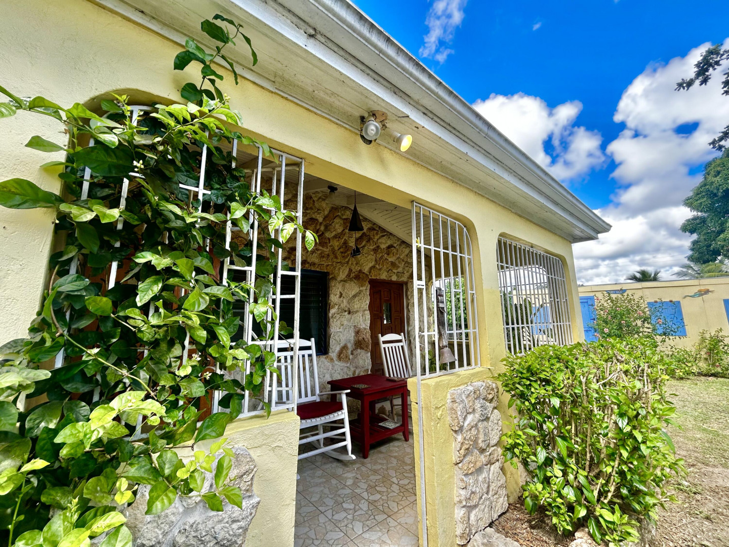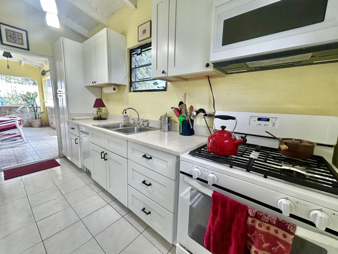 Mid Island Oasis. So sweet, so serene in this cozy and solid 2 bedroom/1 bath home with a new galley style kitchen. Quartz countertop, wood cabinets, gas stove, petite dishwasher, washer and dryer, 5.5 kw gas generator. Comfy, secure gallery with cooling tropical breezes. Fully fenced, perfect for pets. Delightful relaxation corner with shade and sitting area and included picnic table. Loads of tropical plantings and fruit trees. Detached workshop/storage.