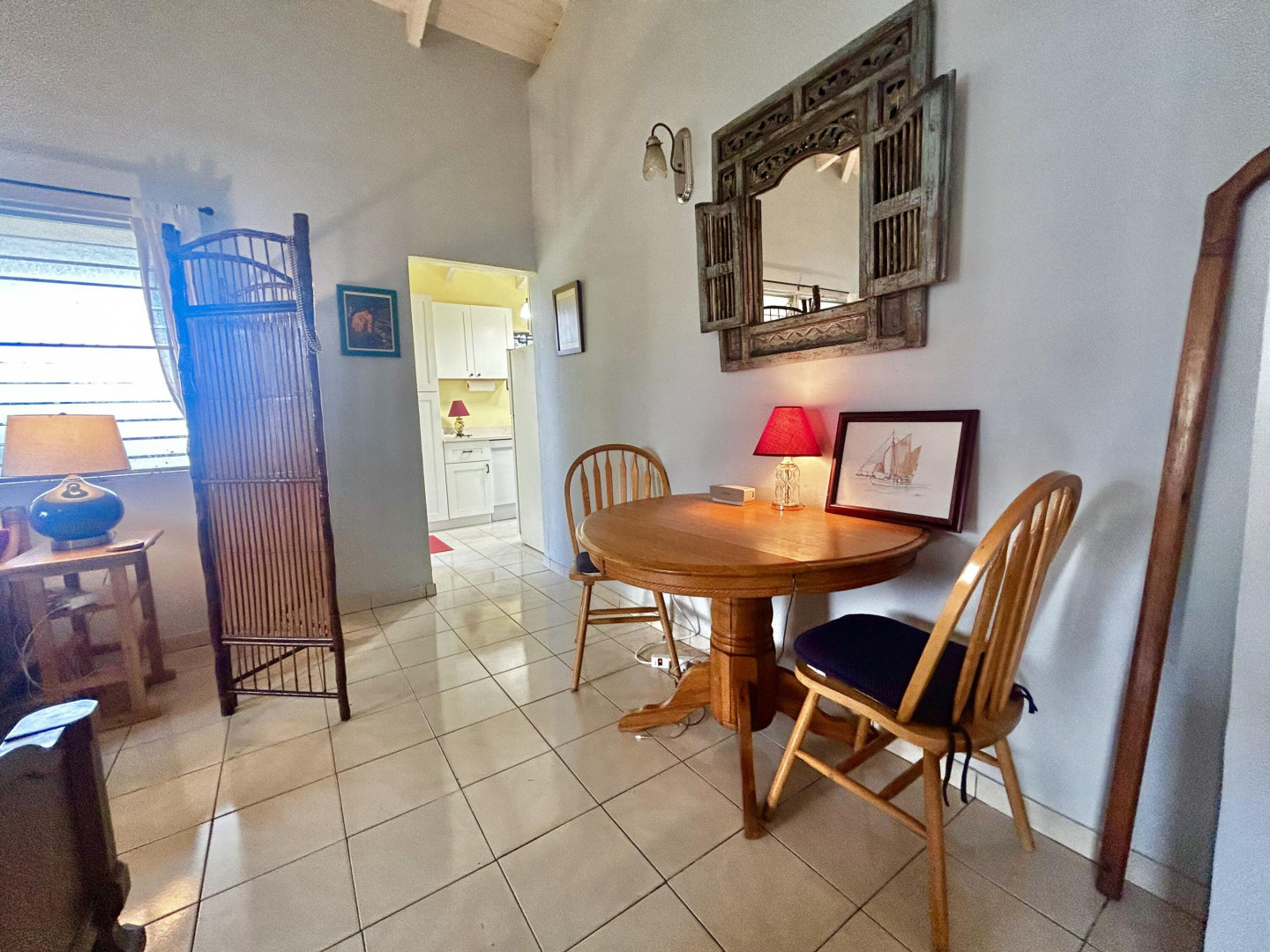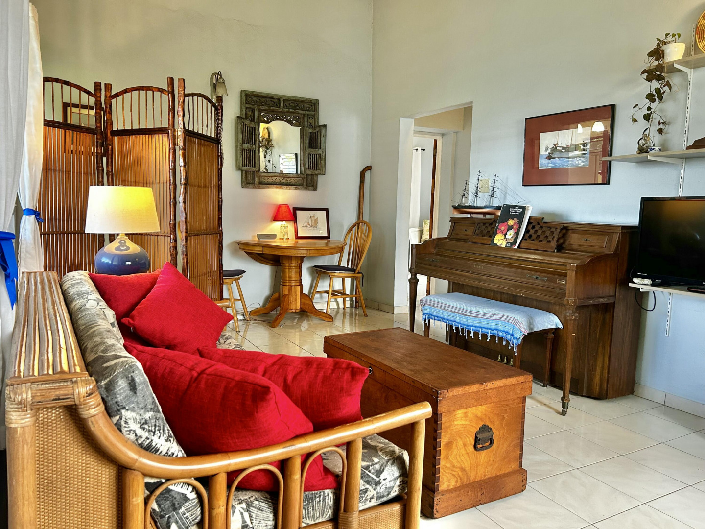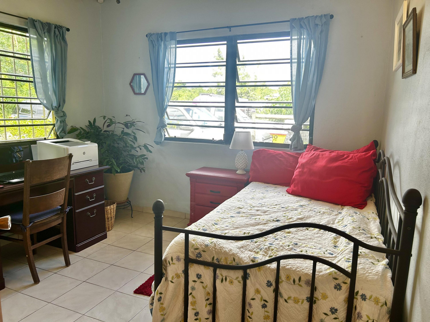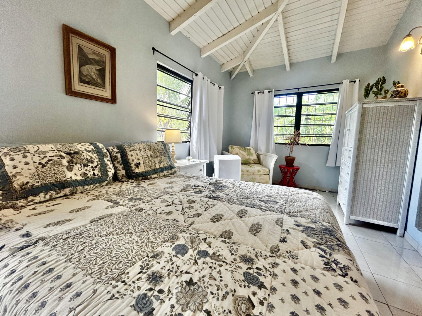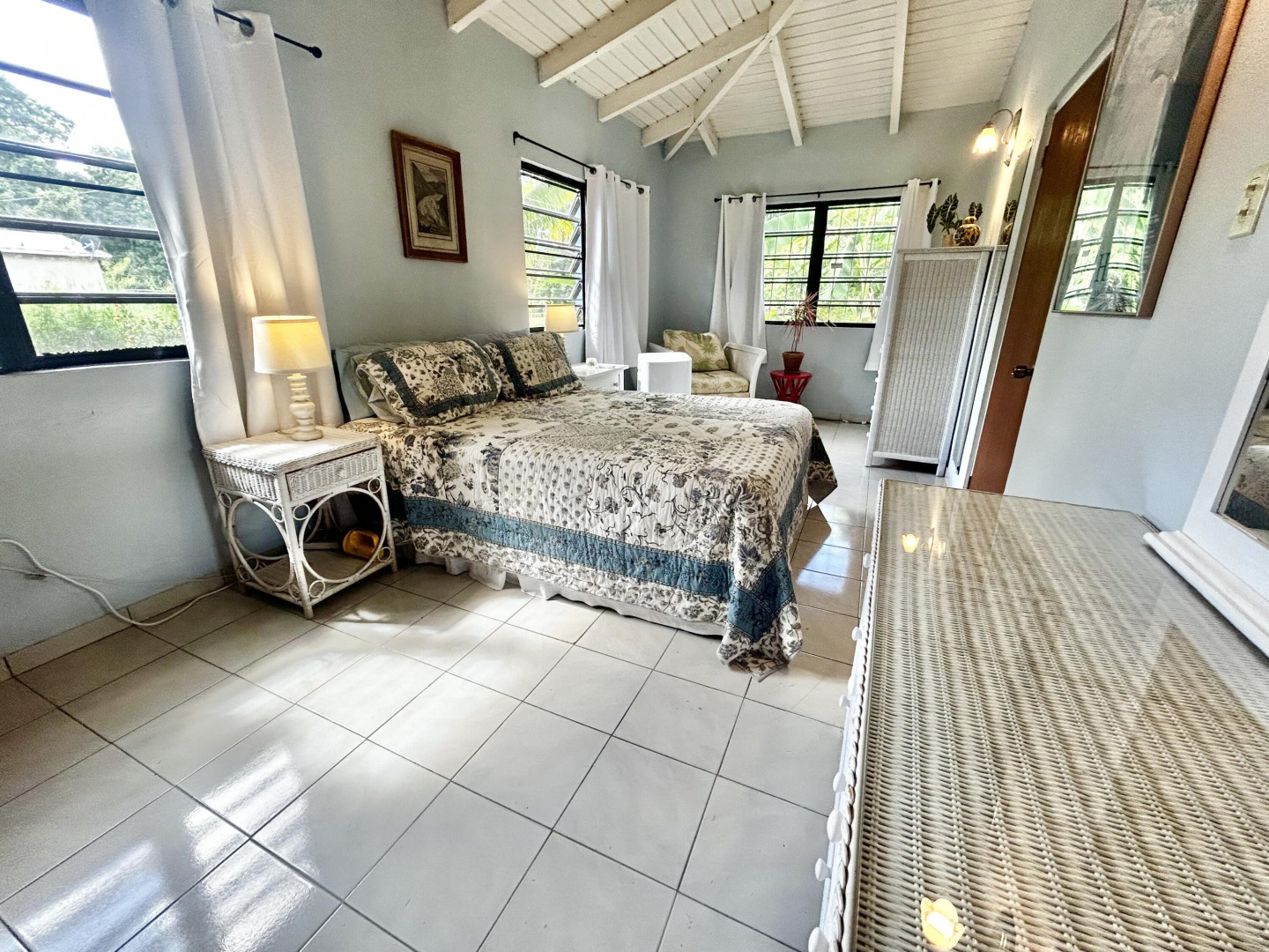Mid Island Oasis. So sweet, so serene in this cozy and solid 2 bedroom/1 bath home with a new galley style kitchen. Quartz countertop, wood cabinets, gas stove, petite dishwasher, washer and dryer, 5.5 kw gas generator. Comfy, secure gallery with cooling tropical breezes. Fully fenced, perfect for pets. Delightful relaxation corner with shade and sitting area and included picnic table. Loads of tropical plantings and fruit trees. Detached workshop/storage.