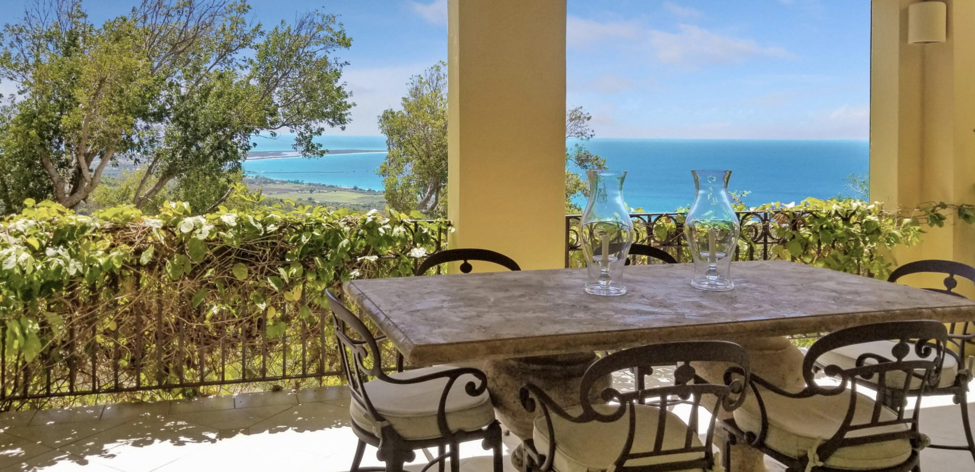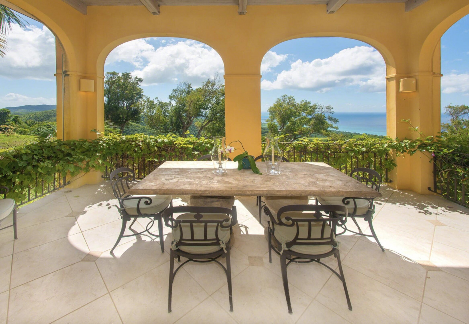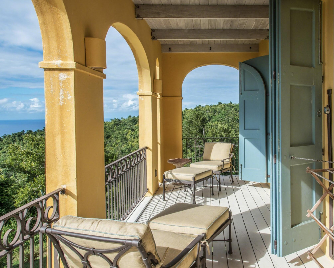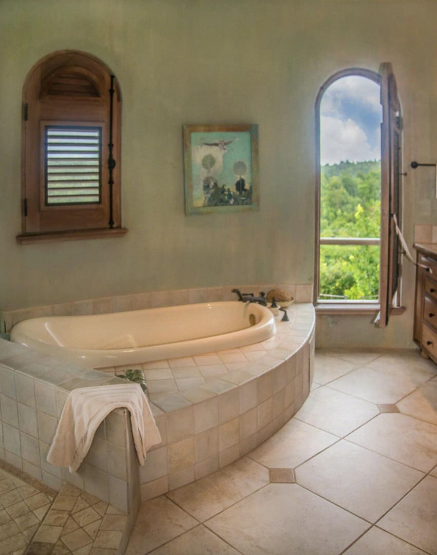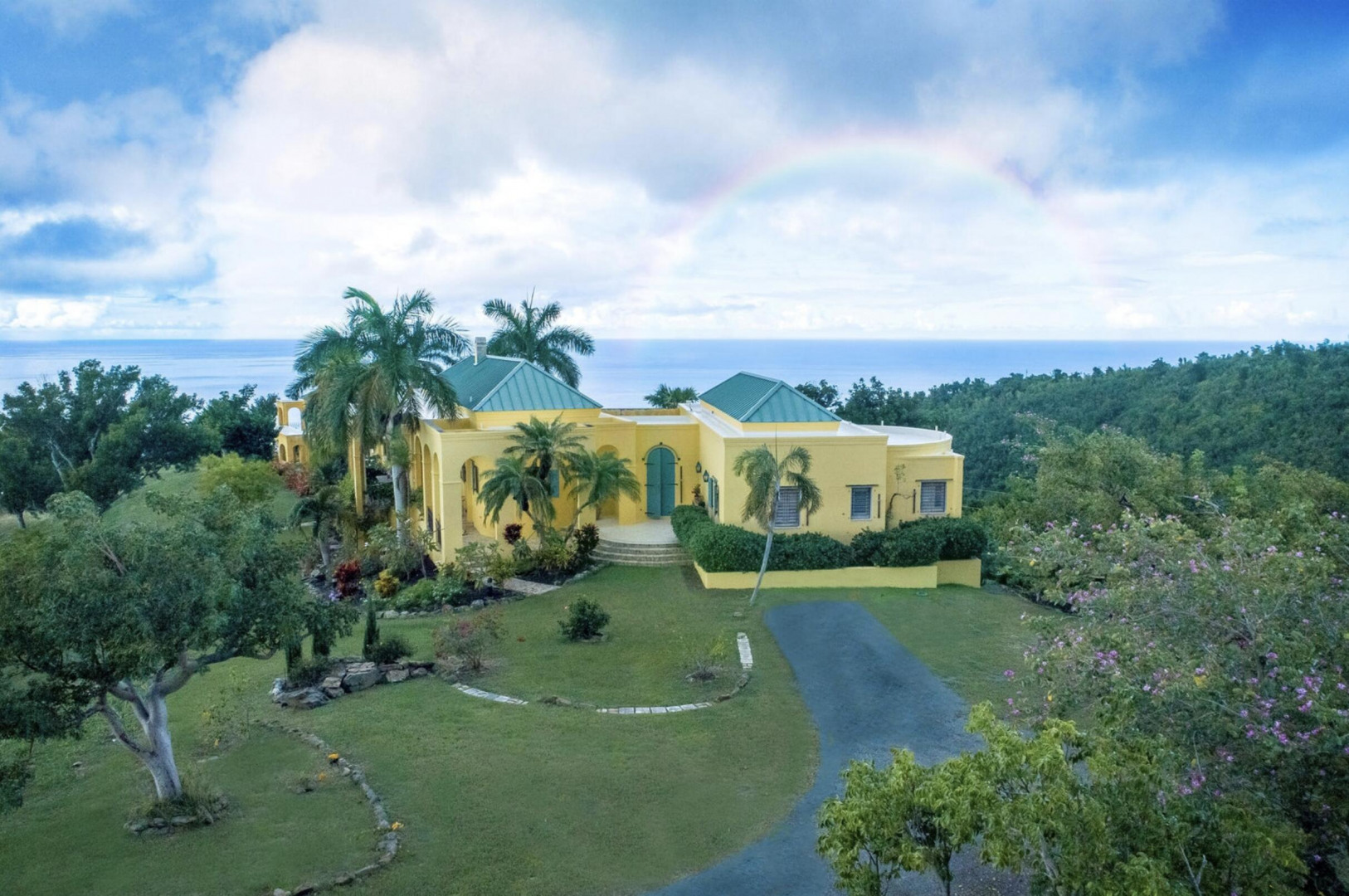 The Great Escape: Spectacular, Secluded and For Sale.. Home designed by George Hascup, Director of Design at the School of Architecture at Cornell University. 8 plus hill top acres, with massive views of the ocean, the Frederiksted pier, Puerto Rico, Vieques & Culebra. This property sits at approximately 660' elevation. Solar powered/ net metered; mahogany cathedral ceiling; (See Supplement)." Built in 1997-2000