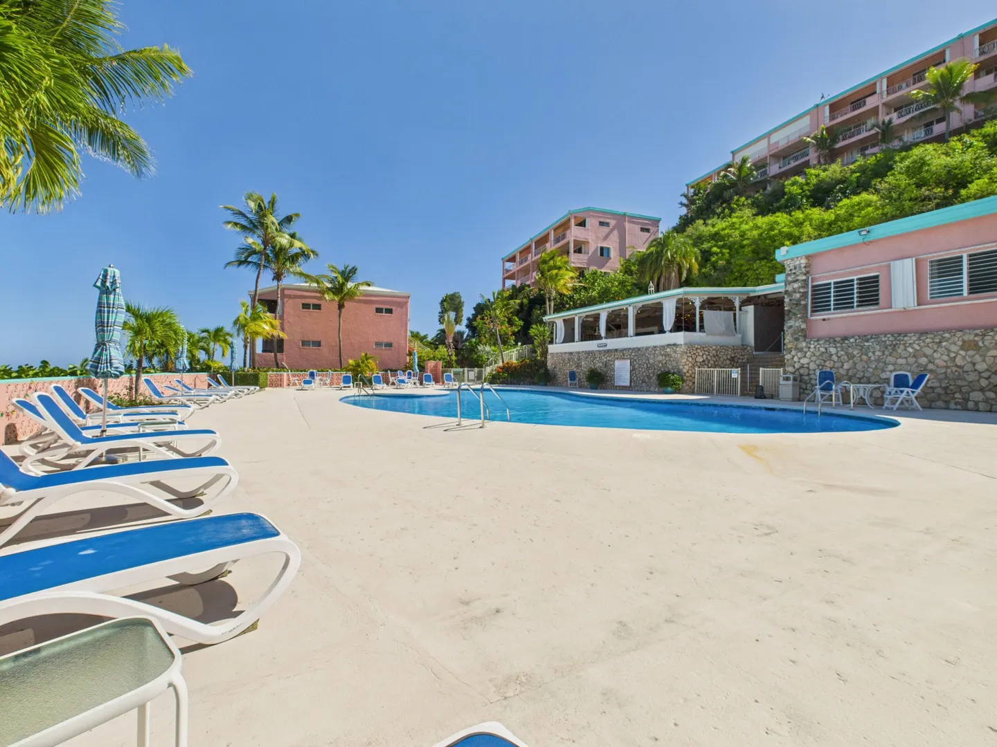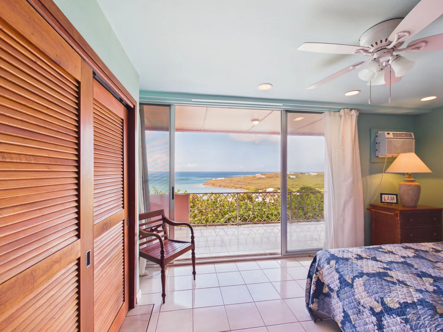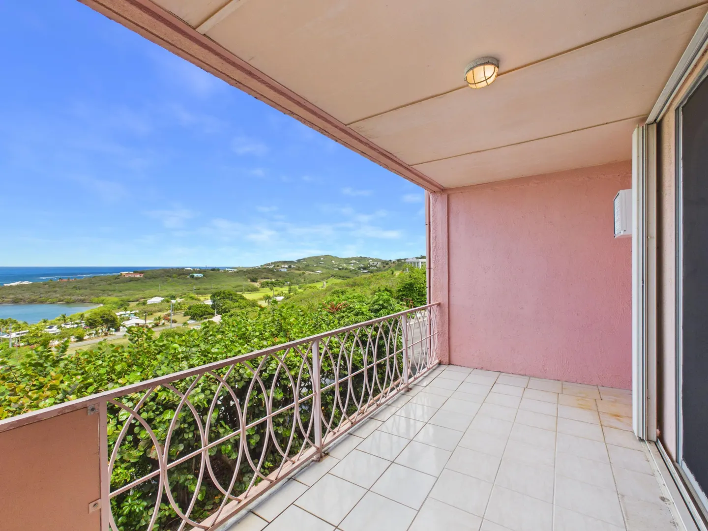 Enjoy elevated East End living in this hillside condominium with sweeping Caribbean views of Buck Island, St. Thomas, St. John, and the BVI. The main level features an open kitchen, dining, and living area that flows to a gallery perfect for taking in the scenery. Downstairs offers two bedrooms and two baths, including a primary suite with its own private gallery overlooking the sea. The complex provides a backup generator, pool, seasonal restaurant and comprehensive HOA fees covering pest control, landscaping, garbage, Wi-Fi, water, sewage treatment, and more making island living easy and convenient. Beaches nearby.