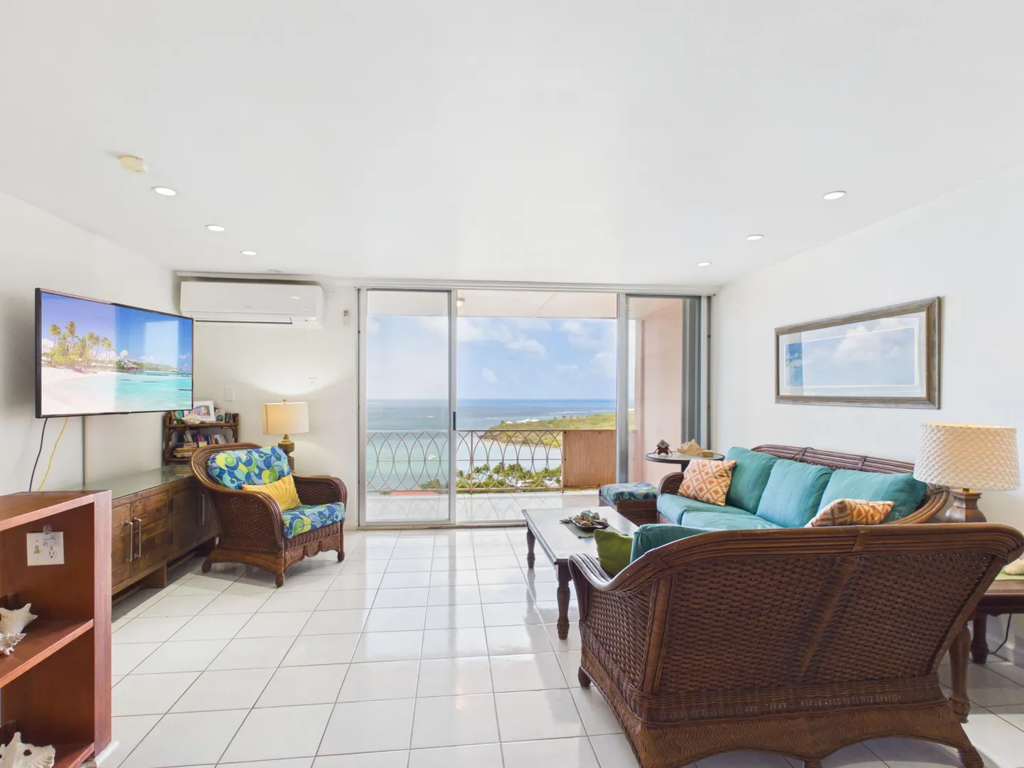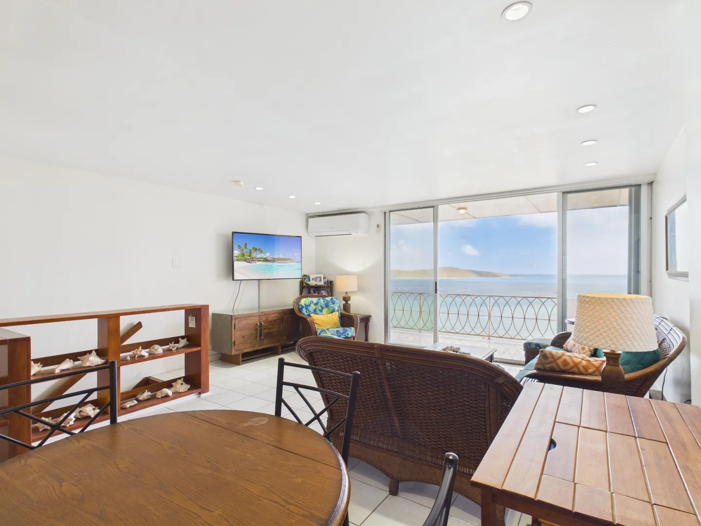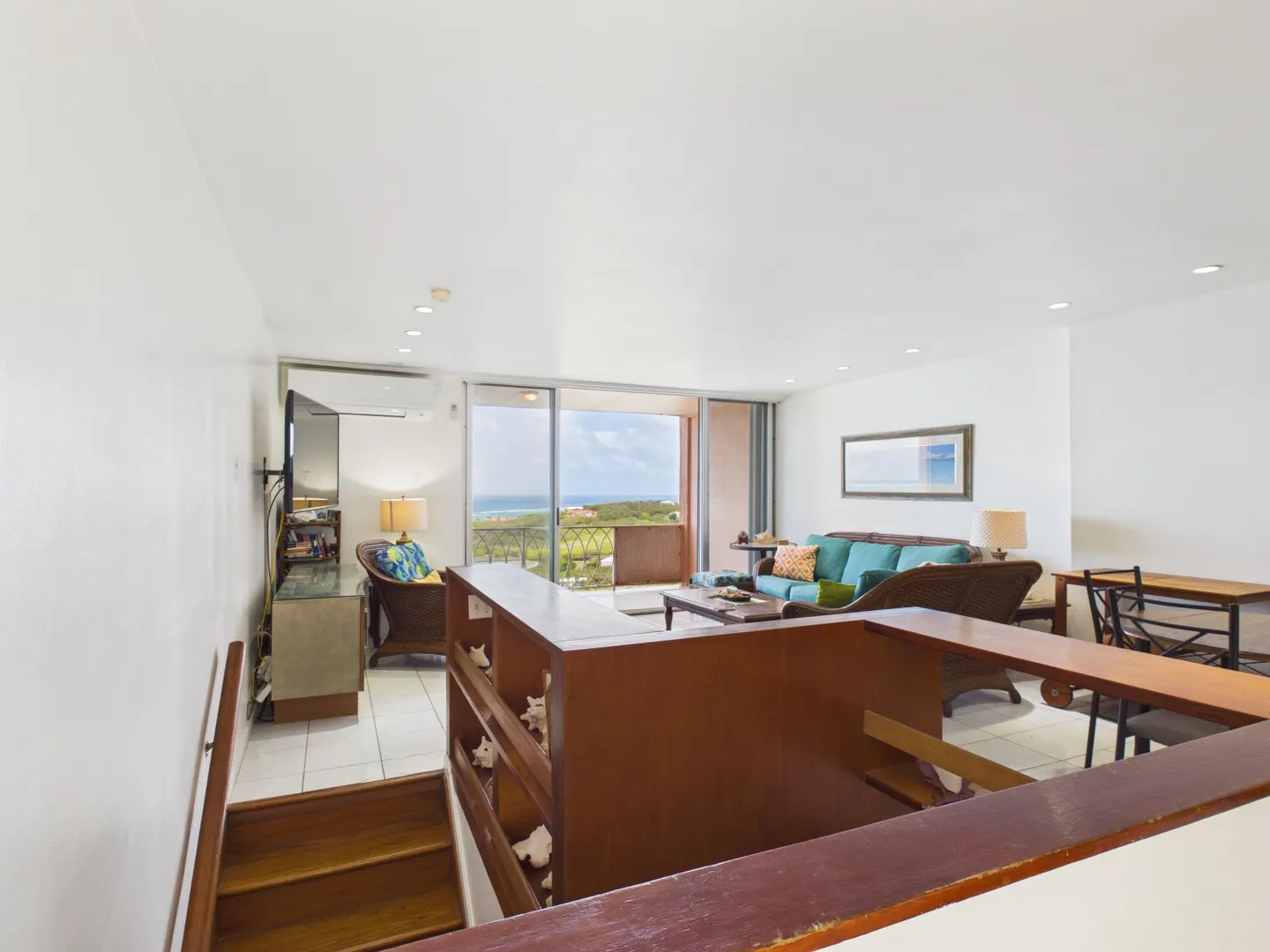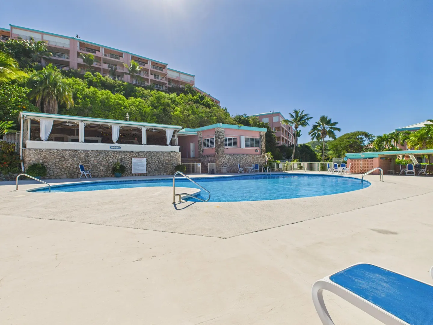 Enjoy elevated East End living in this hillside condominium with sweeping Caribbean views of Buck Island, St. Thomas, St. John, and the BVI. The main level features an open kitchen, dining, and living area that flows to a gallery perfect for taking in the scenery. Downstairs offers two bedrooms and two baths, including a primary suite with its own private gallery overlooking the sea. The complex provides a backup generator, pool, seasonal restaurant and comprehensive HOA fees covering pest control, landscaping, garbage, Wi-Fi, water, sewage treatment, and more making island living easy and convenient. Beaches nearby.