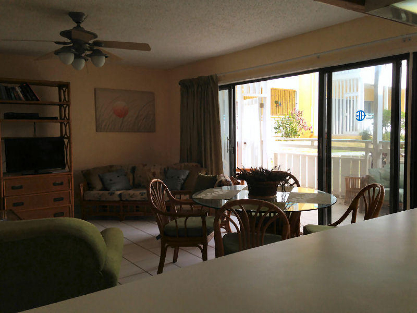 Stroll right out the back door to the pool and beach from this furnished 2 bed/2 bath ground floor unit.Breezy unit has a spacious gallery with sea view,glass top range, washer/dryer and all major appliance. Move in ready - GREAT vacation rental potential !!