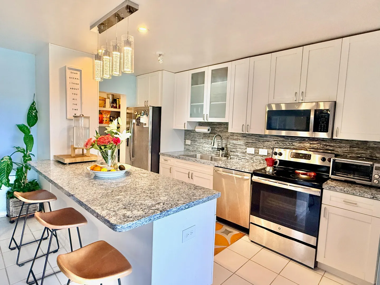 Discover easy island living in this spacious, single-level 2-bedroom, 2-bath condo in an unbeatable location. The updated kitchen shines with quartz countertops and soft-close drawers, while the updated bathrooms add a clean, refreshed look. Enjoy comfort year-round with split A/Cs throughout and the convenience of laundry in-unit. Plus, the new living room windows invite in even more natural light.Step out onto your covered, fully screened gallery--an airy extension of the living space that's made for island living. This space functions like an outdoor entertaining room, complete with a built-in prep area/bar-style kitchenette, ample cabinetry for storage, and counter space for serving, mixing drinks, or setting out a casual meal.Located in a well-established community witha back-up generator, on-site office, two pools, and a tennis court, this is an excellent choice for a primary residence, vacation retreat, or rental investment.