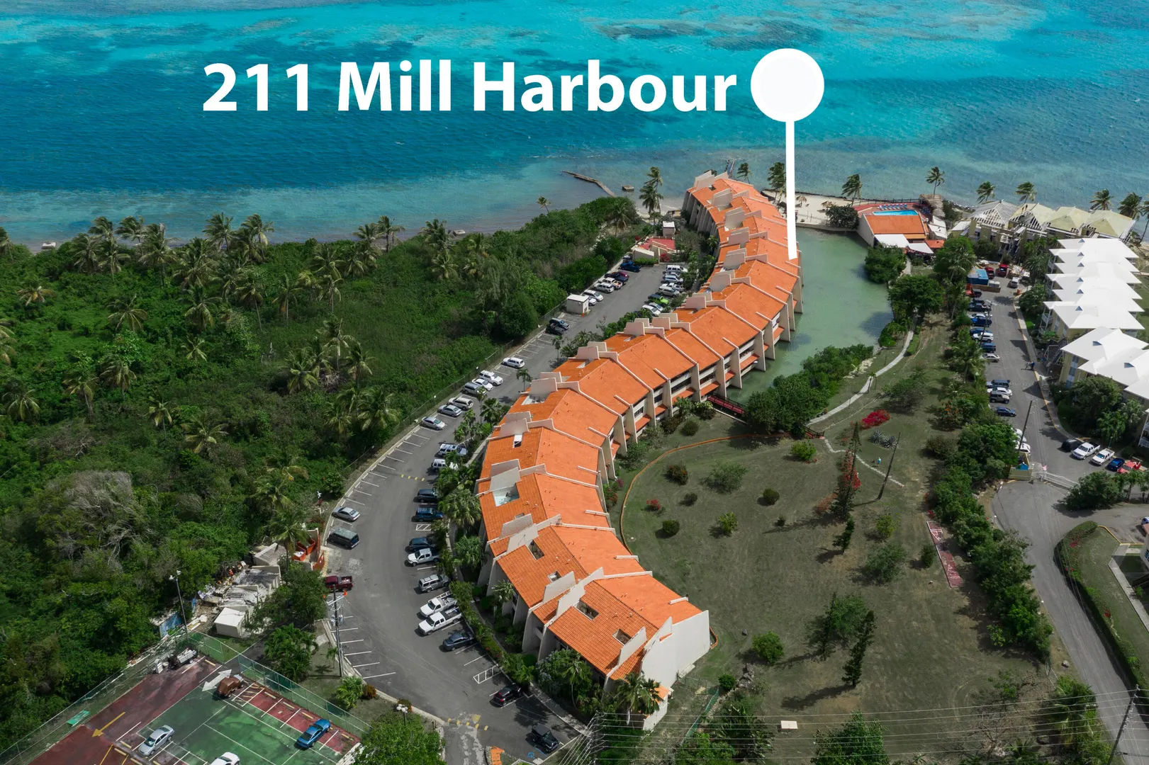 FOR COMPS ONLY! Discover your island oasis in this 2 bedroom, 2 bath condo at Mill Harbour. Enjoy the open layout, abundant natural light, and a private balcony with Eastern exposure and cooling Tradewinds. This well-maintained unit is in a prime location within the complex that offers lush gardens, a community pool and sandy beach. Customize the classic charm to your taste and relish this secure, gated community minutes from the amenities of downtown Christiansted. SOLD AS-IS.