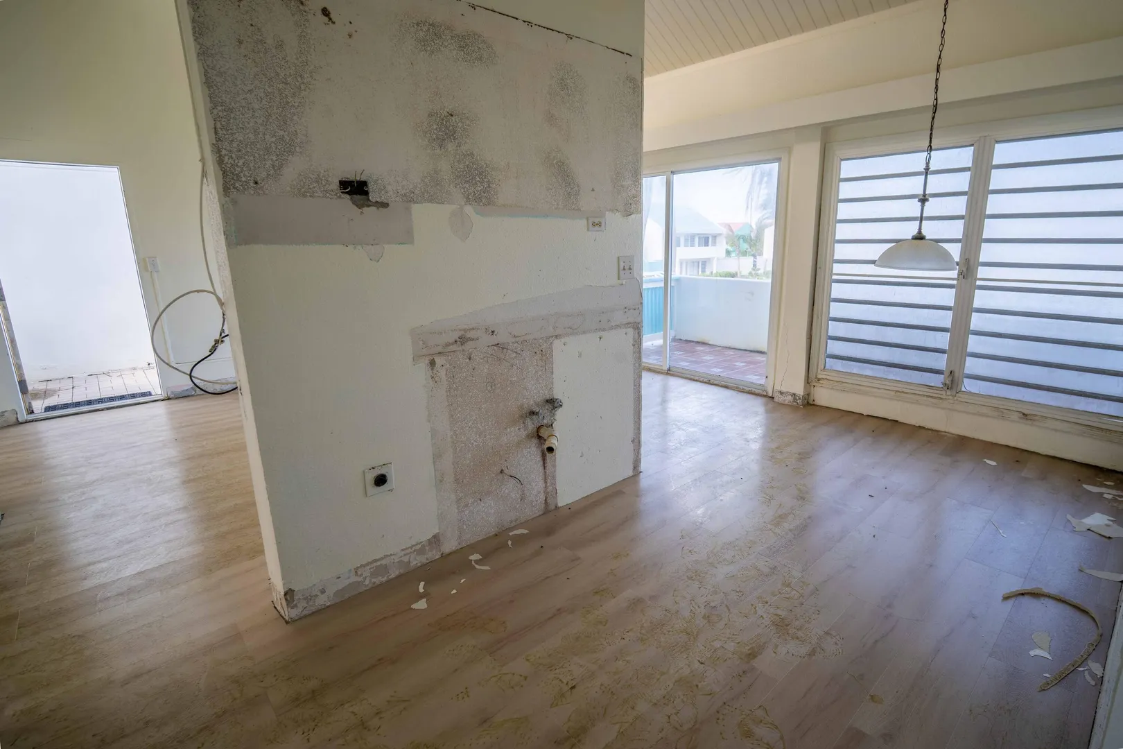 Beachfront fixer-upper opportunity for buyers ready to create their own island retreat. This second-floor unit has been fully gutted, offering a clean slate to design and customize the space to your exact vision. A new split A/C unit has already been installed, providing a valuable head start on renovations.Located in a desirable beachfront complex, this property is ideal for those seeking to tailor a coastal residence, vacation getaway, or investment property to their personal style. Bring your creativity and transform this blank canvas into a custom beachfront haven in the heart of St. Croix.