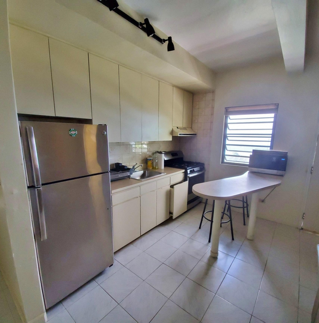 Cute furnished apartment. Great location to town and airport with beautiful views of the Caribbean Sea. A/C in master bedroom, gas stove and generator. Flat parking. Cat considered.