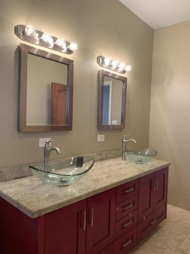 This beautifully furnished turnkey 2 bedroom 1 bath house boasts amazing views of Inner and Outer Brass. Both bedrooms are well appointed with a private balcony off of the master bedroom where you can relax and enjoy the views after a long day at work. Both bedrooms have walk in closets with closet organizers. The bathroom is extremely spacious with double vanities. The living room has a flat screen TV and a queen sleeper sofa to sleep your extra guests. With beautiful travertine floors throughout and soft close kitchen drawers with granite countertops in both the kitchen and bathroom, no expense has been spared. There is central air in the common areas and mini splits in the bedrooms. Blinds are installed throughout the apartment. Stainless steel appliances