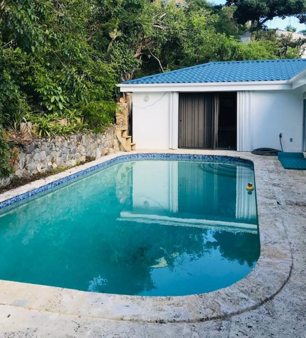 Large Furnished 3 bedroom 2 bath house with Pool. Central Air conditioning , back up genorator and spacious covered patio. Expansive Ocean View. Hurricane shutters, Washer & dryer. hook up. Located in Frenchman's Hawk hill. No pets allowed.