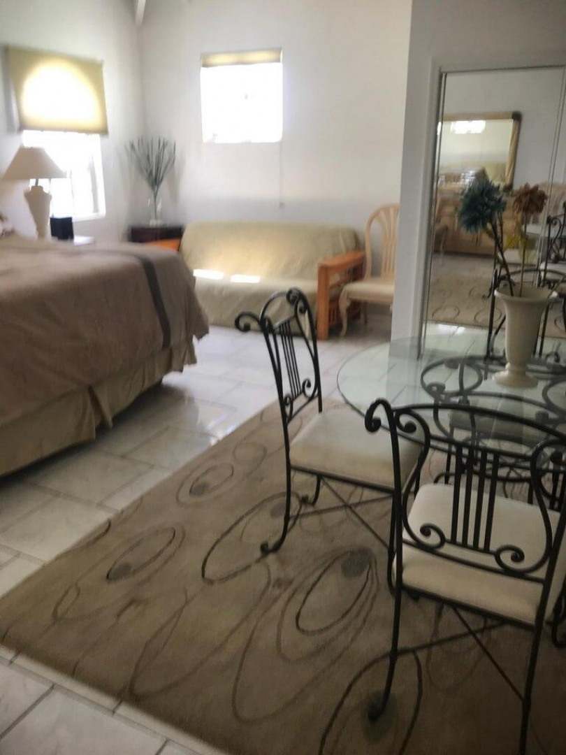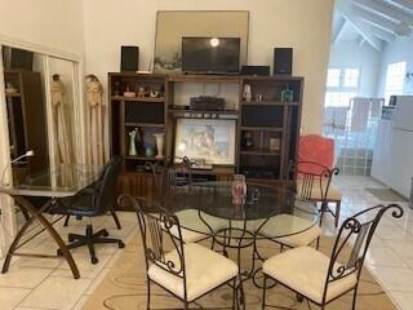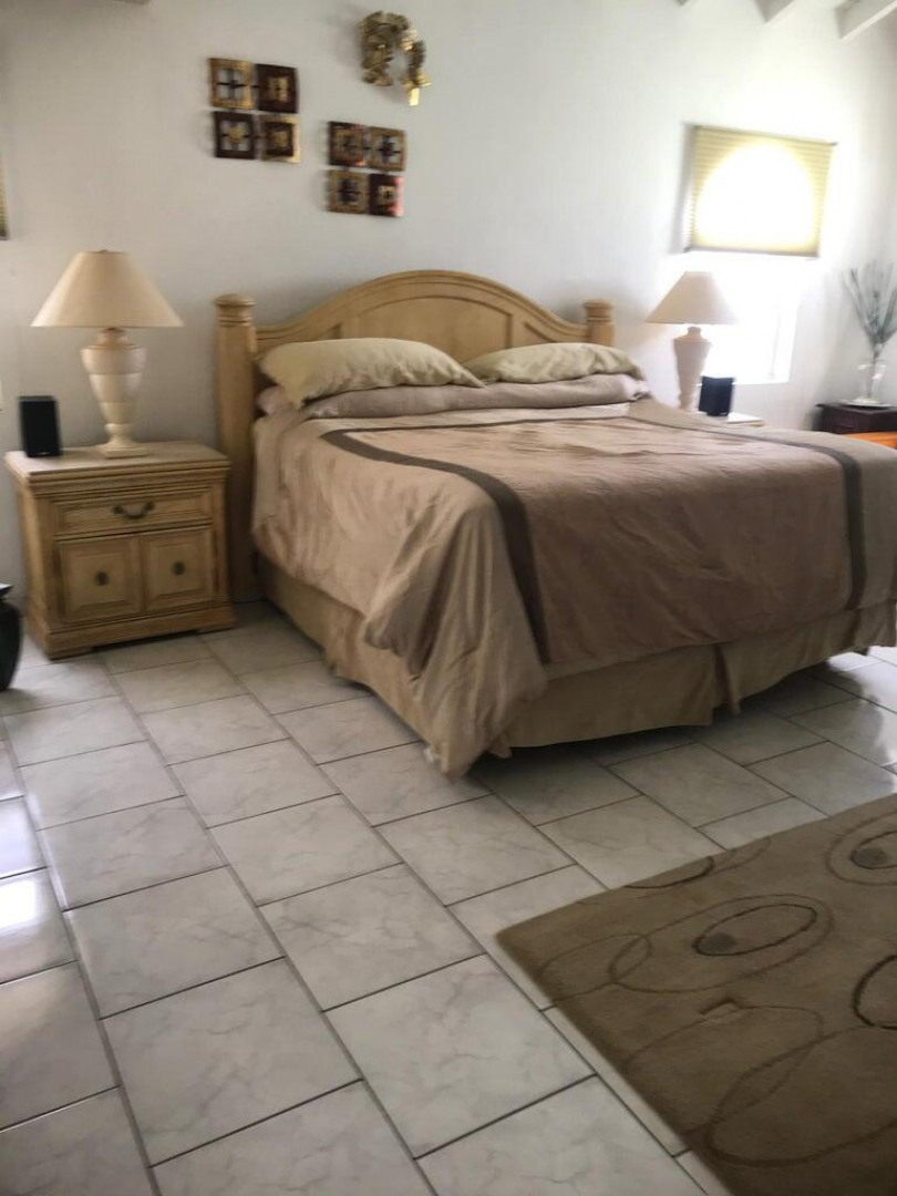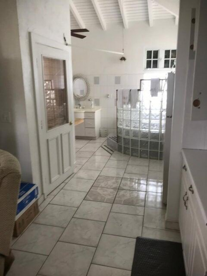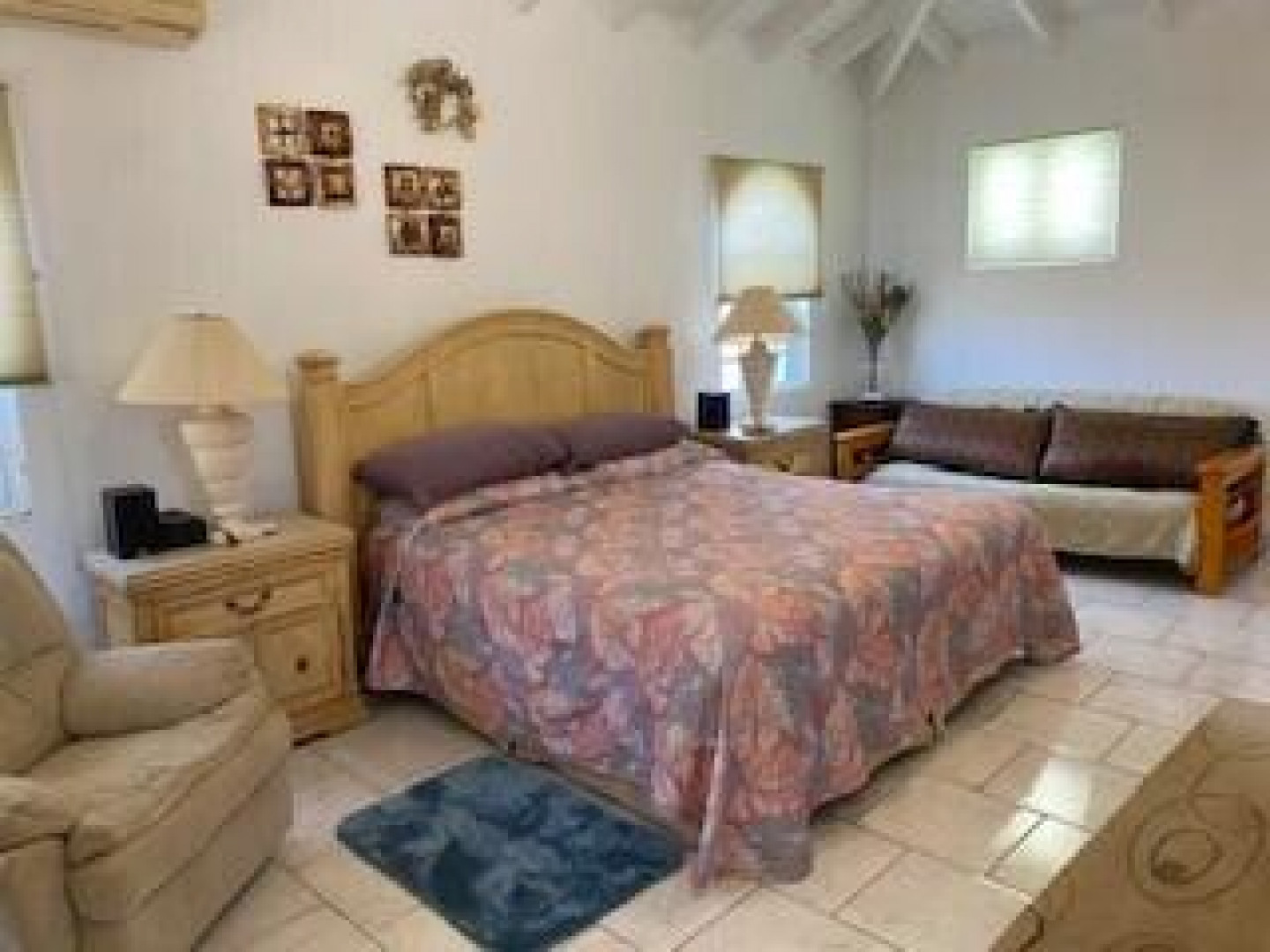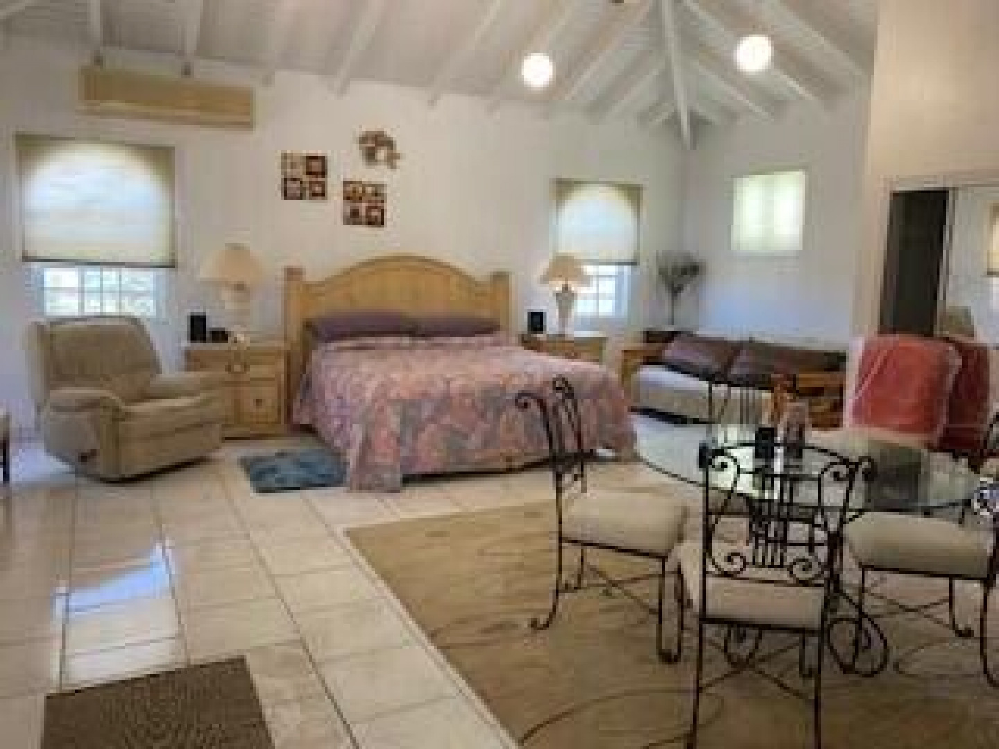 This is a large studio on top of the owner's residence with its own entrance. It is well equipped, furnished, clean and has a large bath and shower area. Located at the top of the hill on the road that is directly across from the Bolongo Hotel, restaurants, bars and beaches. Close to town, groceries, laundry, medical, shopping, etc. The breezes are nice here. NO PETS! $1400 monthly rent. Water & Electric are included but if the electric bill goes over $300, the renter is responsible for the difference. First, last and security are required. 1 year lease