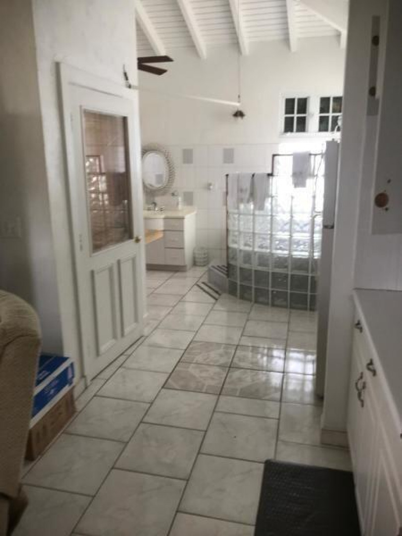 This a very large studio located on the top of the owner's residence and has it's own private entrance. It is well equipped,furnished, very clean, has a huge bath/shower area. Ideal for traveling nurses or long term. Located up the hill across from the Bolongo Hotel, restaurants, bars and Beaches. Close to town, groceries, medical, shopping, laundry, etc. There are nice breezes here. You can sit outside and leave the screened door open. NO PETS. Water and electric are included, but if the electric exceeds $400, then the tenant will have to pay that difference.