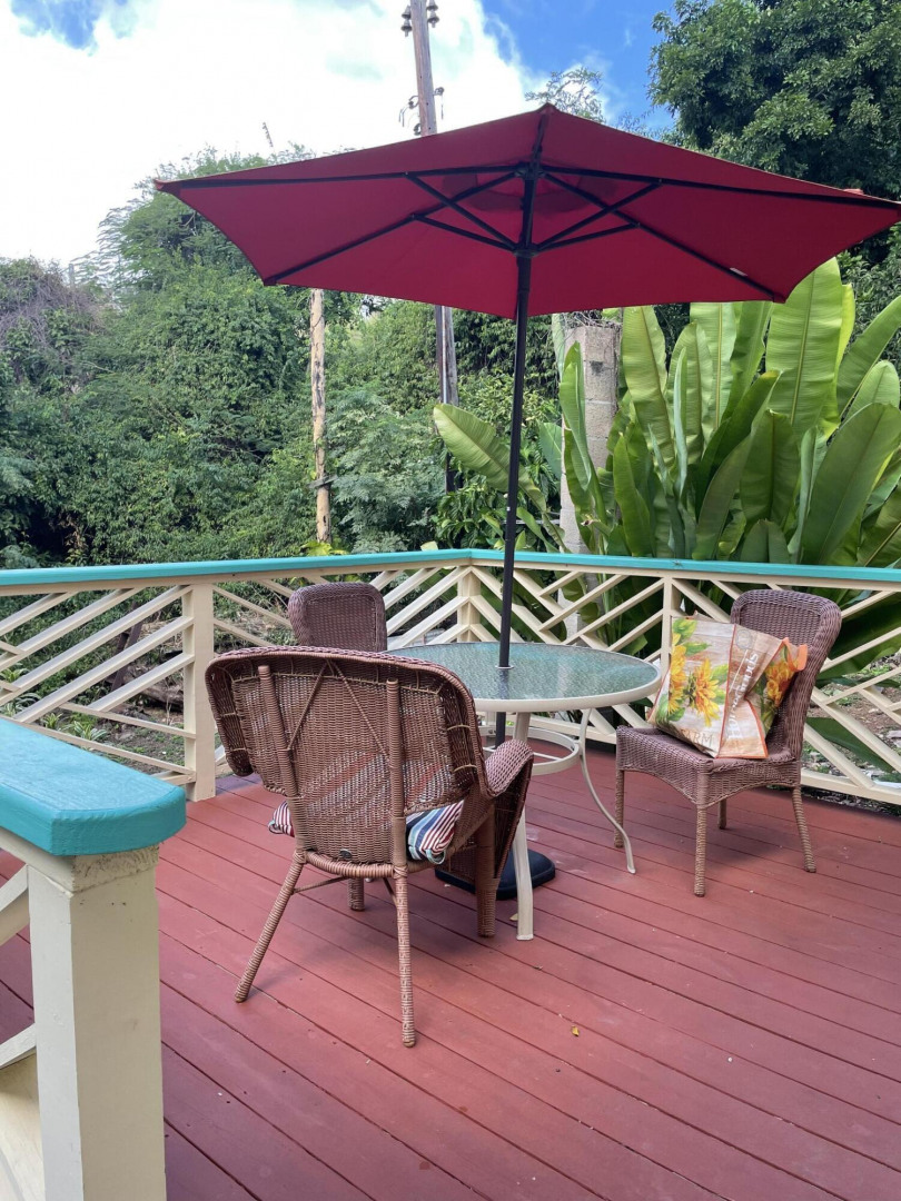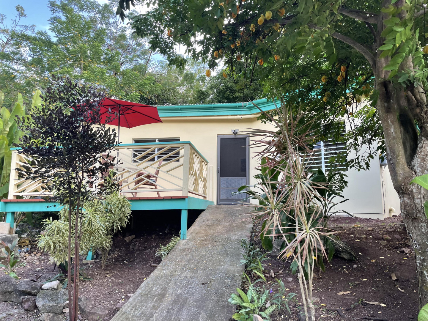 This fully furnished standalone turnkey rental is just waiting for you to bring your suitcase. The property is set back in a serene, private and tranquil location in Estate Contant. It is even wheel chair accessible! The yard also boasts tons of fruit trees that the tenant can partake in. Come home after a long day and relax on the deck. The rental is already outfitted with pots, pans, cutlery, etc and the unit has a washer and dryer. Internet is also included in this rental. A/C unit in the master bedroom only.