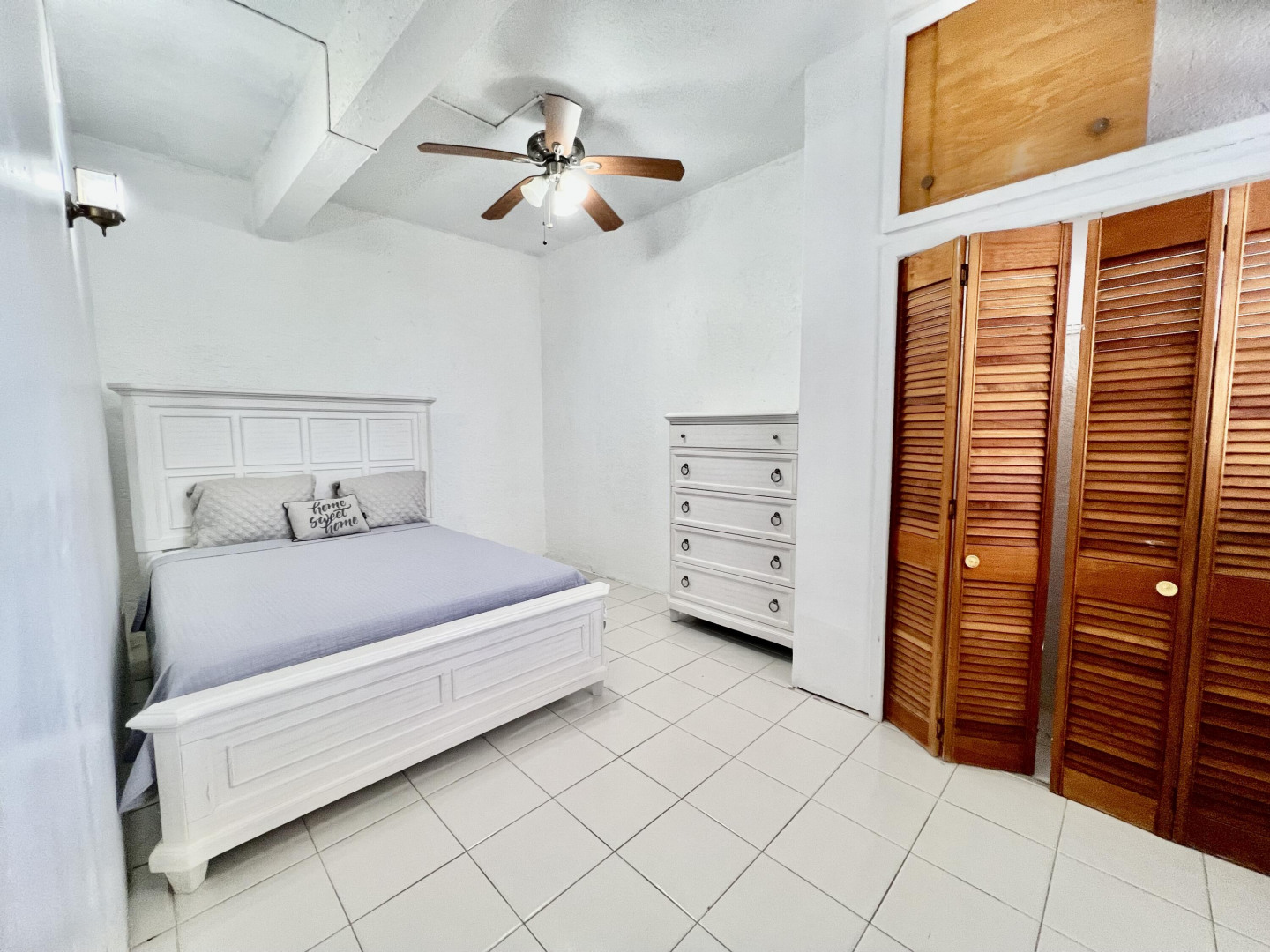 Large 2 bedrooms - 1 bath. Large patio with amazing ocean views and walking distance to Limetree Beach. Split A/C, Generator and 2-car parking. Only 2min to Antilles School and 5-10min to town.
