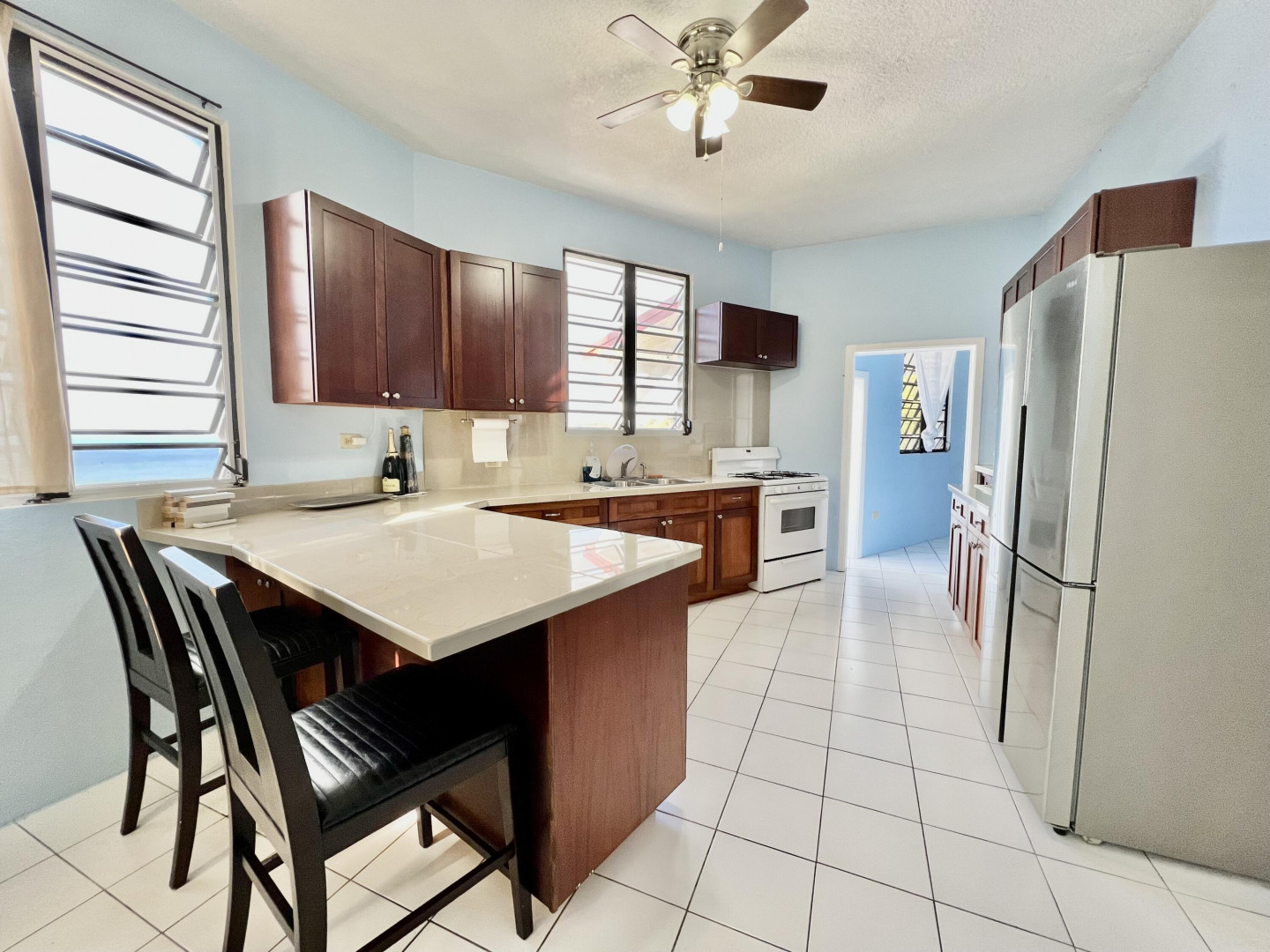 Large 2 bedrooms - 1 bath. Large patio with amazing ocean views and walking distance to Limetree Beach. Split A/C, Washer/Dryer, Generator and 2-car parking. Only 2min to Antilles School and 5-10min to town.